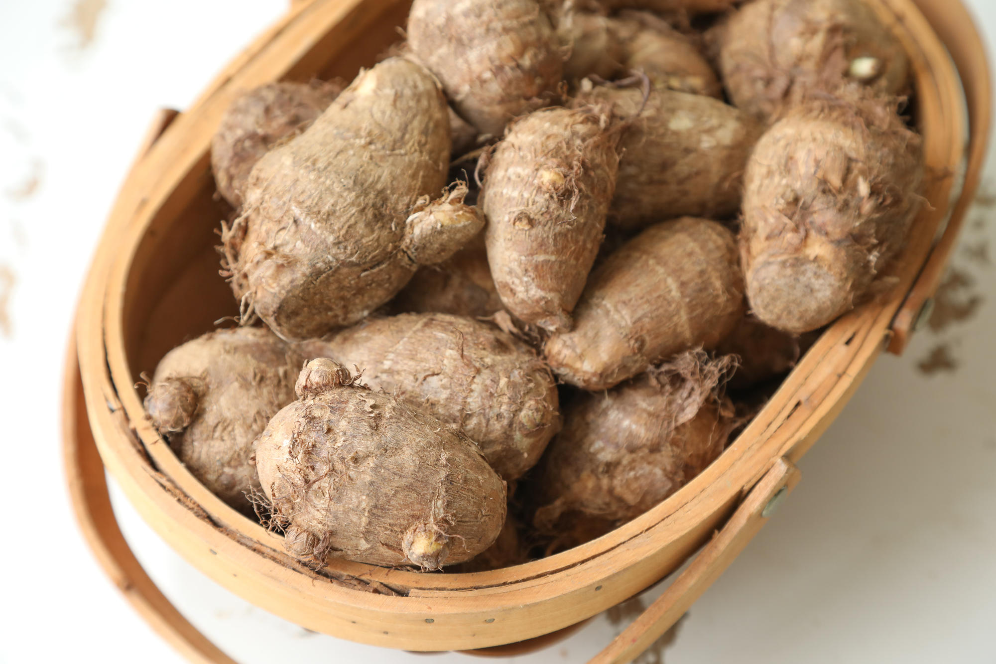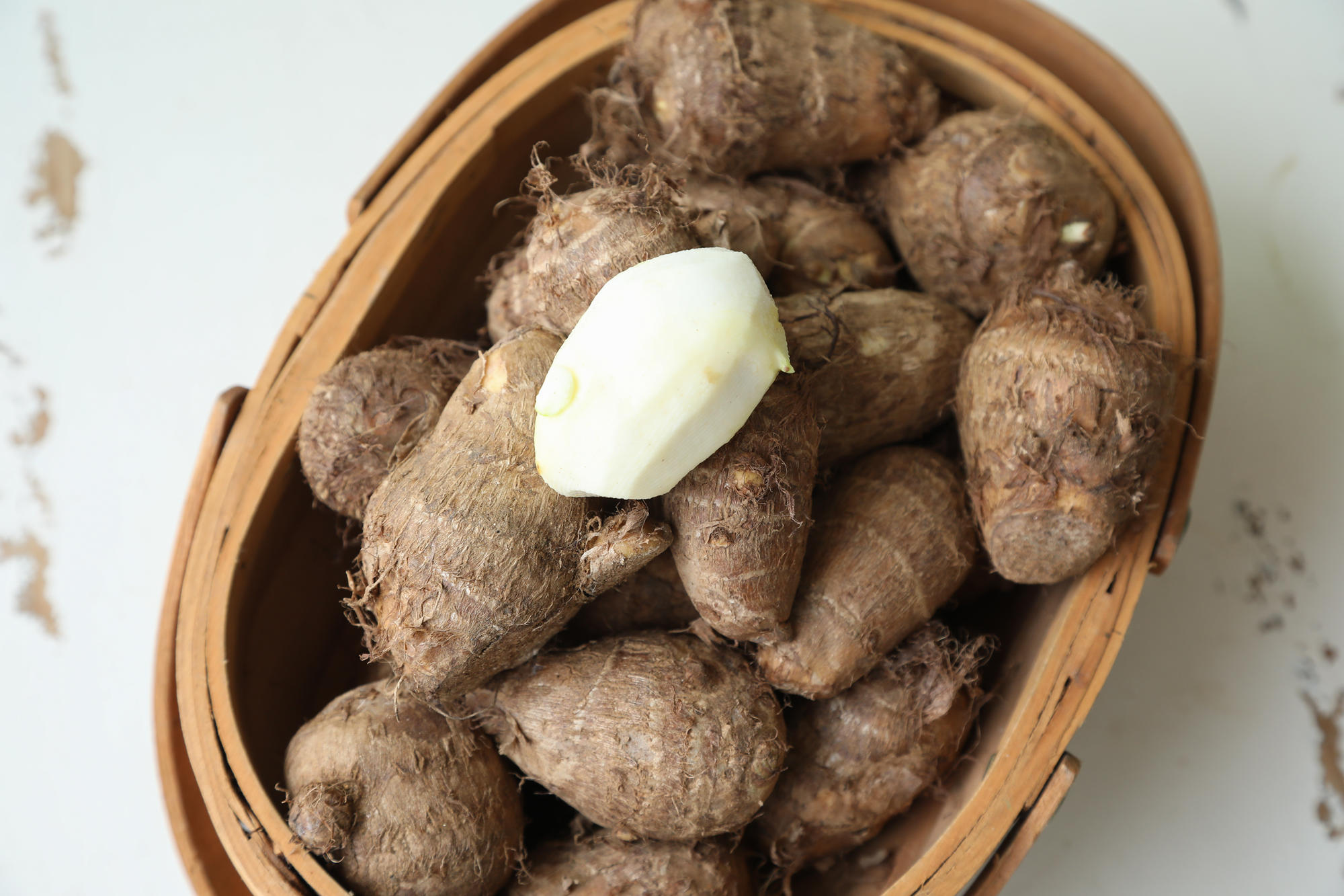 北方的芋头个头像鸡蛋大小,圆润,饱满,切开后,肉质细腻光滑,白嫩粘糯,与南方芋头的粉糯截然不同。
