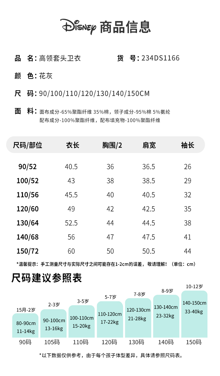 【迪士尼Disneybaby正品新品卫衣】秋冬男童女童上衣舒适儿童卫衣