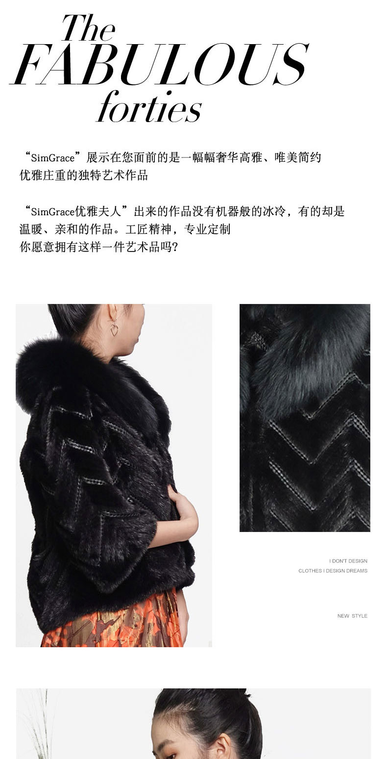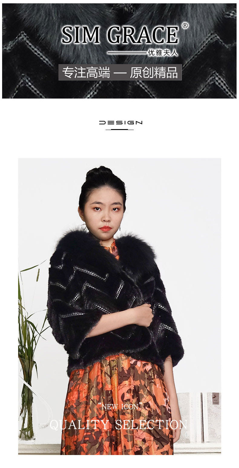 SIM GRACE 优雅夫人女款纯手工编织工艺设计时尚层次分明进口水貂毛绵羊皮短款