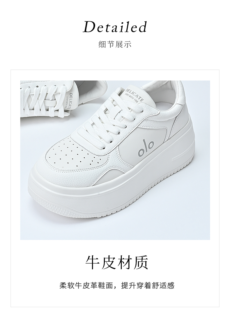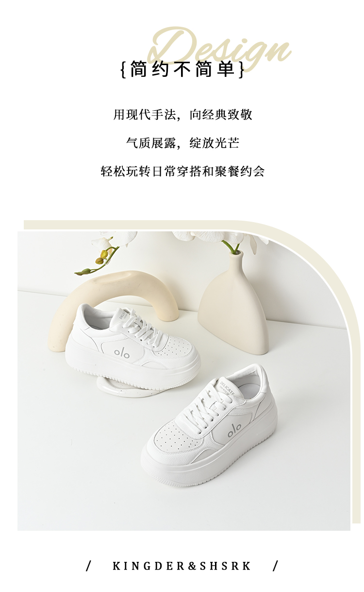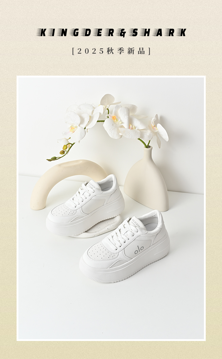 经典鲨2025秋季专柜款牛皮革透气舒适系带厚底显高休闲鞋女KW16-537061