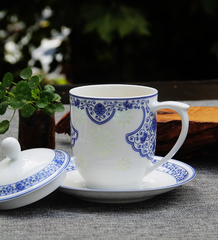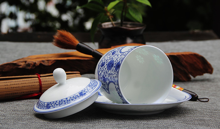 景德镇陶瓷 国瓷红叶 7头手绘青花茶具(牡丹花)