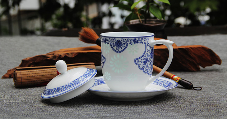 国瓷红叶 4头办公文具清风烟雨