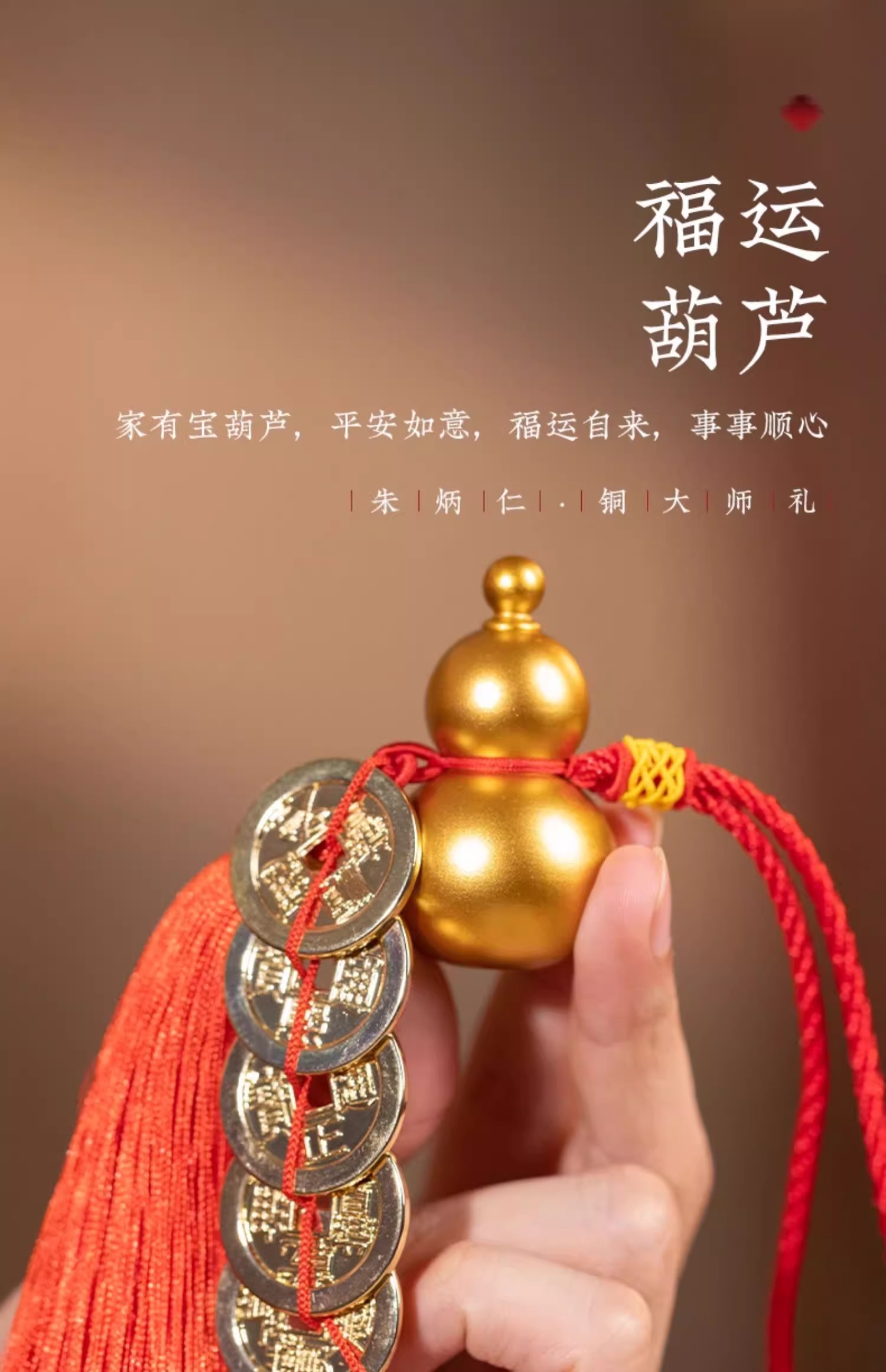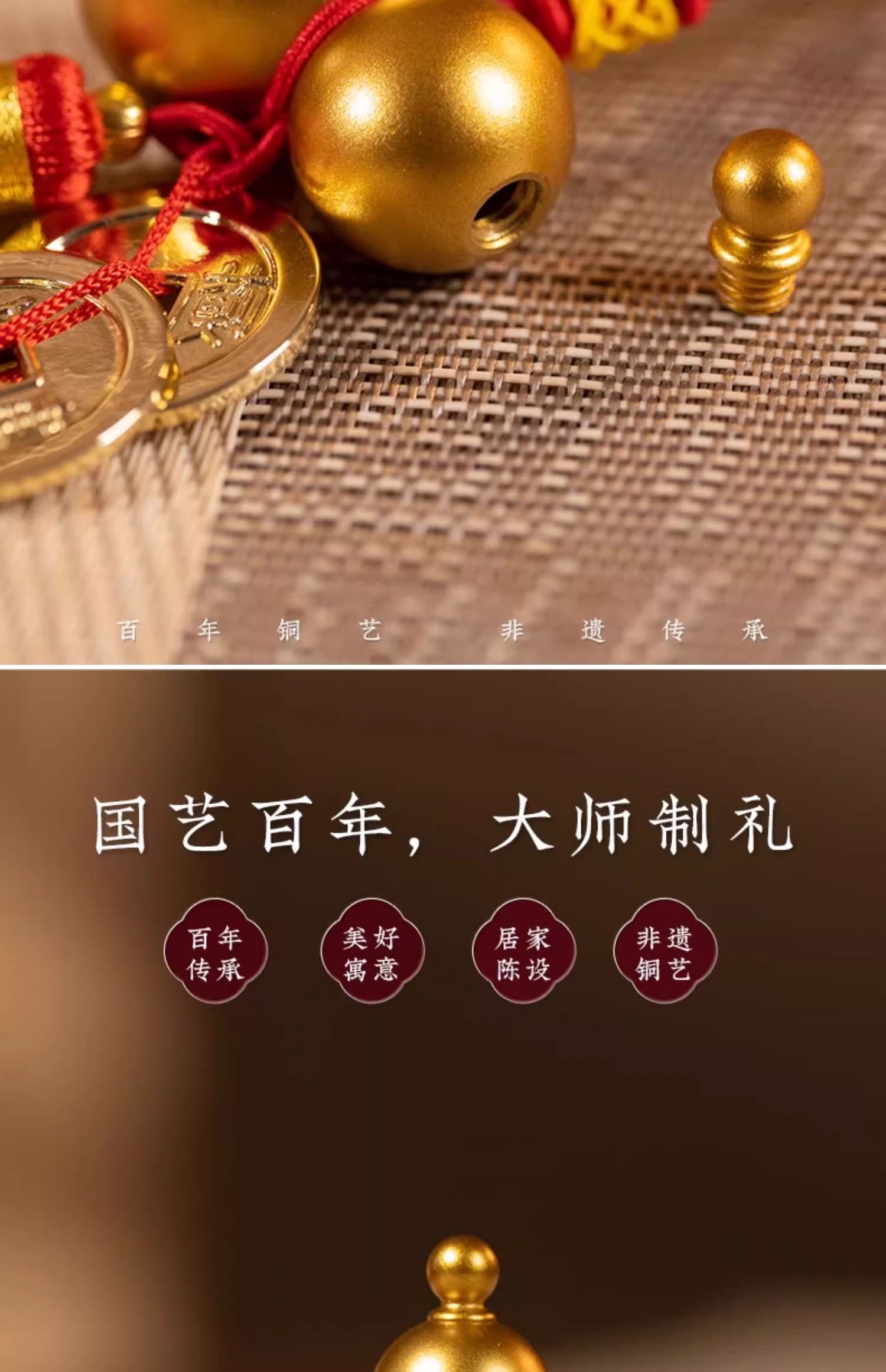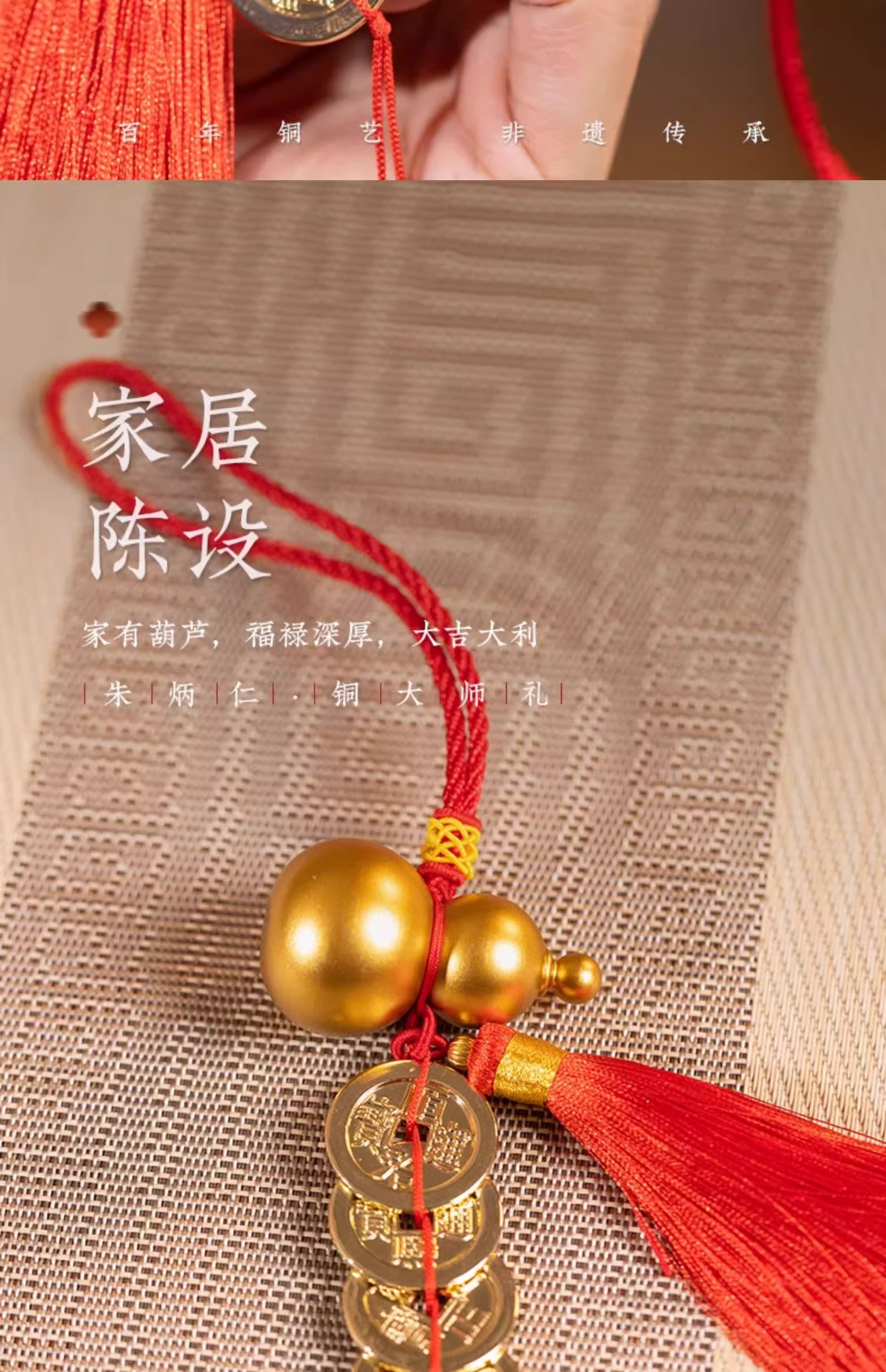 朱炳仁铜 葫芦挂件 五帝钱+铜葫芦 装饰配饰