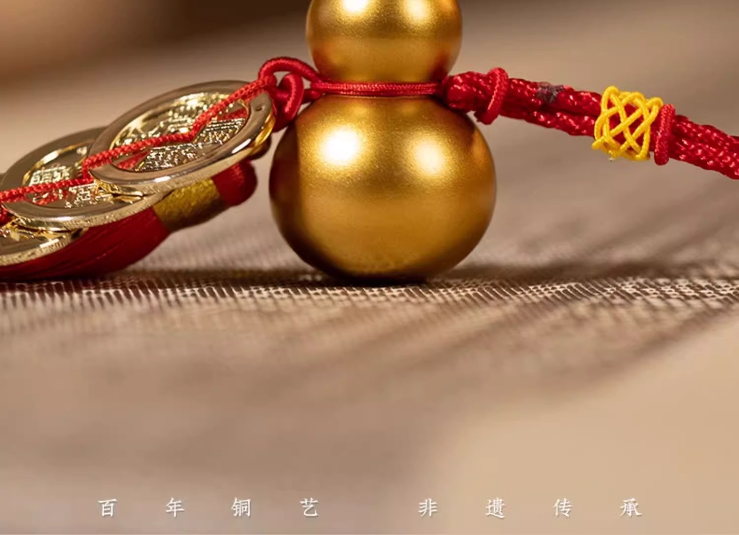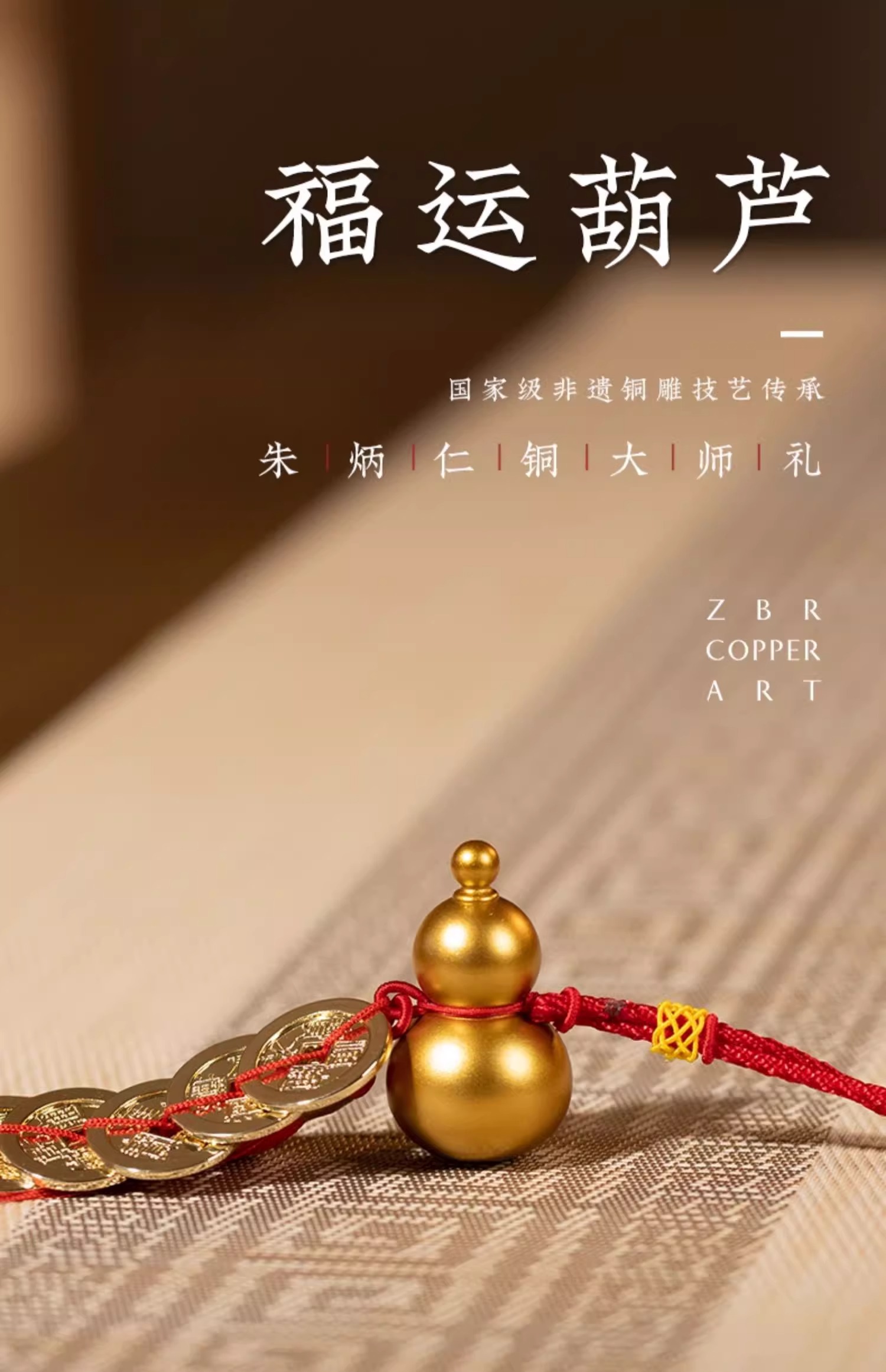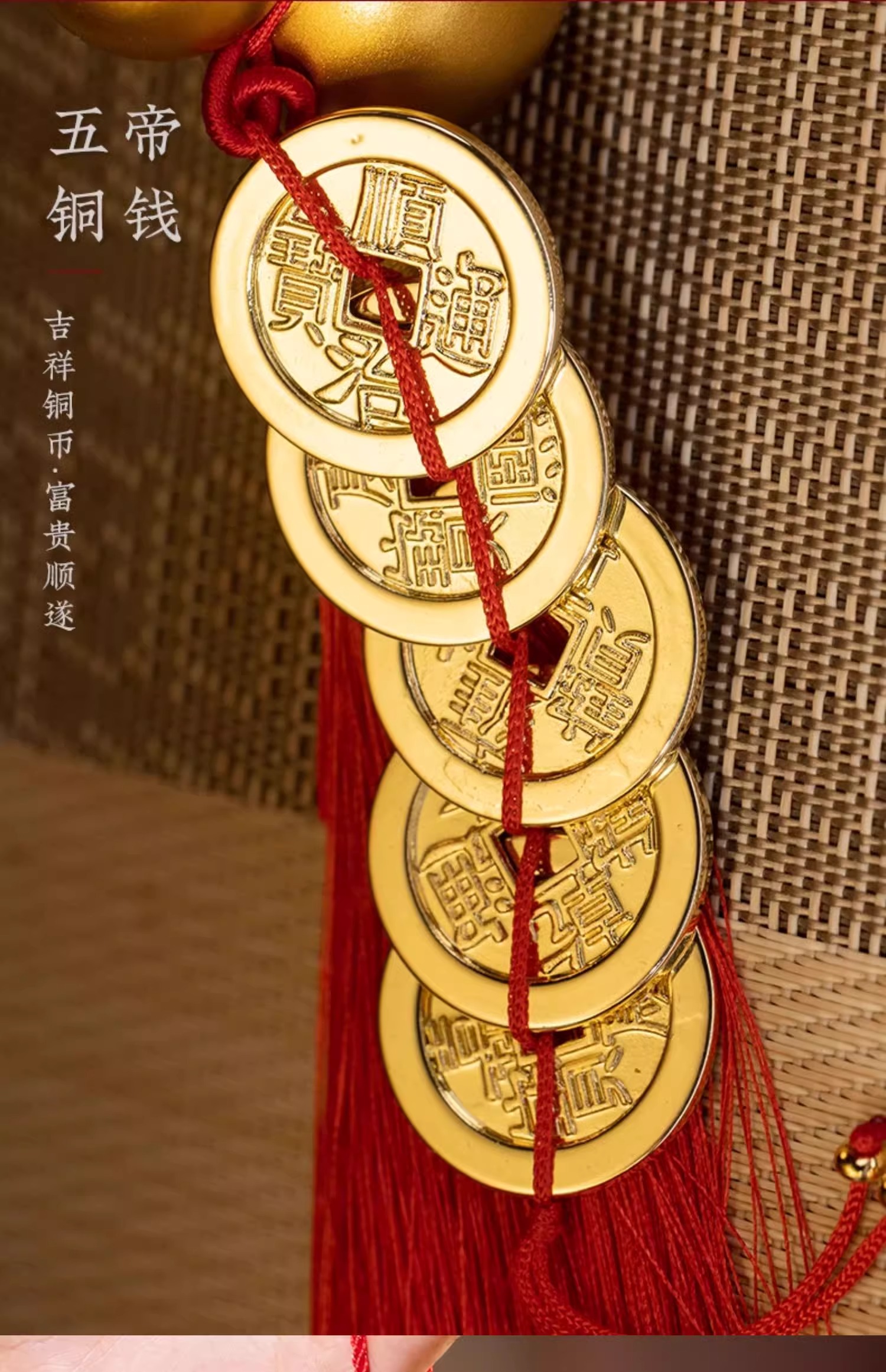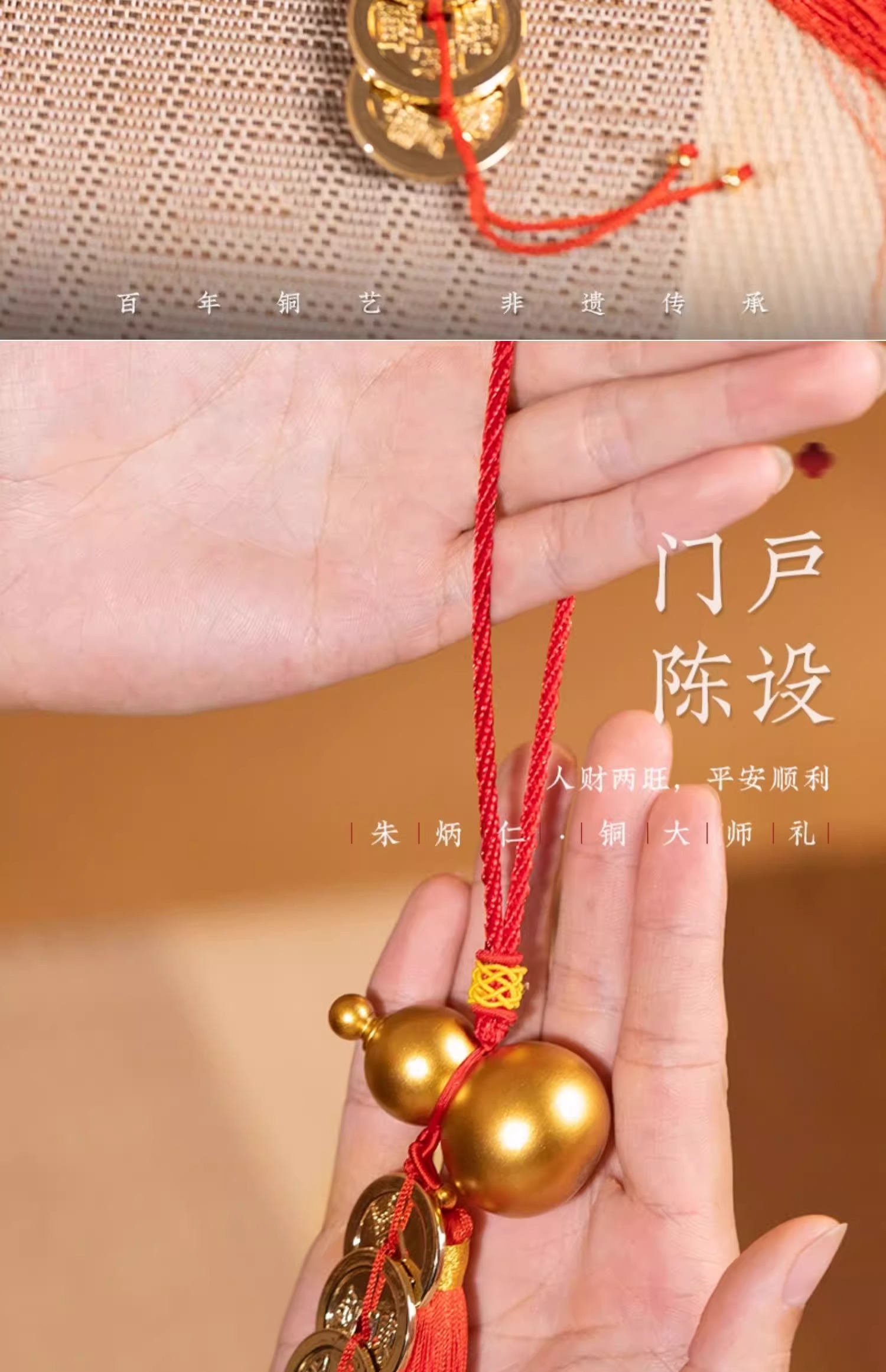 朱炳仁铜 葫芦挂件 五帝钱+铜葫芦 装饰配饰