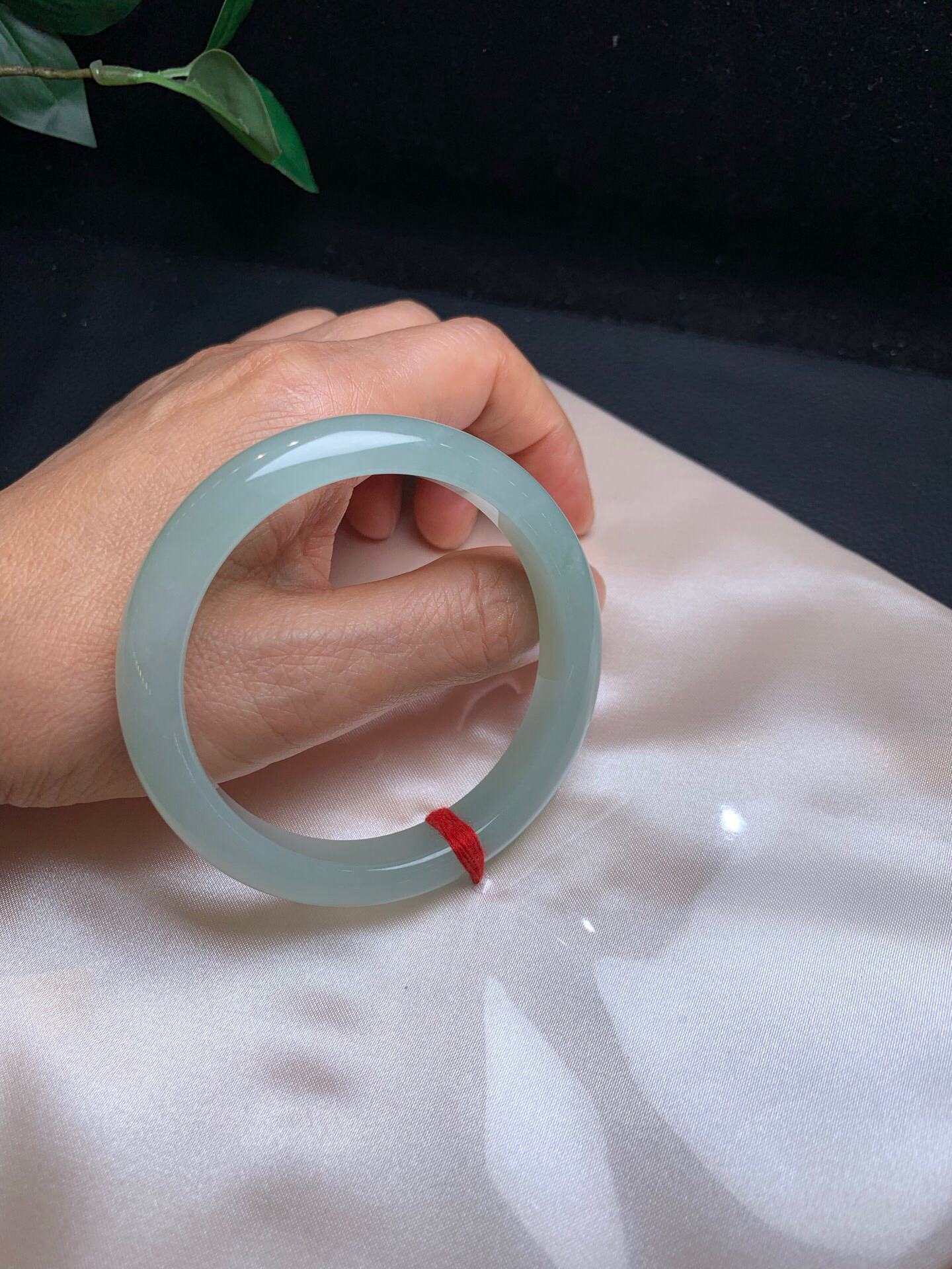 620739,54.5冰晴细条正圈,9.6-7.8mm 整条冰冰的,纯净干净,一截略带晴底色,秀气完美