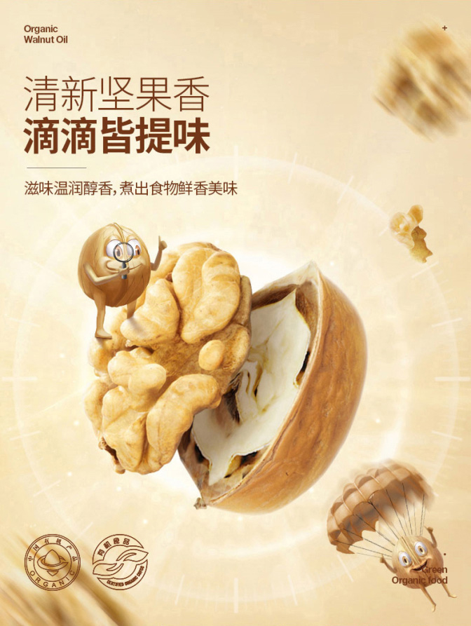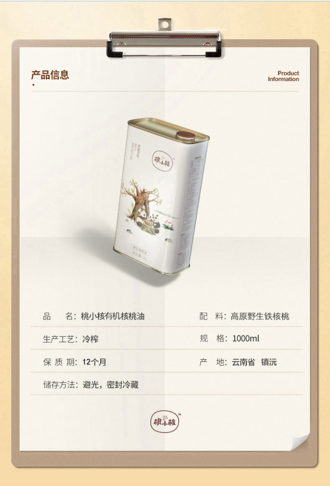 【有机核桃油】250ml/1L, 野生铁核桃油冷榨加工宝宝辅食调料