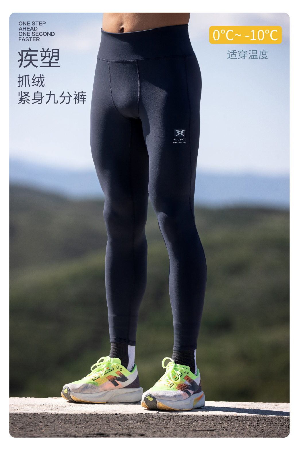 BODYWIT身体智慧男子疾塑紧身肤感速干抓绒保暖九分裤