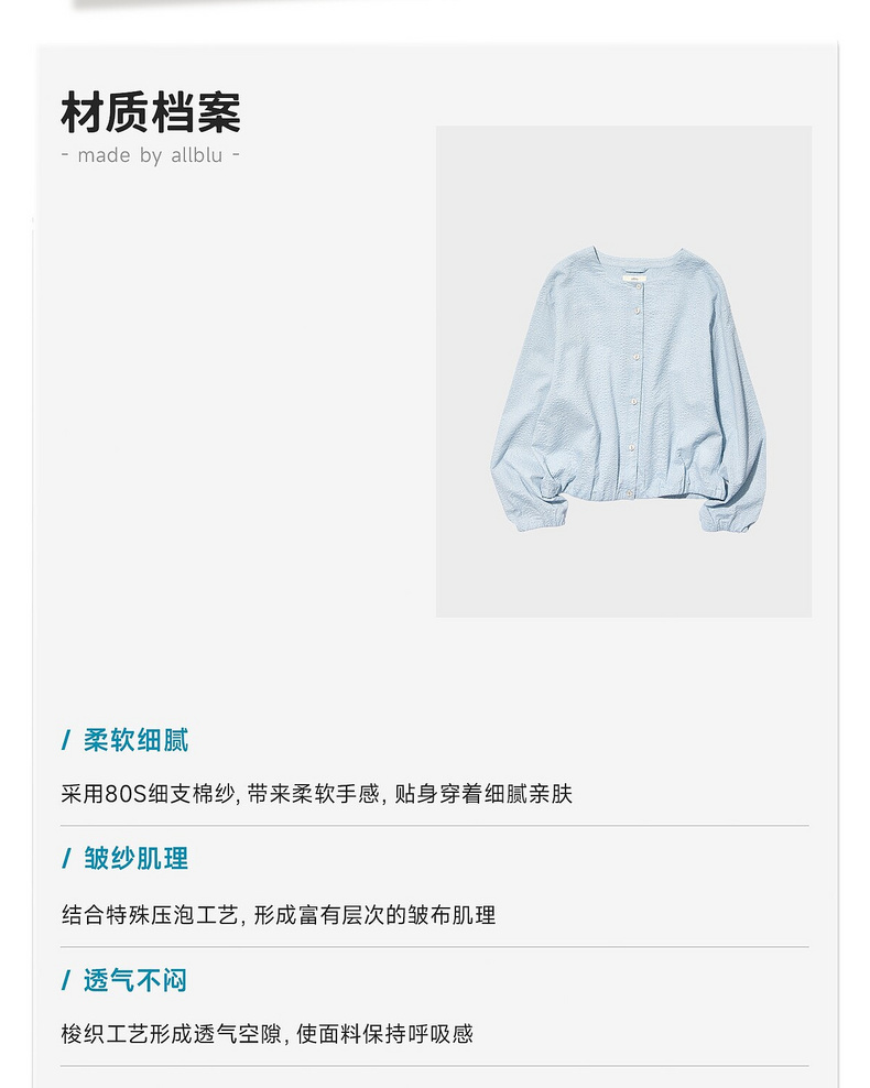 allblu女装“轻柔疏朗会呼吸”26春夏【棉皱纱夏季罩衫】女士衬衫