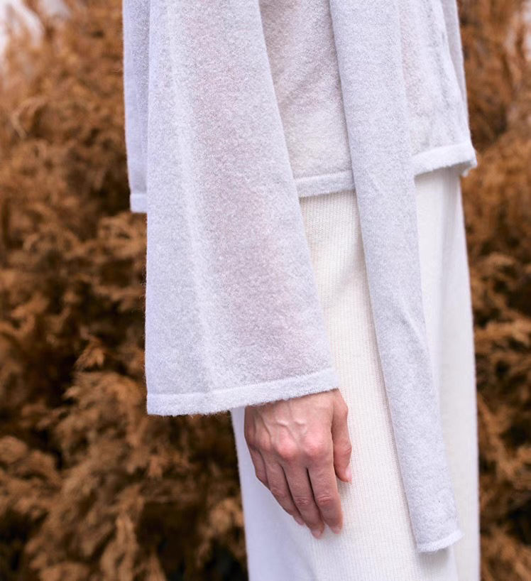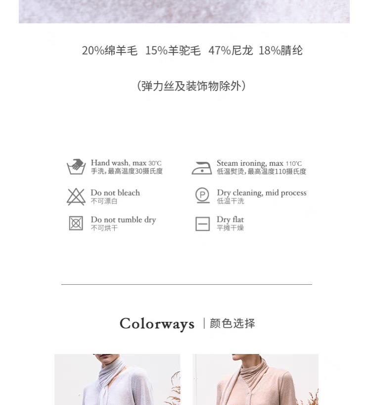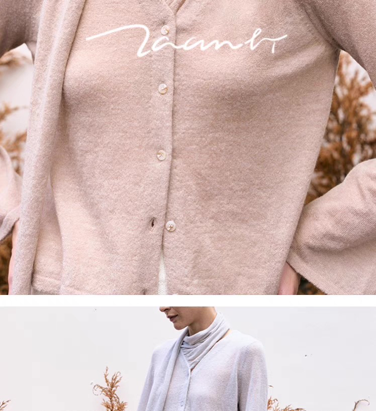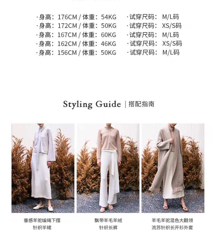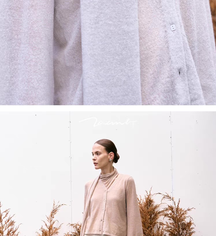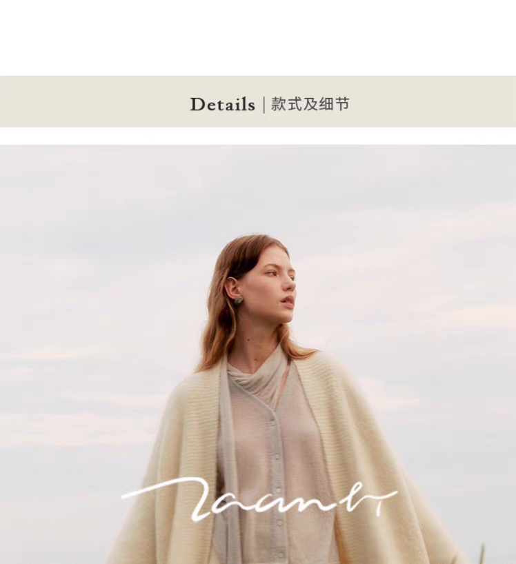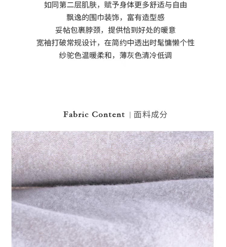 ZAANLI|ZN10016-1 纱驼色 轻薄羊驼毛围巾宽袖针织上衣