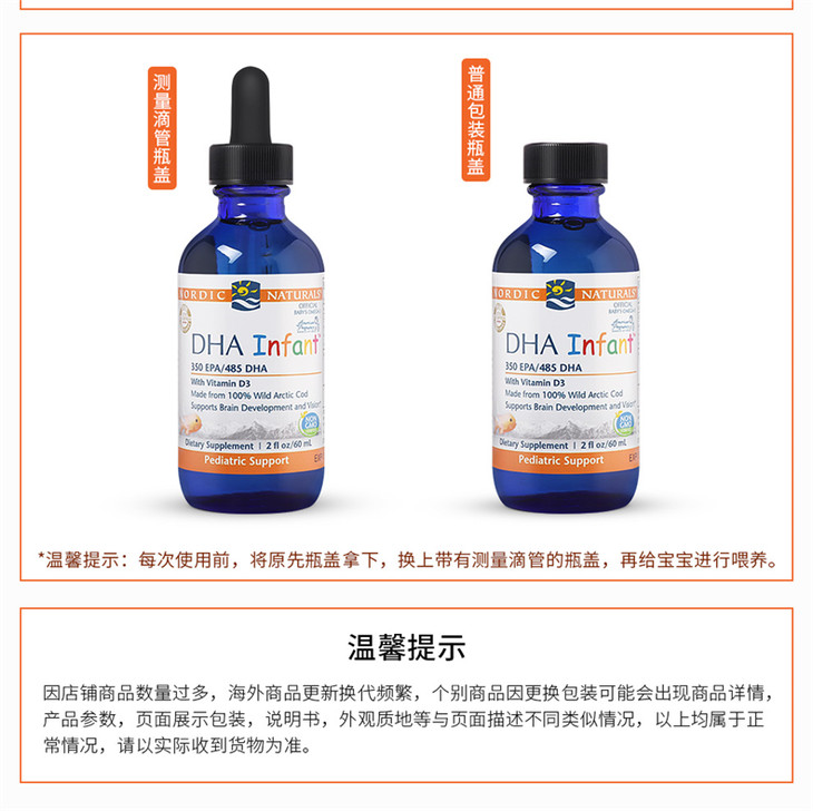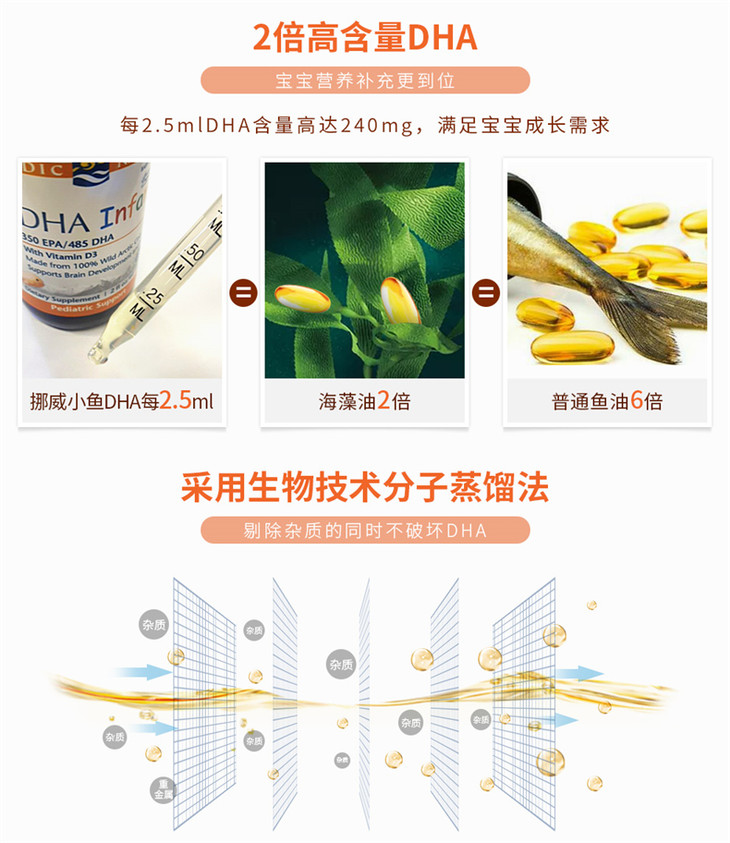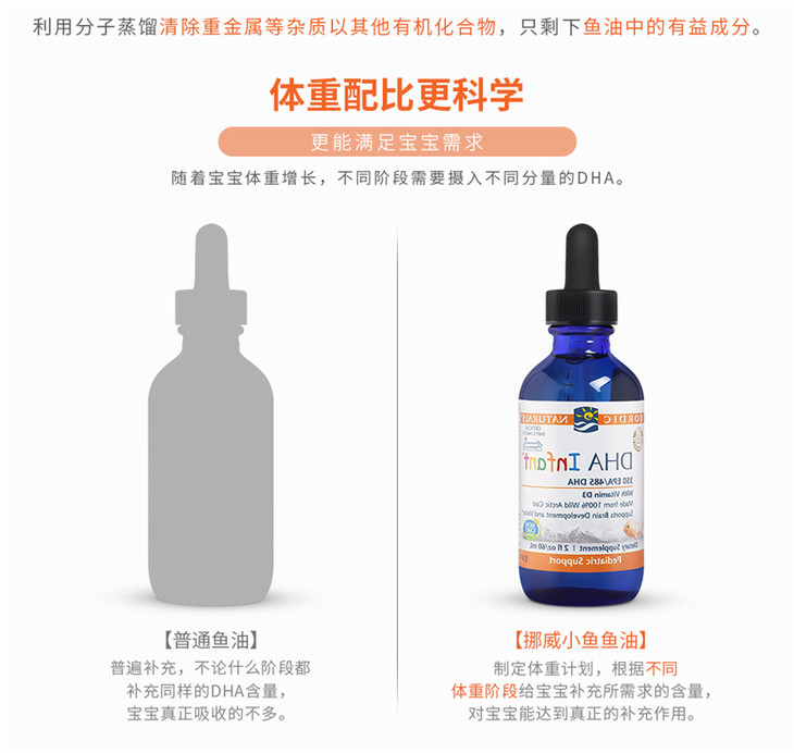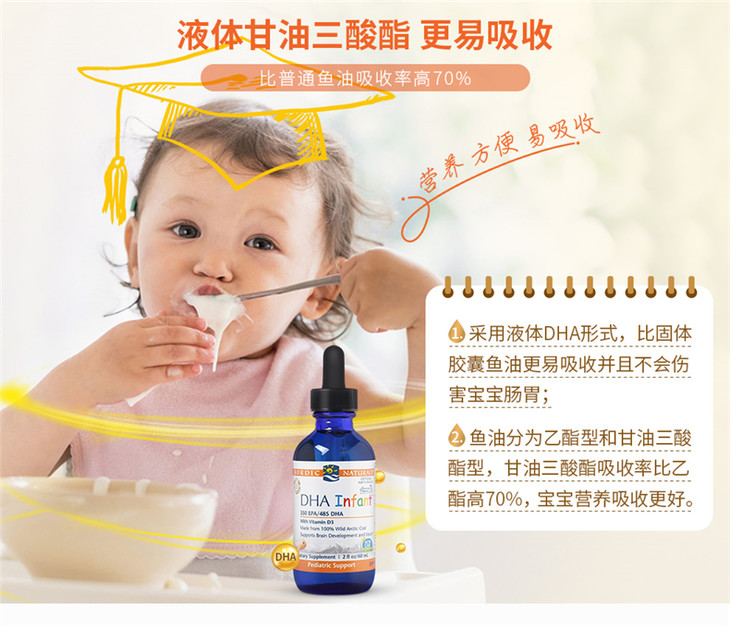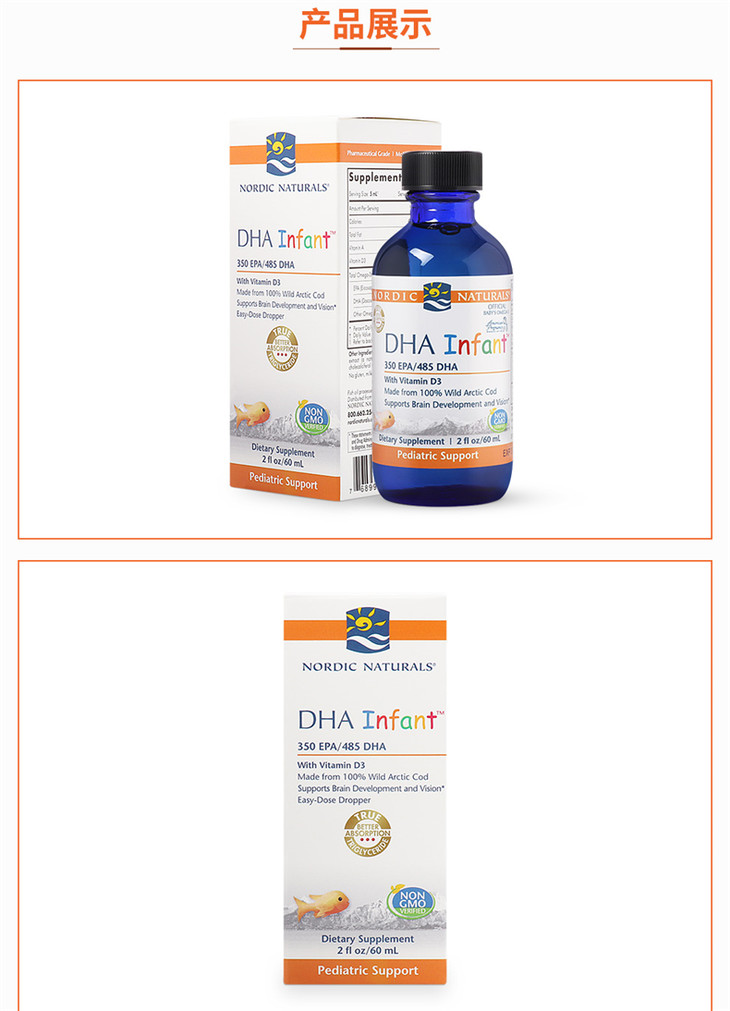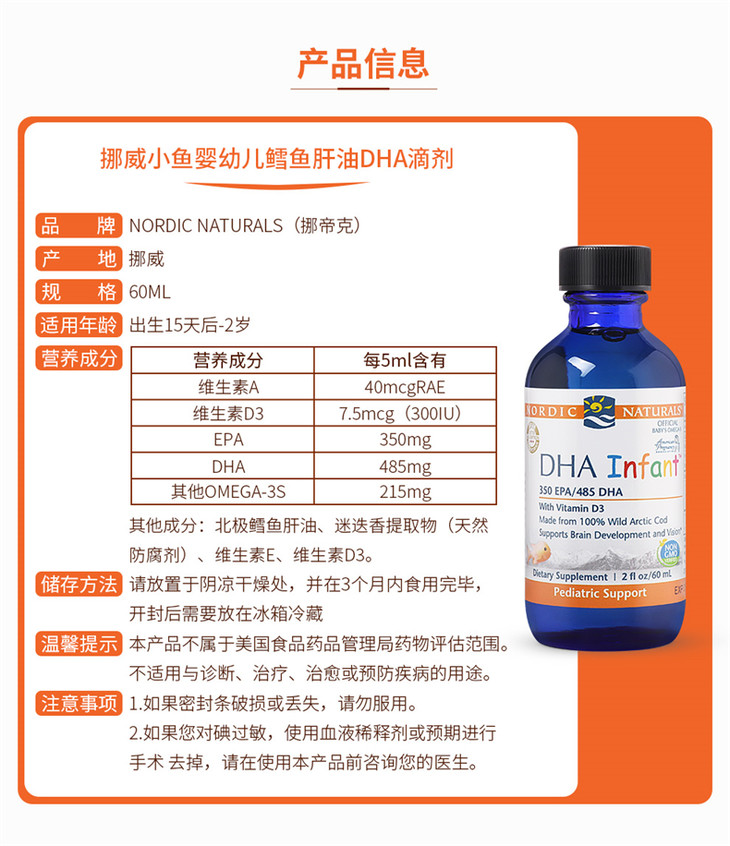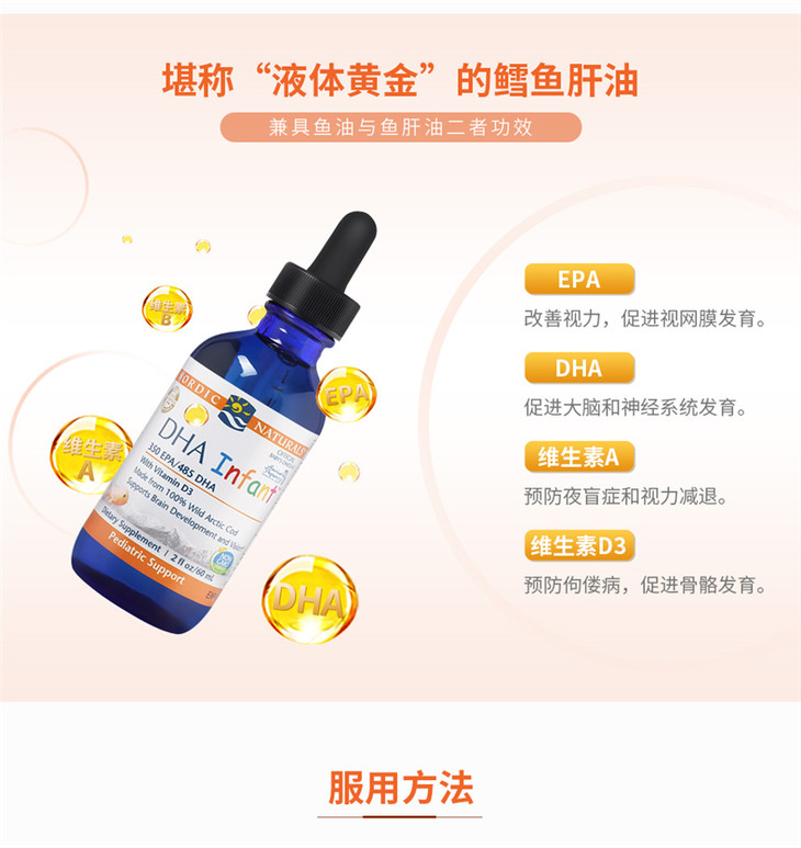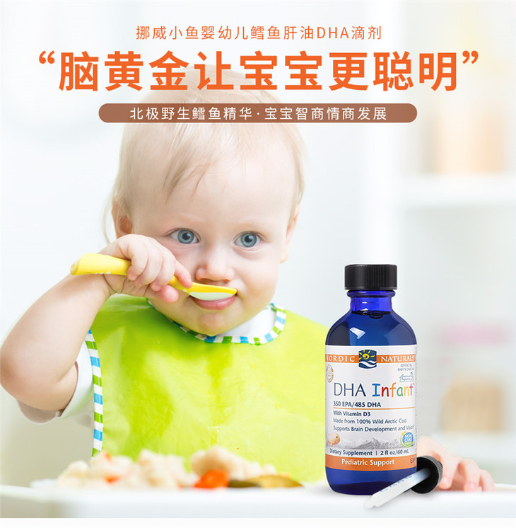 【保税区包邮直发】【DHA+D3】 美国 挪威小鱼 婴幼儿鳕鱼肝油滴剂 60ml 新旧包装随机