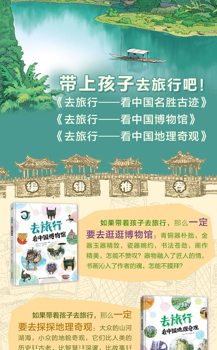 【适合6岁+】《去旅行》精装3册 学地理鉴历史 看中国名胜古迹 看中国博物馆 看中国地理奇观