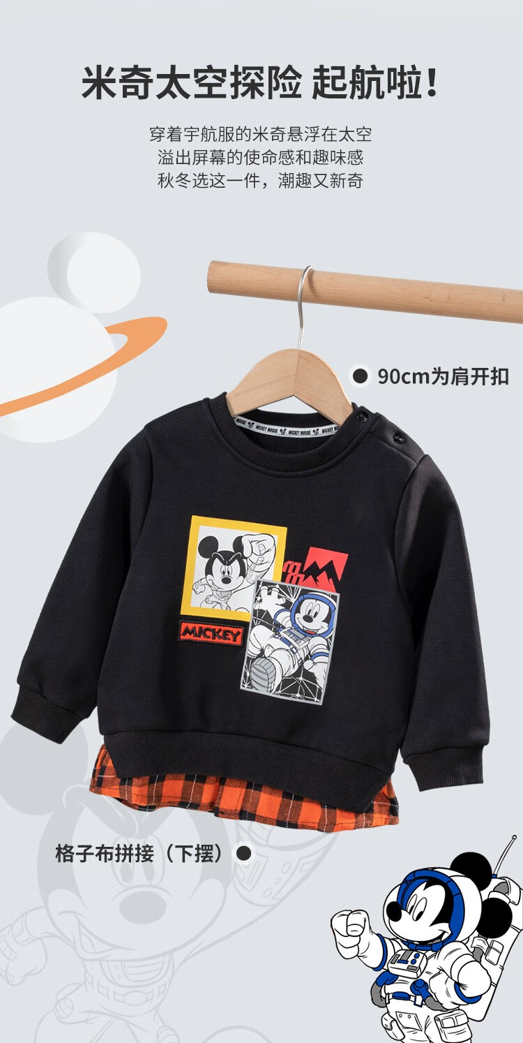 迪士尼童装秋冬新款儿童加绒保暖卫衣假两件拼接上衣214DS0230