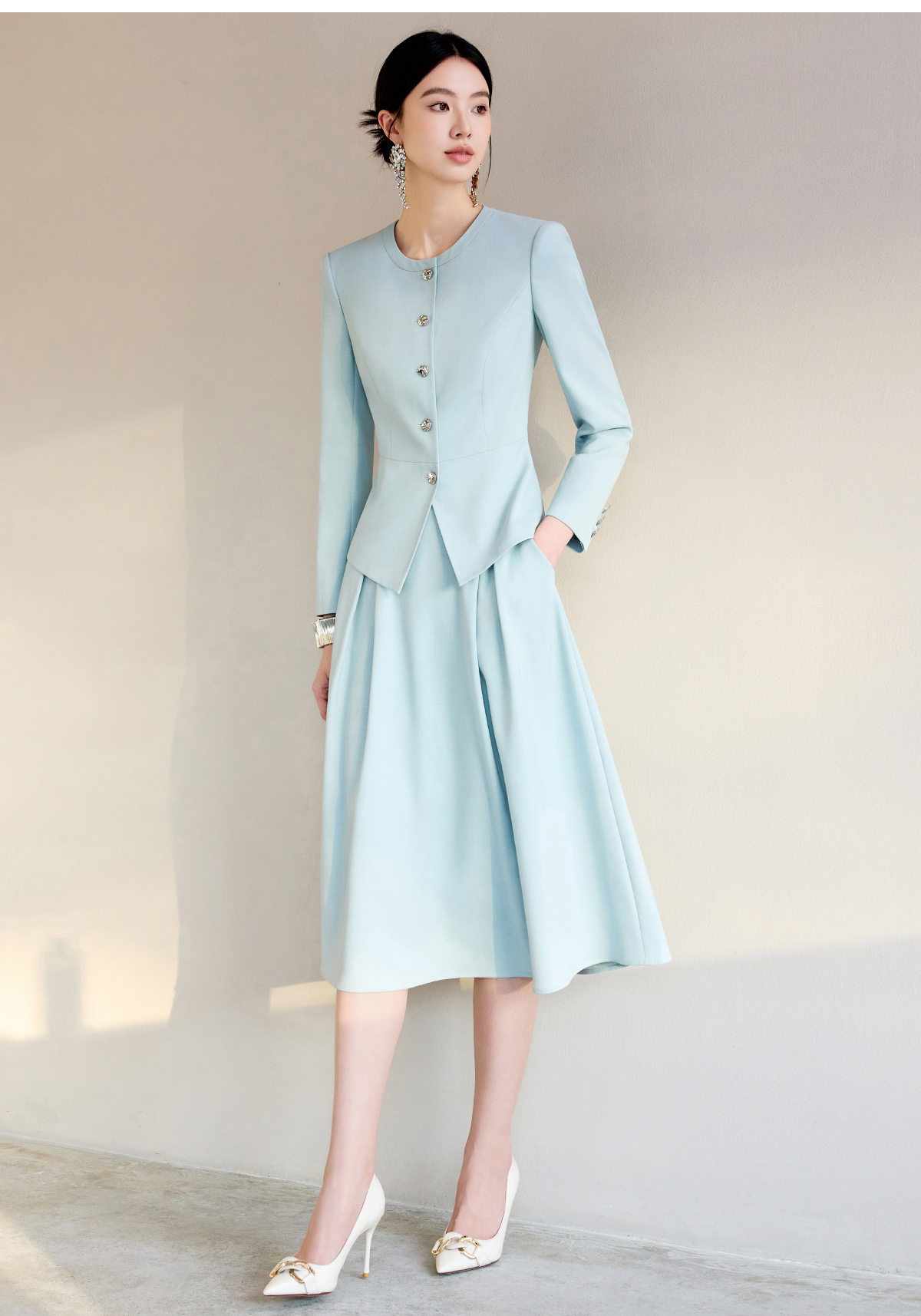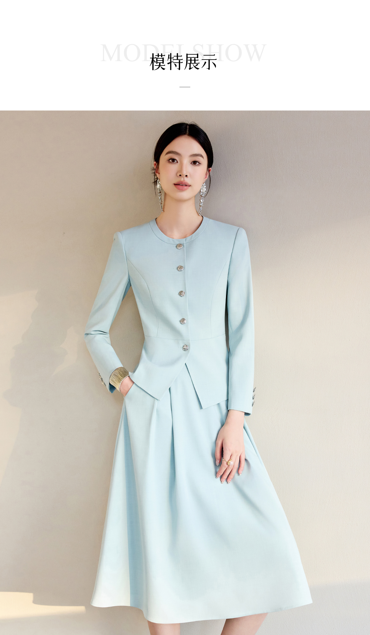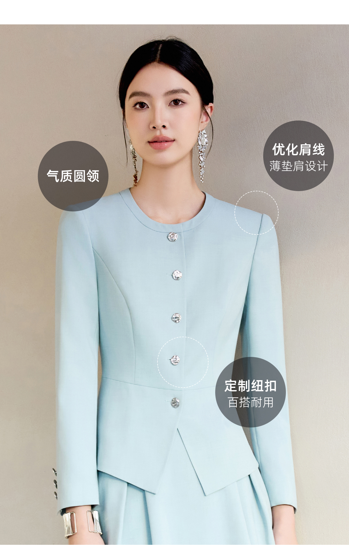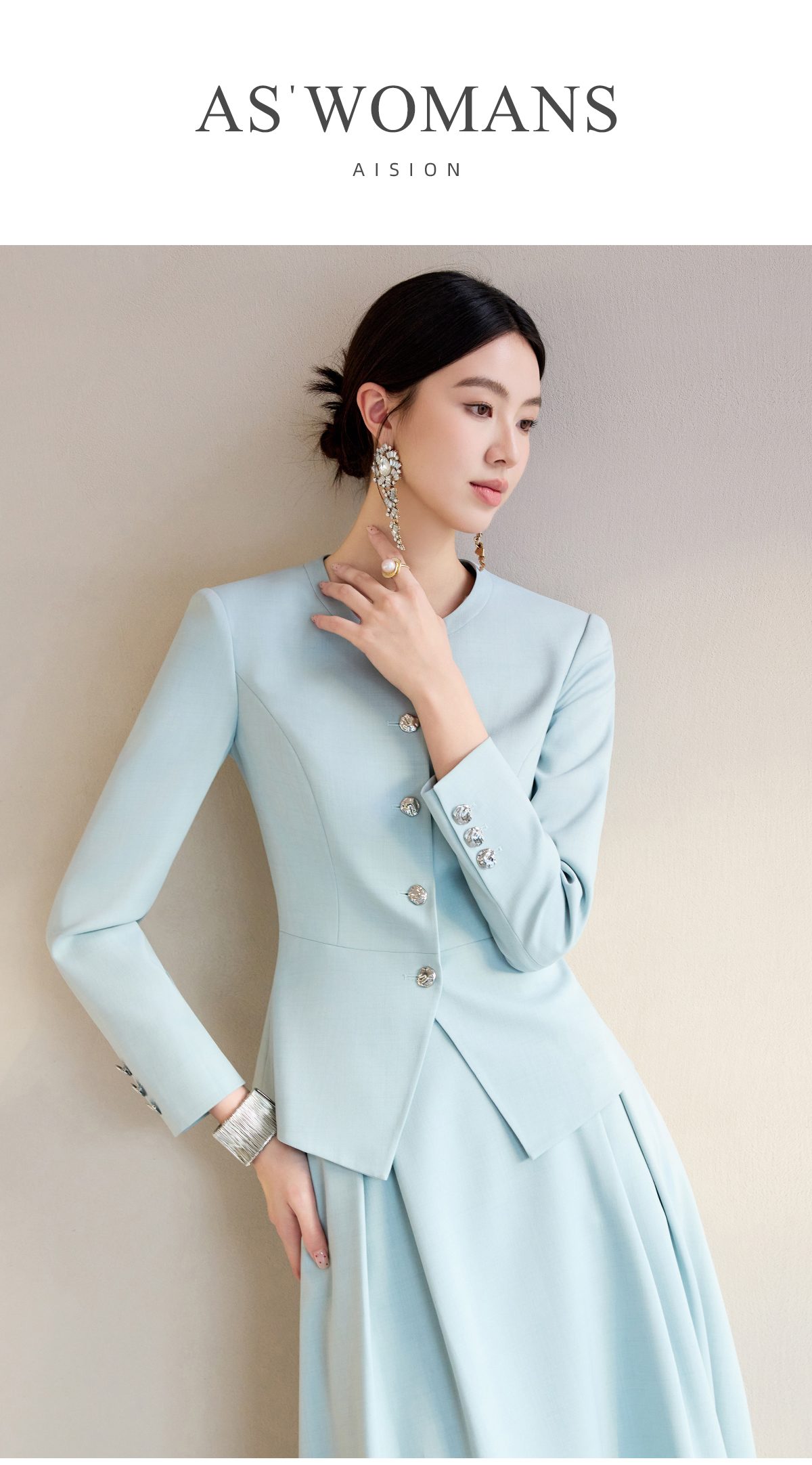 艾尚臣冰川蓝主持人西装套装女气质女神范西服职业套裙播音两件套