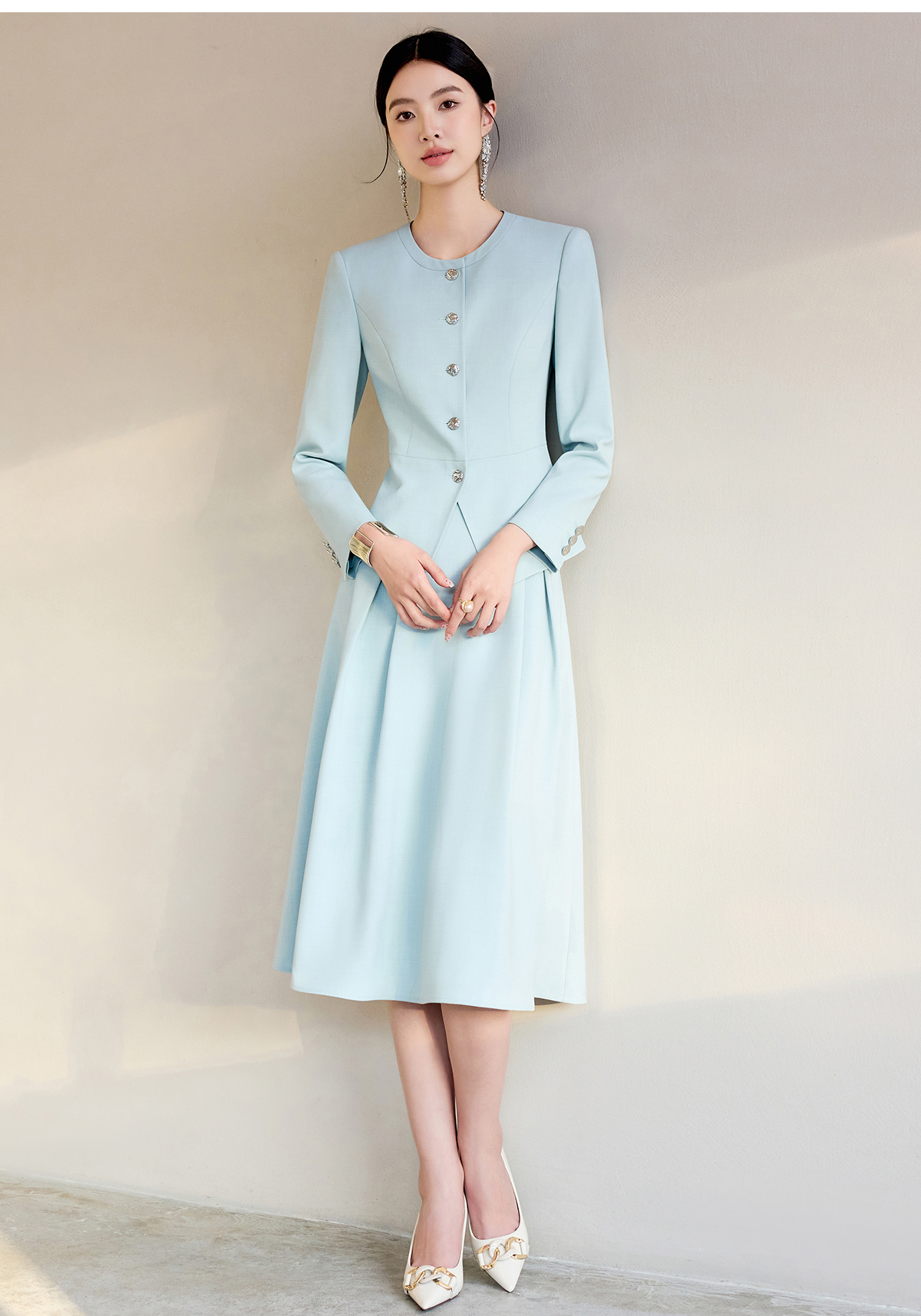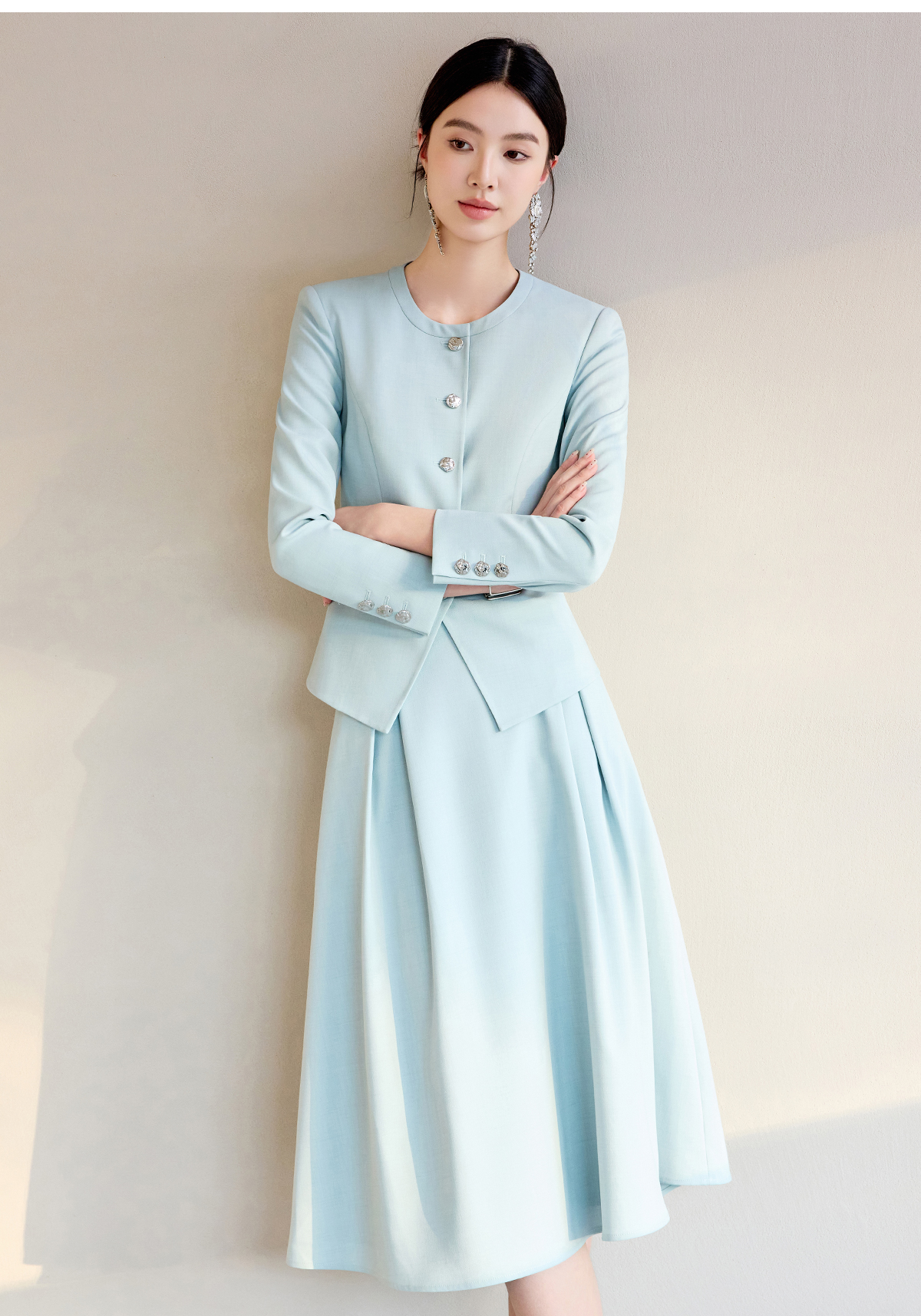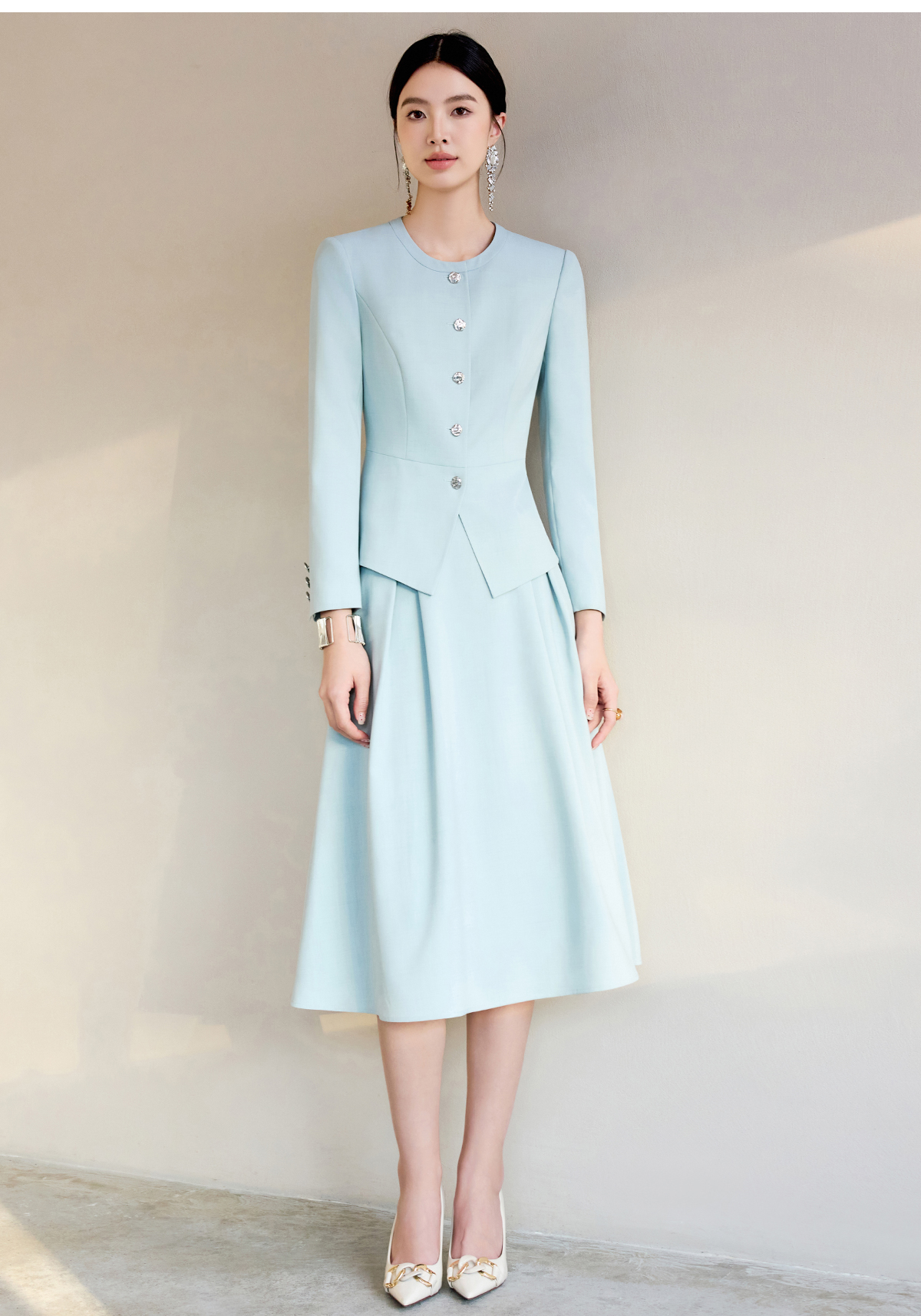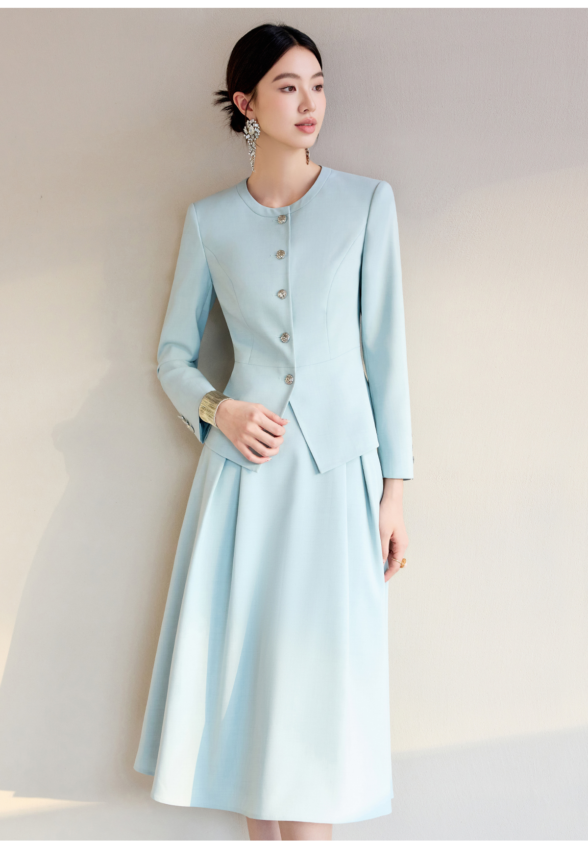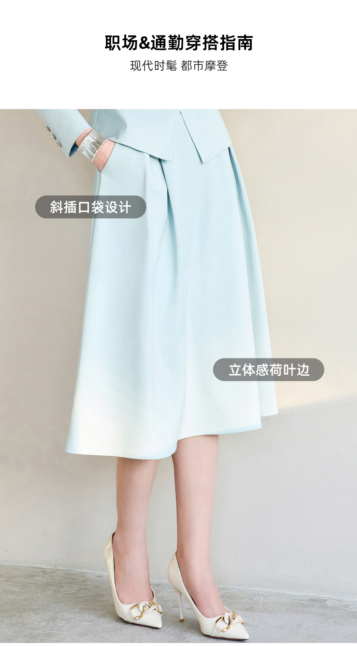 艾尚臣冰川蓝主持人西装套装女气质女神范西服职业套裙播音两件套
