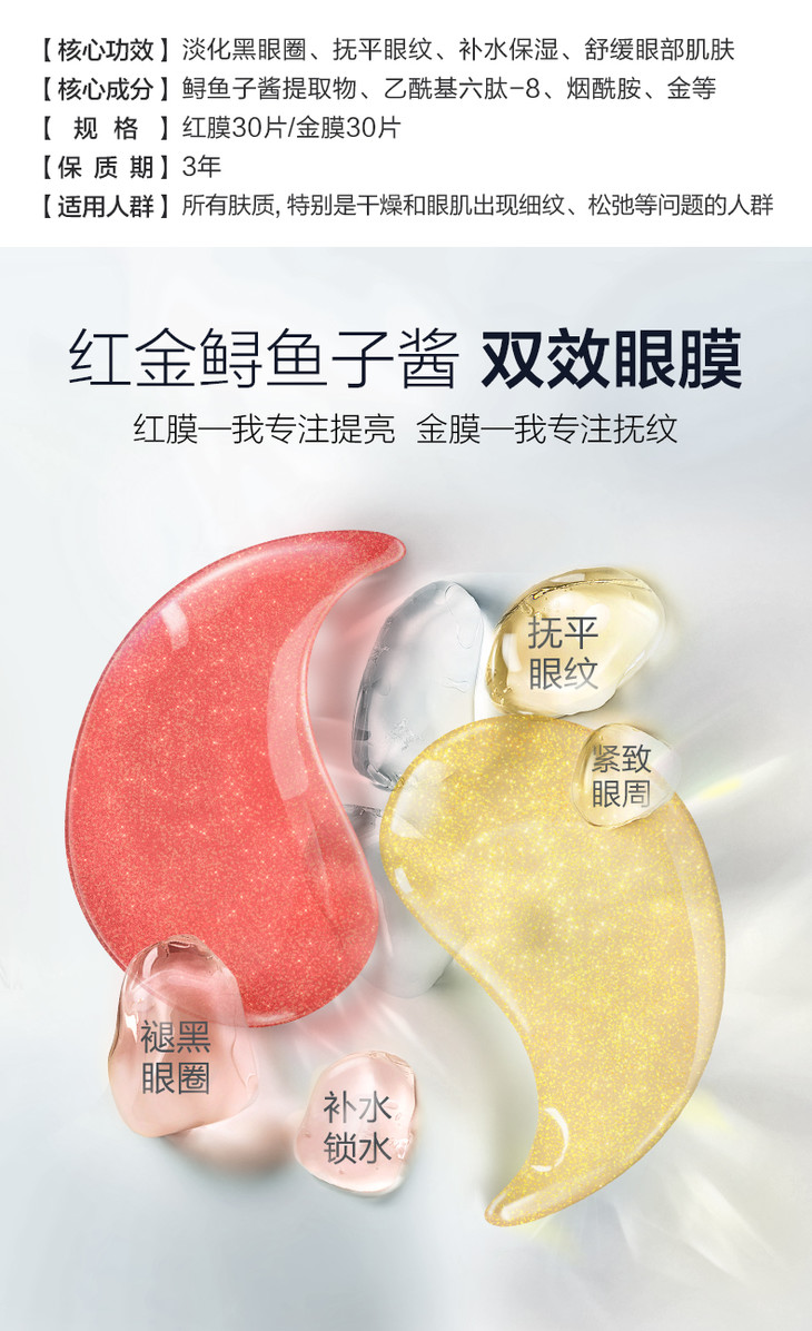 【无】植美村鱼子酱熬夜眼贴膜淡化细纹去黑眼圈去眼袋 60片(日期至2022年10月15号)