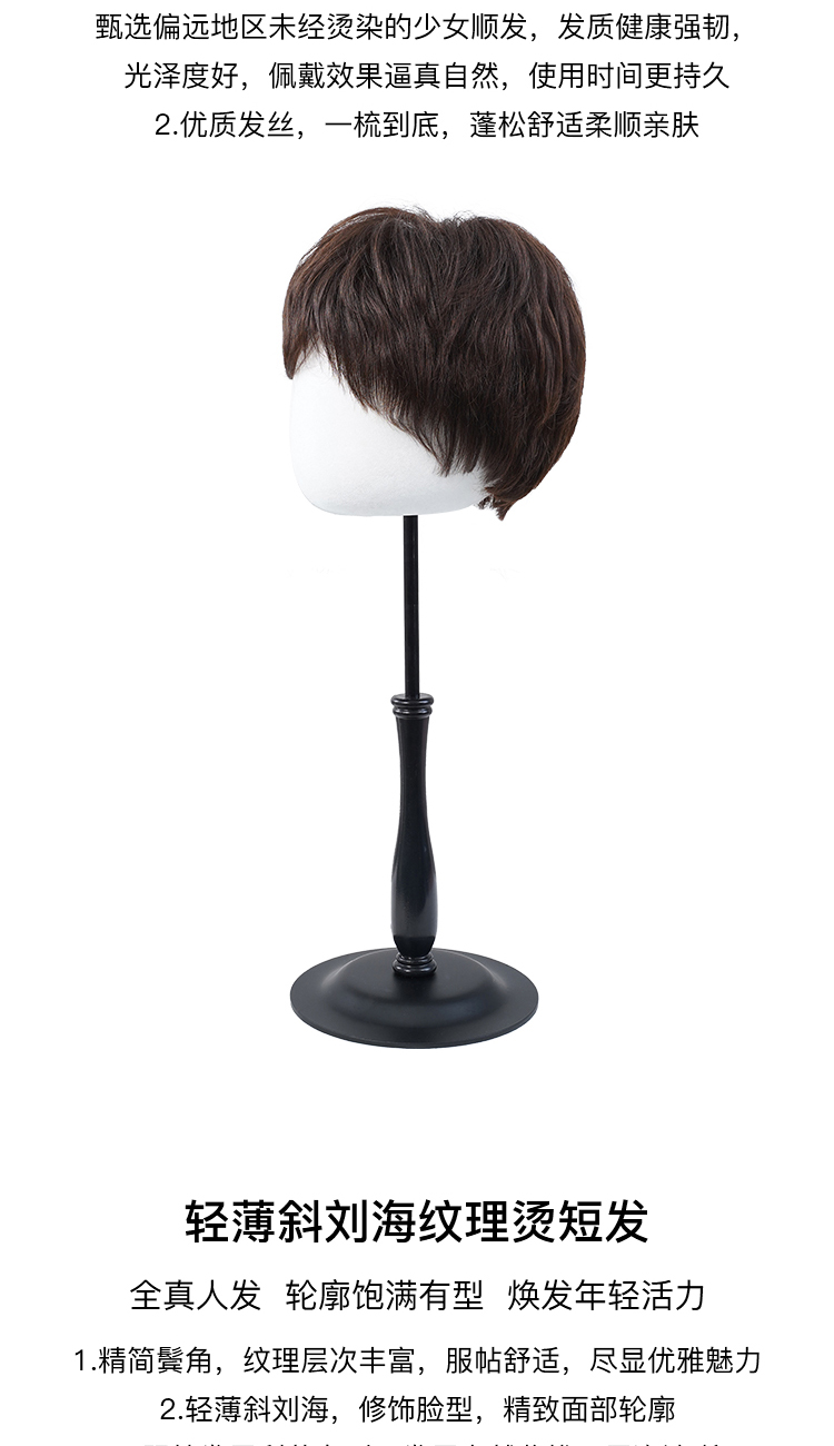 Rebecca瑞贝卡假发短发全真人发女斜刘海纹理烫发套自然逼真时尚头套