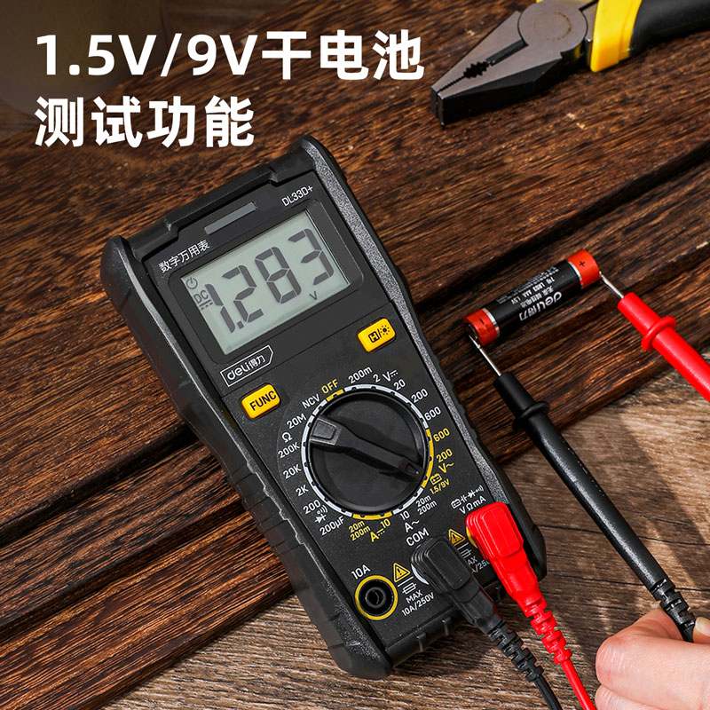 得力数字万用表1999位NCV测试(红黑)