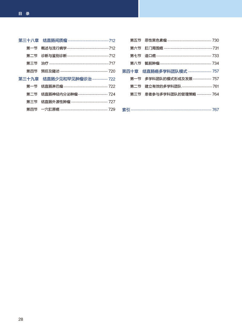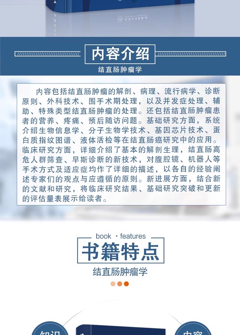 【1】内容包括结直肠肿瘤的解剖、病理、流行病学、诊断原则、外科技术、围手术期处理,以及并发症处理、辅助、特殊类型结直肠肿瘤的处理。还包括结直肠肿瘤患者的营养、疼痛、预后随访问题。
