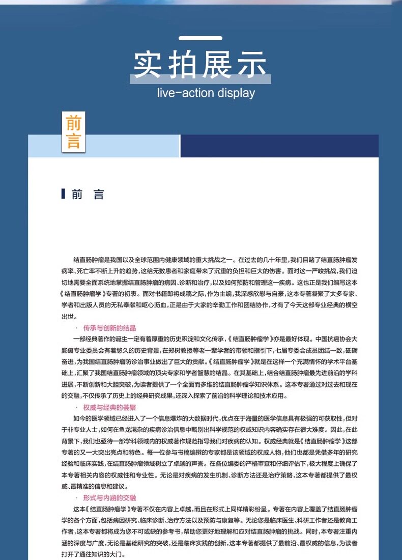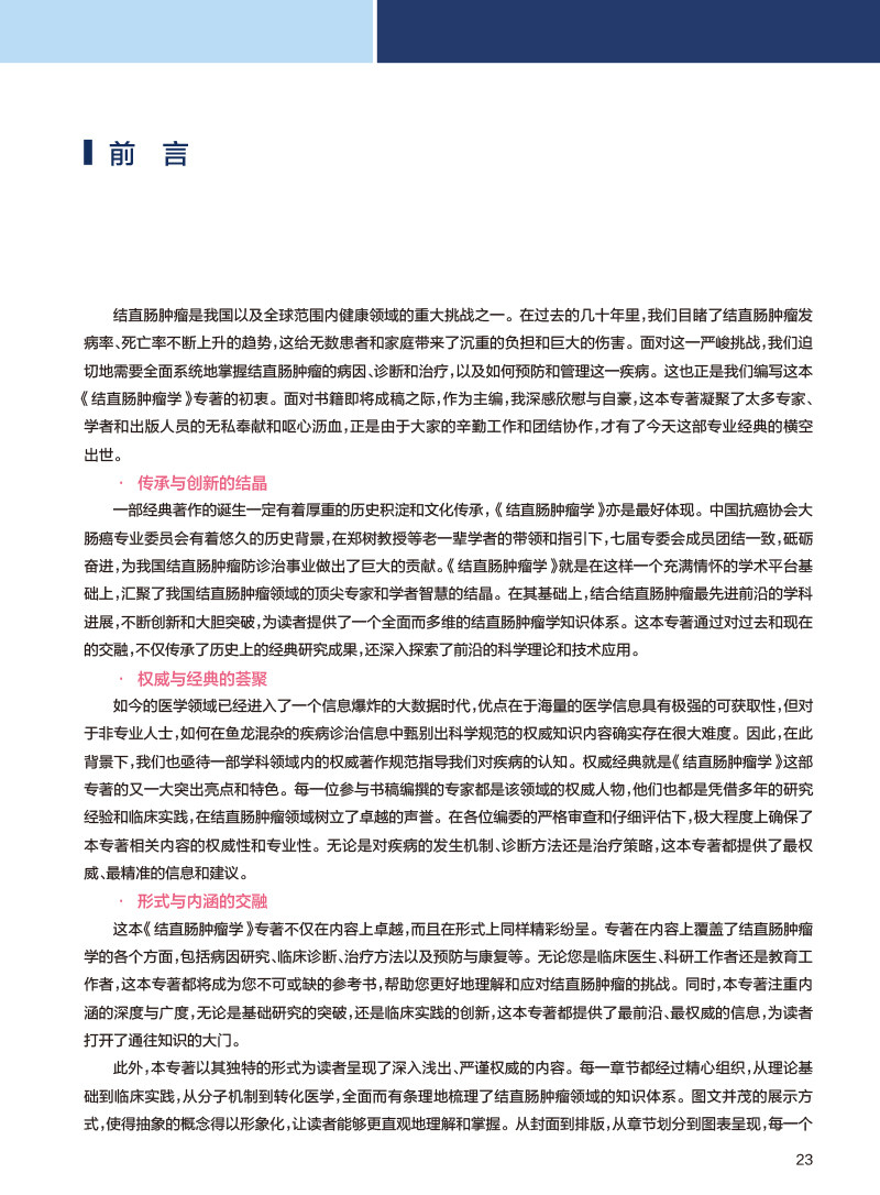 【3】临床研究方面,详细介绍了基本的解剖生理,结直肠高危人群筛查、早斯诊断的新技术,对腹腔镜、机器人等手术方式及适应症均作了详细的描述,以各自的经验阐述专家们的观点与应遵循的原则。