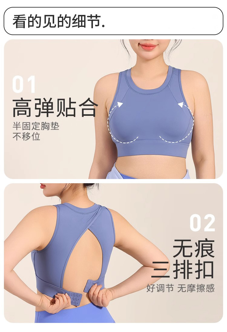 跃牌(呗咪纷纷系列)大码一体运动内衣女防震跑步美背瑜伽背心固定胸垫聚拢文胸WX9001