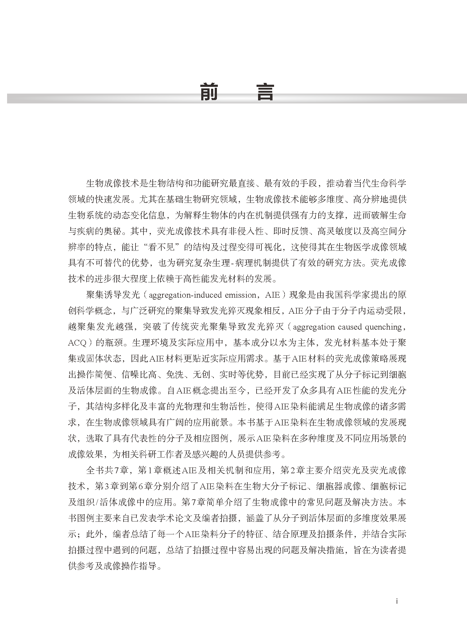 本书是一本聚焦前沿光学材料应用的跨学科工具书,系统呈现了“聚集诱导发光”(aggregation-induced emissin,AIE)材料在生命科学领域的创新突破与实践成果。全书通过三大模块构建知识体系:基础理论部分阐释了AIE材料的发光机制与特性优势以及荧光成像技术的广泛应用场景;图谱部分详细展示了AIE材料在不同层次的生物成像实例,涵盖生物大分子、细胞器、细胞及活体;常见问题部分针对荧光成像中的常见问题给出原因分析及解决方案,可助力初入荧光成像领域的基础及临床工作者快速了解相关知识。全书收录超过500幅技术原理及高清显微图像,直观呈现了AIE材料在不同环境及应用场景中的高信噪比、高靶向性、高稳定性及高穿透性等技术优势。成像图例提供了对应的AIE分子结构及详细的成像参数,为读者提供全面的技术参考。作为材料科学与生物医学的交叉研究成果,本书既可作为高校“生物医学工程”专业研究生教材,也可为相关生物技术企业研发部门提供技术转化指南,同时也能成为生物、医学等工作者的工具书。