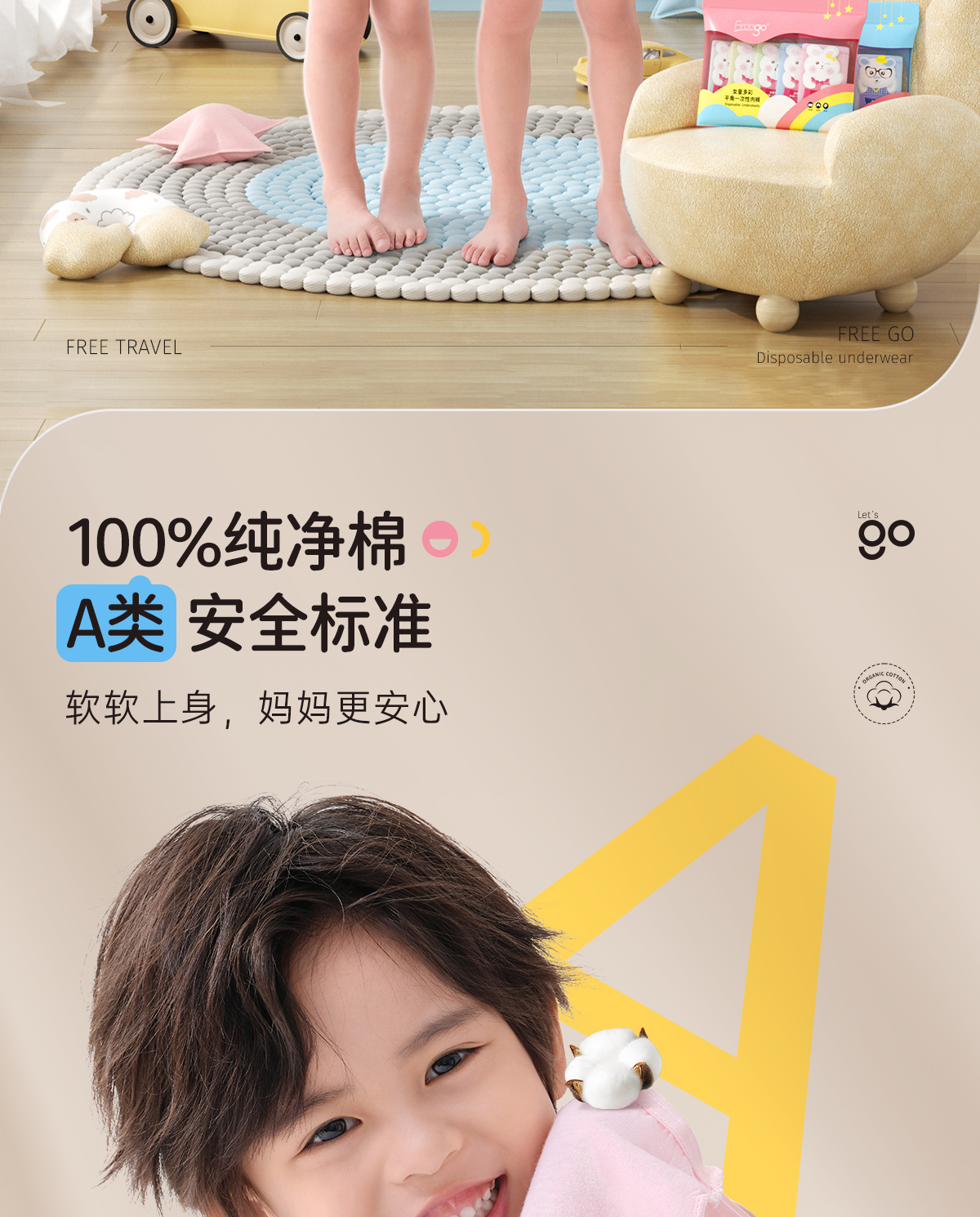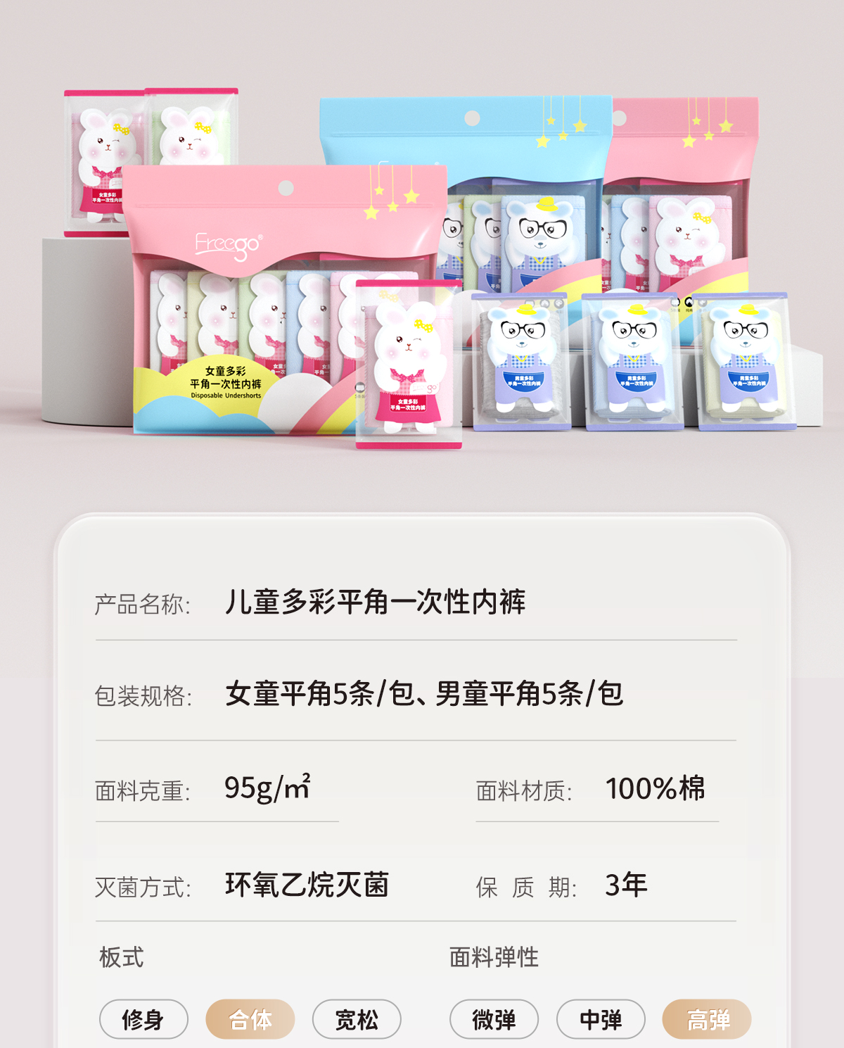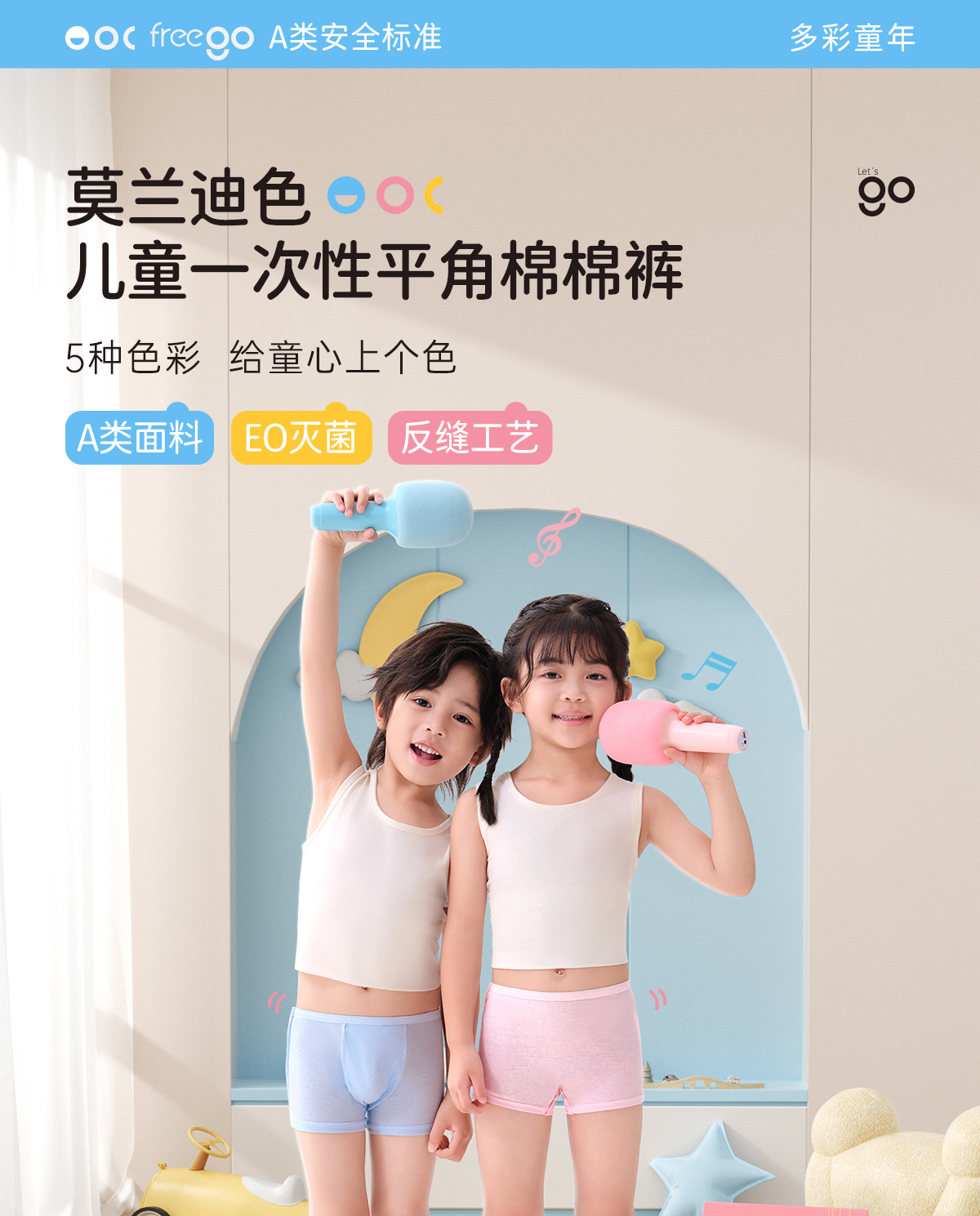 【无菌级】Freego A类一次性「彩色平角裤」7A抗菌纯棉儿童内裤/短裤 5条装