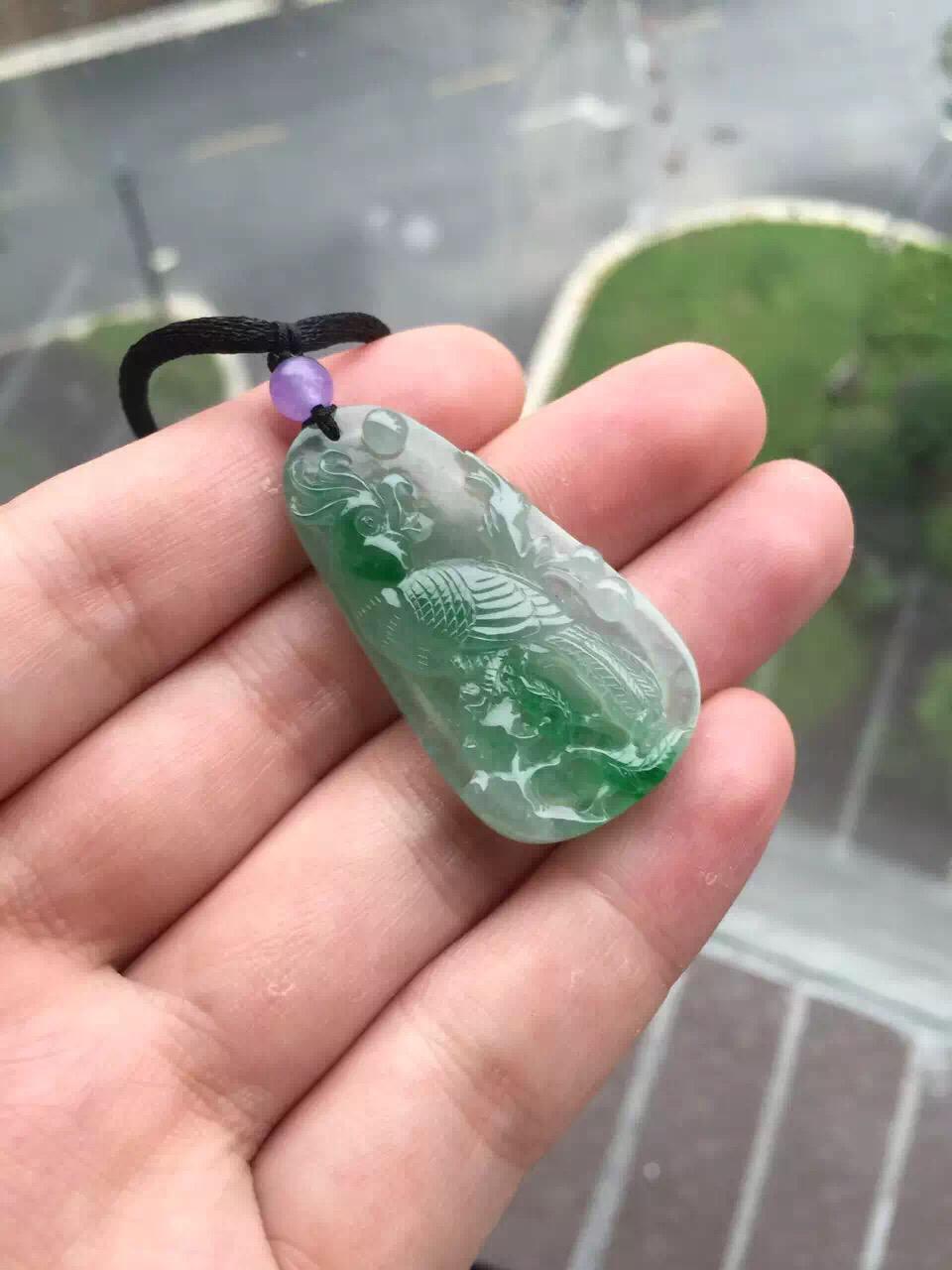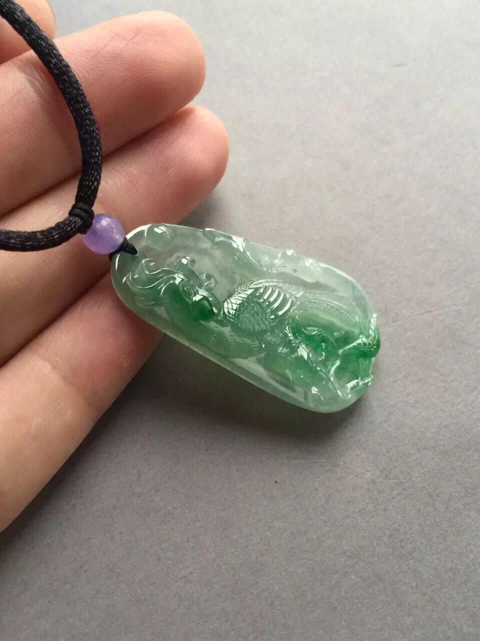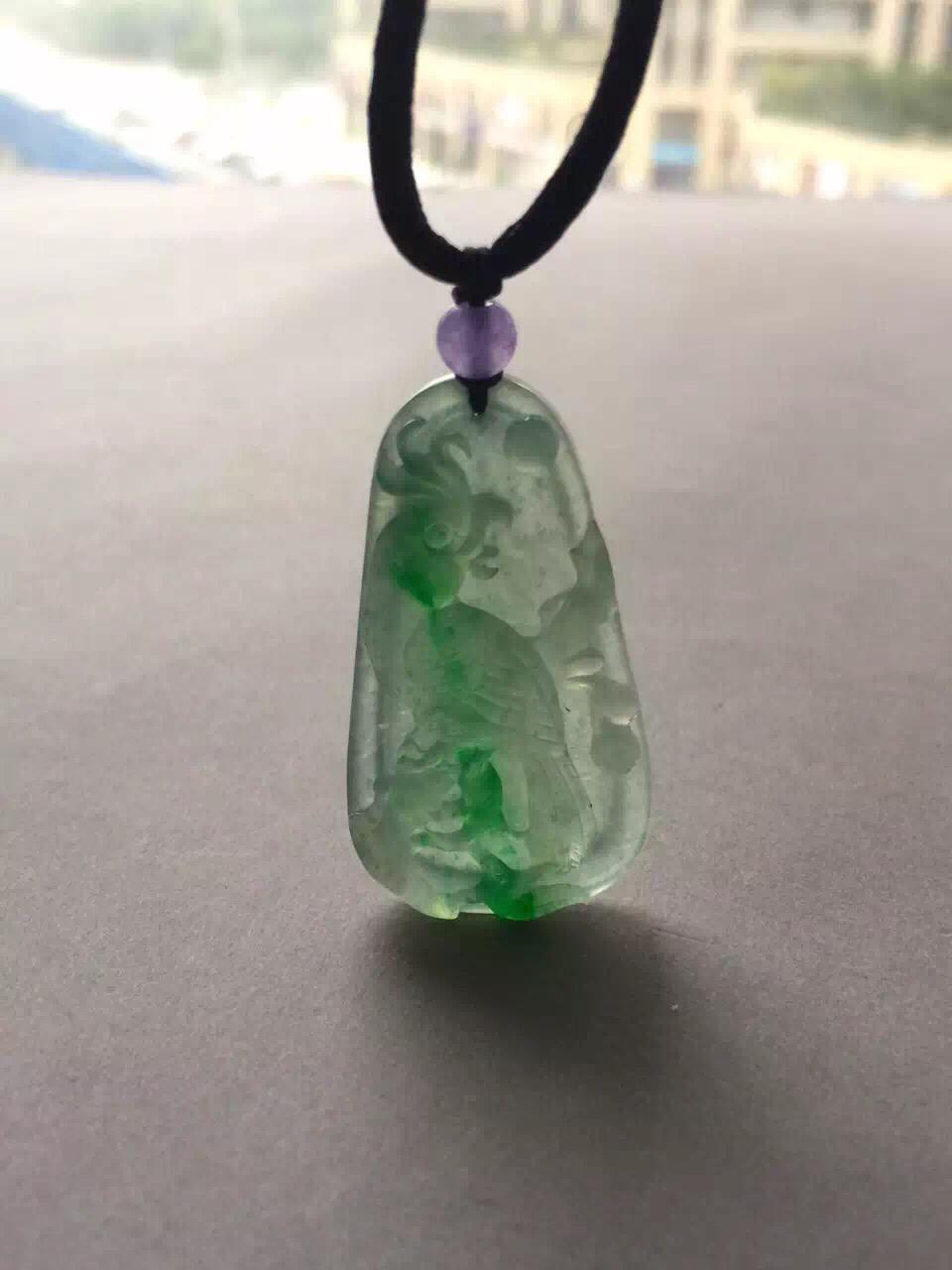 冰种飘阳绿翡翠吉祥如意,40*22.1*5.3mm,尺寸大气饱满,种色俱佳,晶莹剔透,阳绿艳丽,正气阳富贵无比,手工精雕鹦鹉吉祥鸟,细细品味牌子精美异常,让人爱不释手的好宝贝,精品推荐,求富贵必备