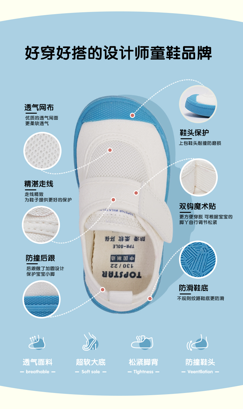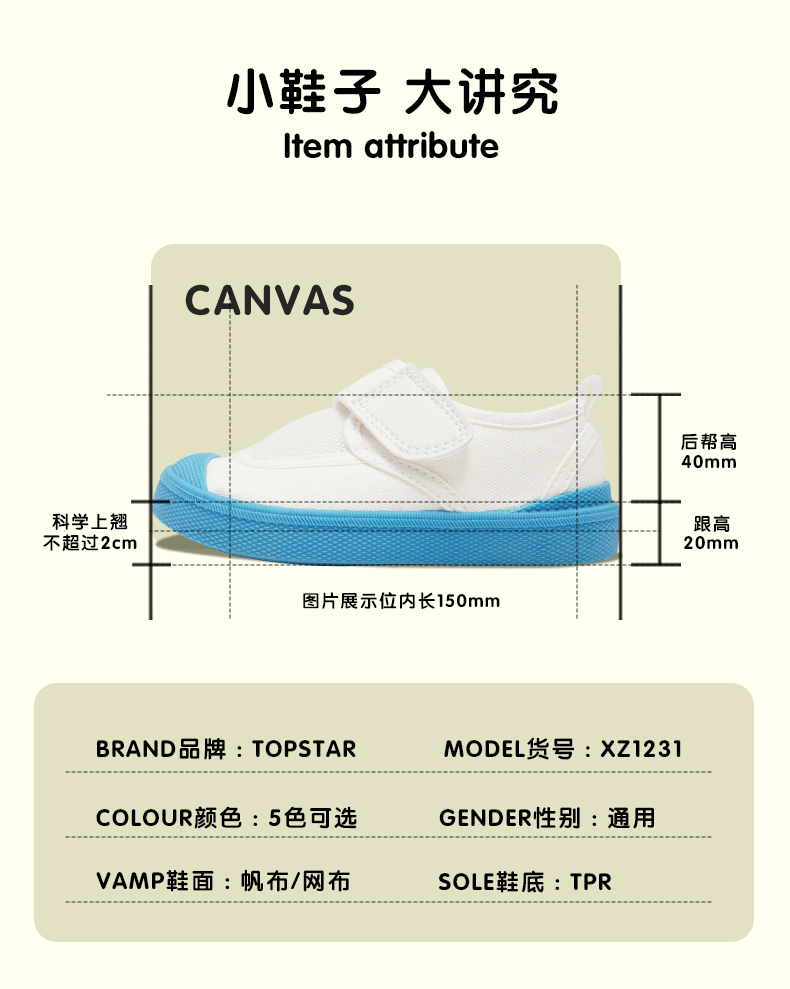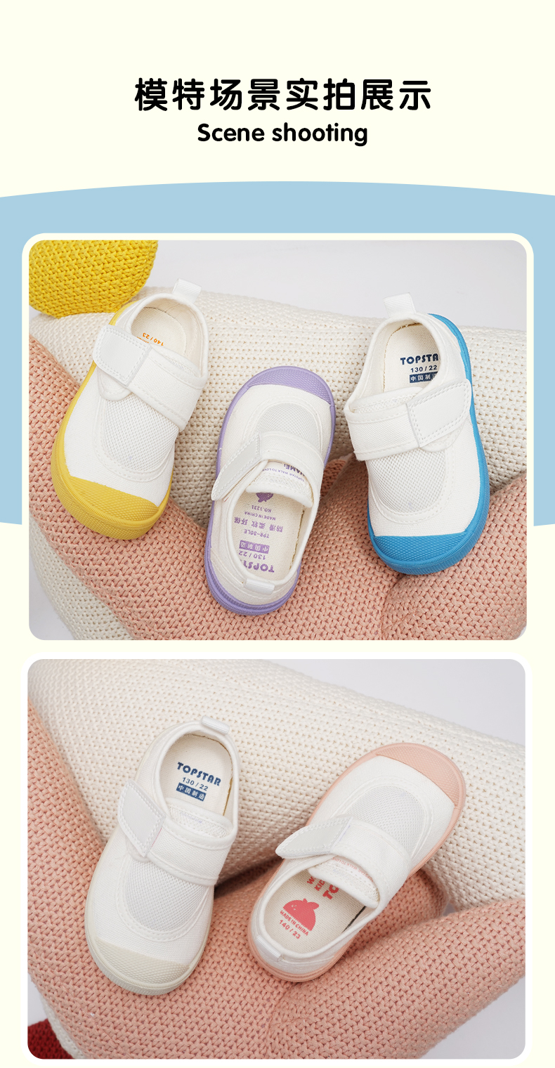 TOPSTAR儿童帆布鞋男童幼儿园小白鞋女童宝宝室内鞋软底布鞋入园