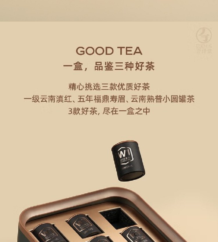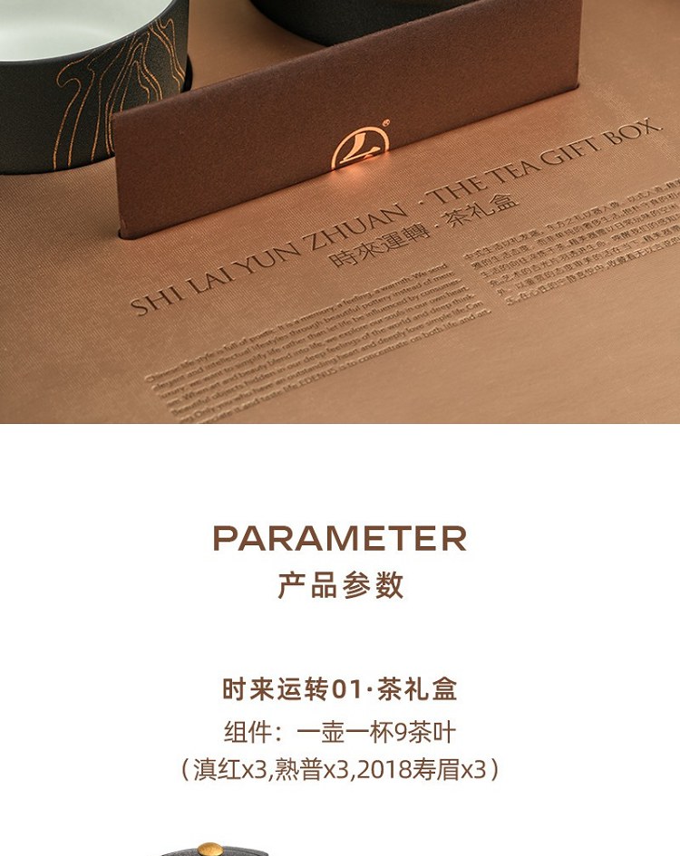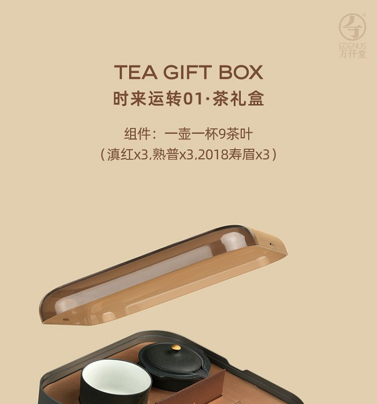 组件:1壶1杯9茶叶(滇红、寿眉、熟普各3罐)