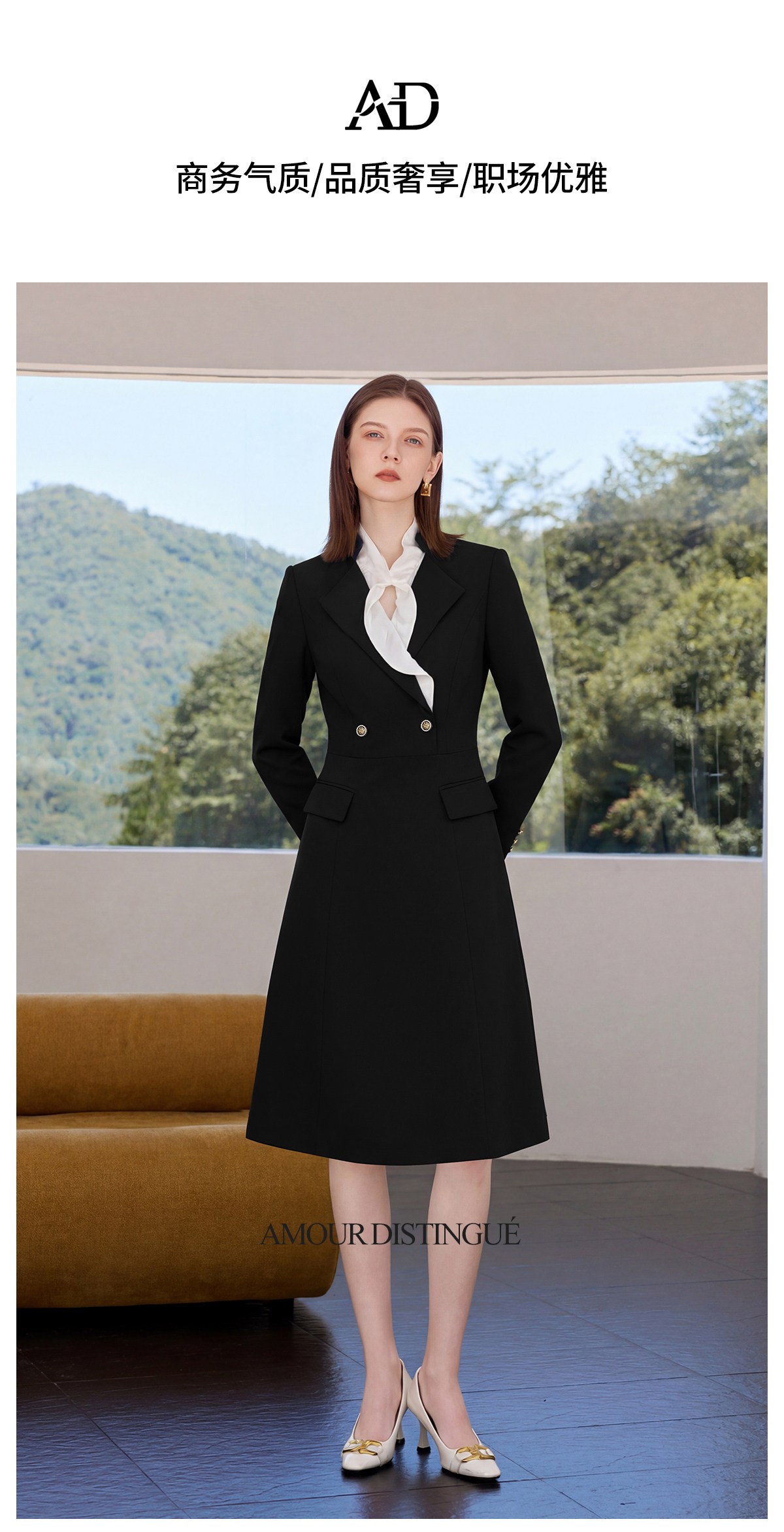 AD高端精致连衣裙女春2026新款今年流行爆款高知得体早春黑色裙子