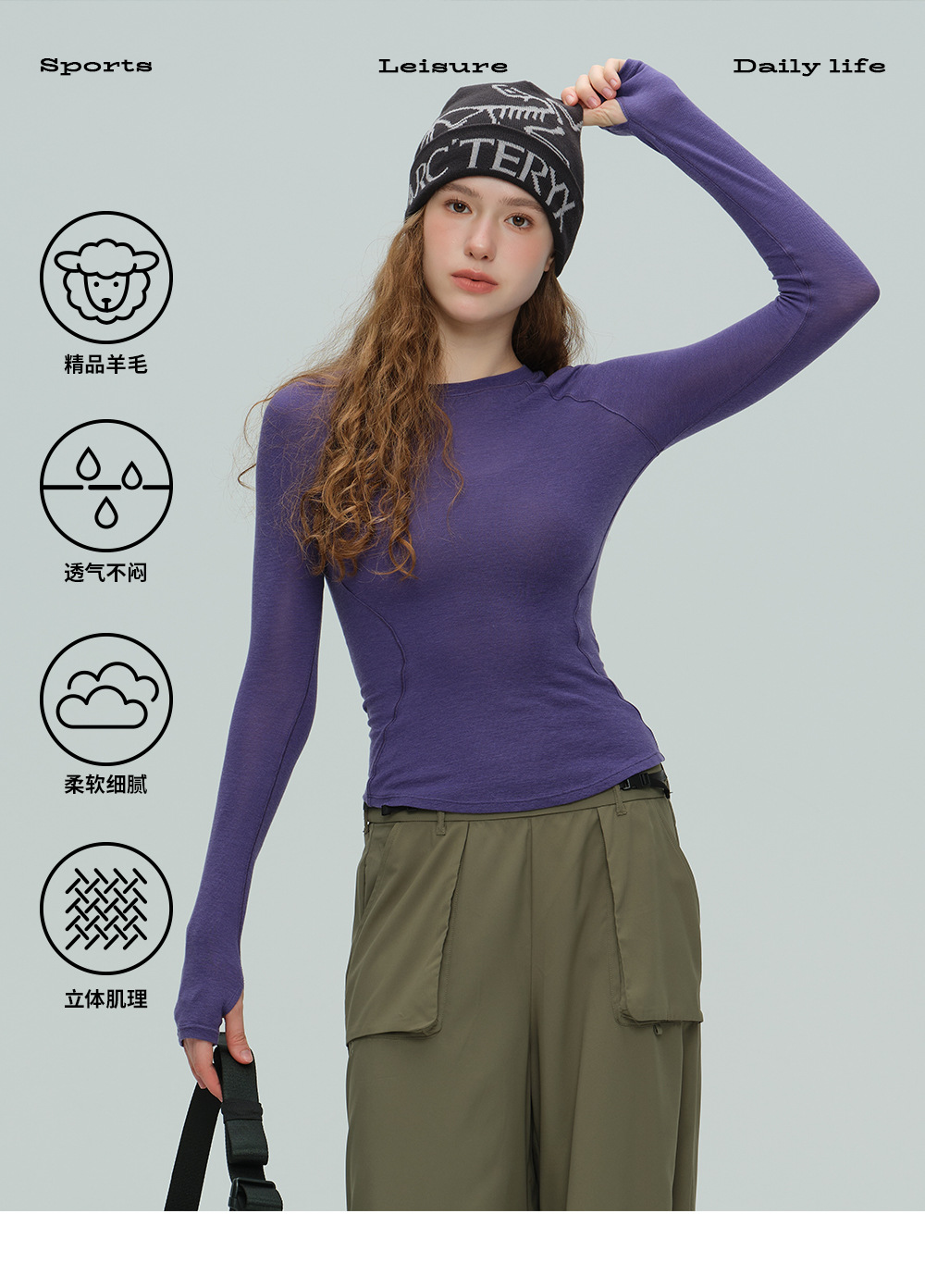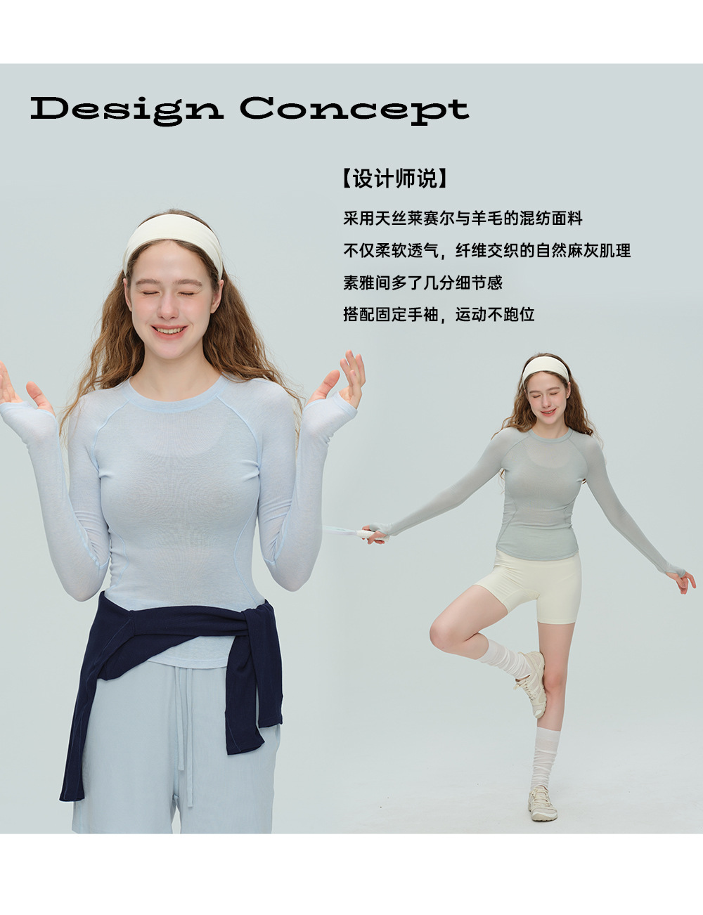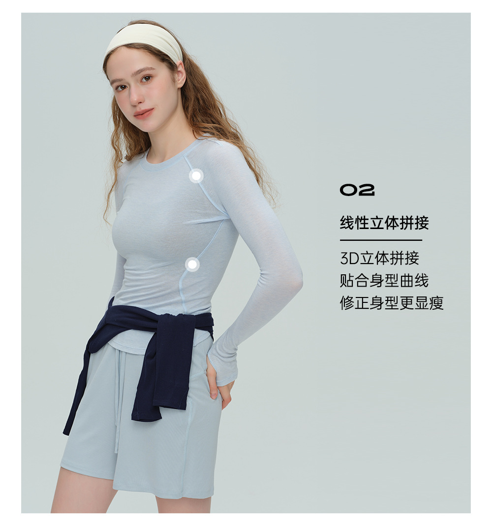 唤醒身心~天丝莱赛尔天奴丽丝运动瑜伽长袖固定手袖圆领健身服 中空膨体 保温不失温