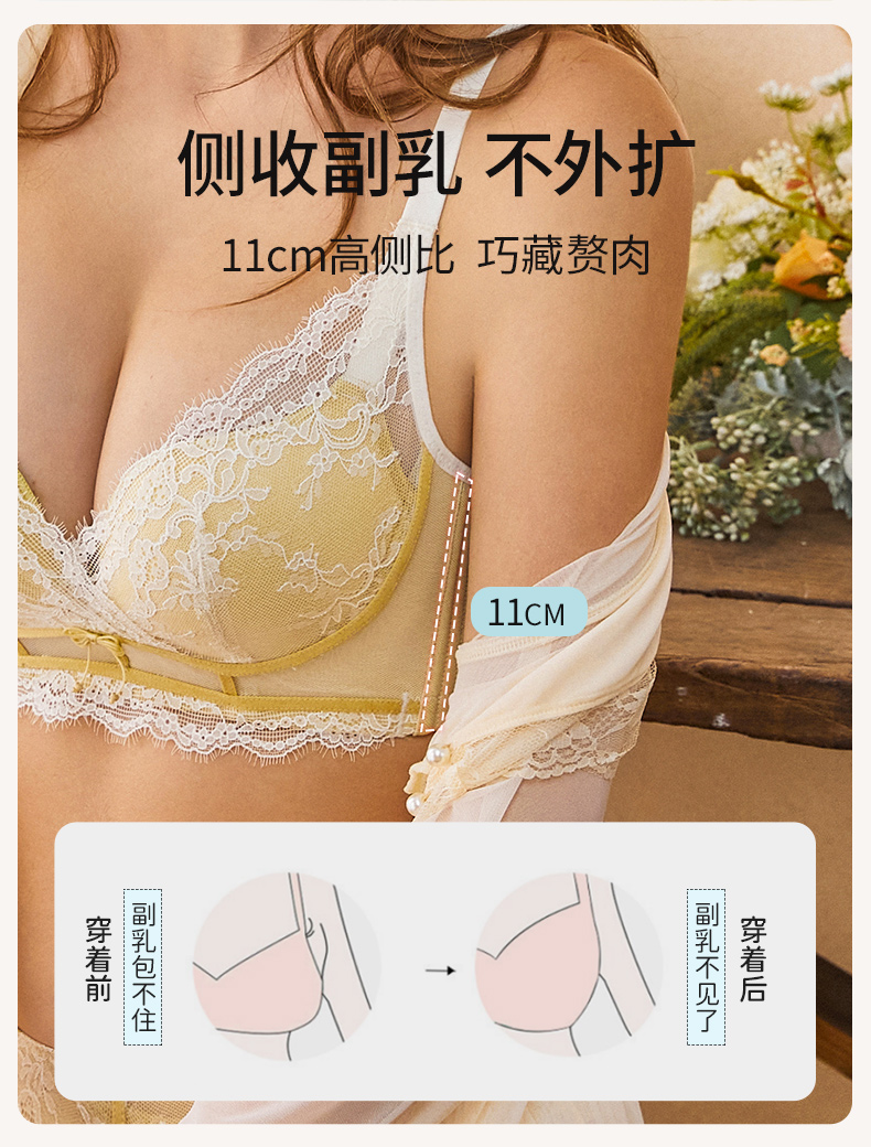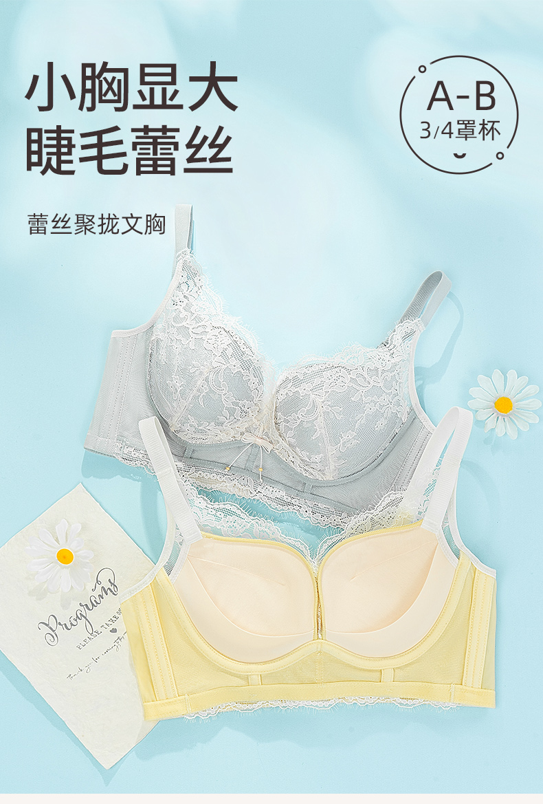 雅黛丽内衣女小胸聚拢亲肤透气文胸无钢圈收副乳防下垂美背女胸罩