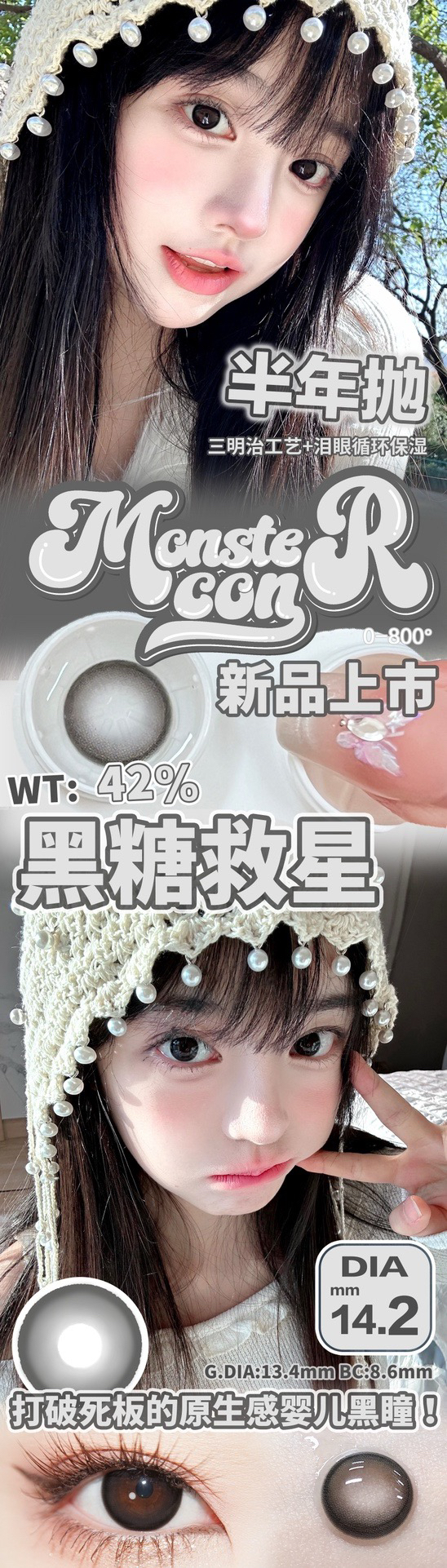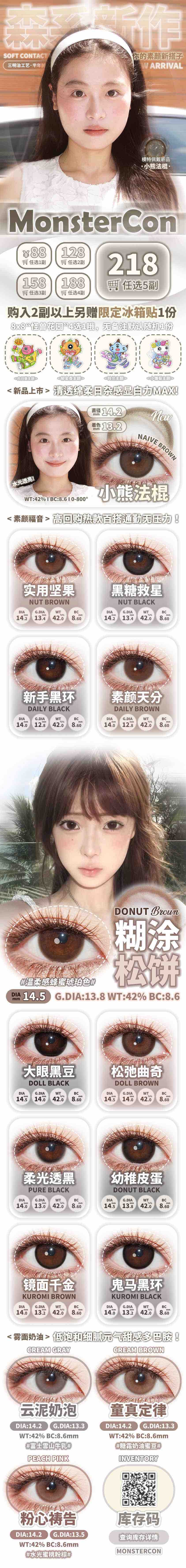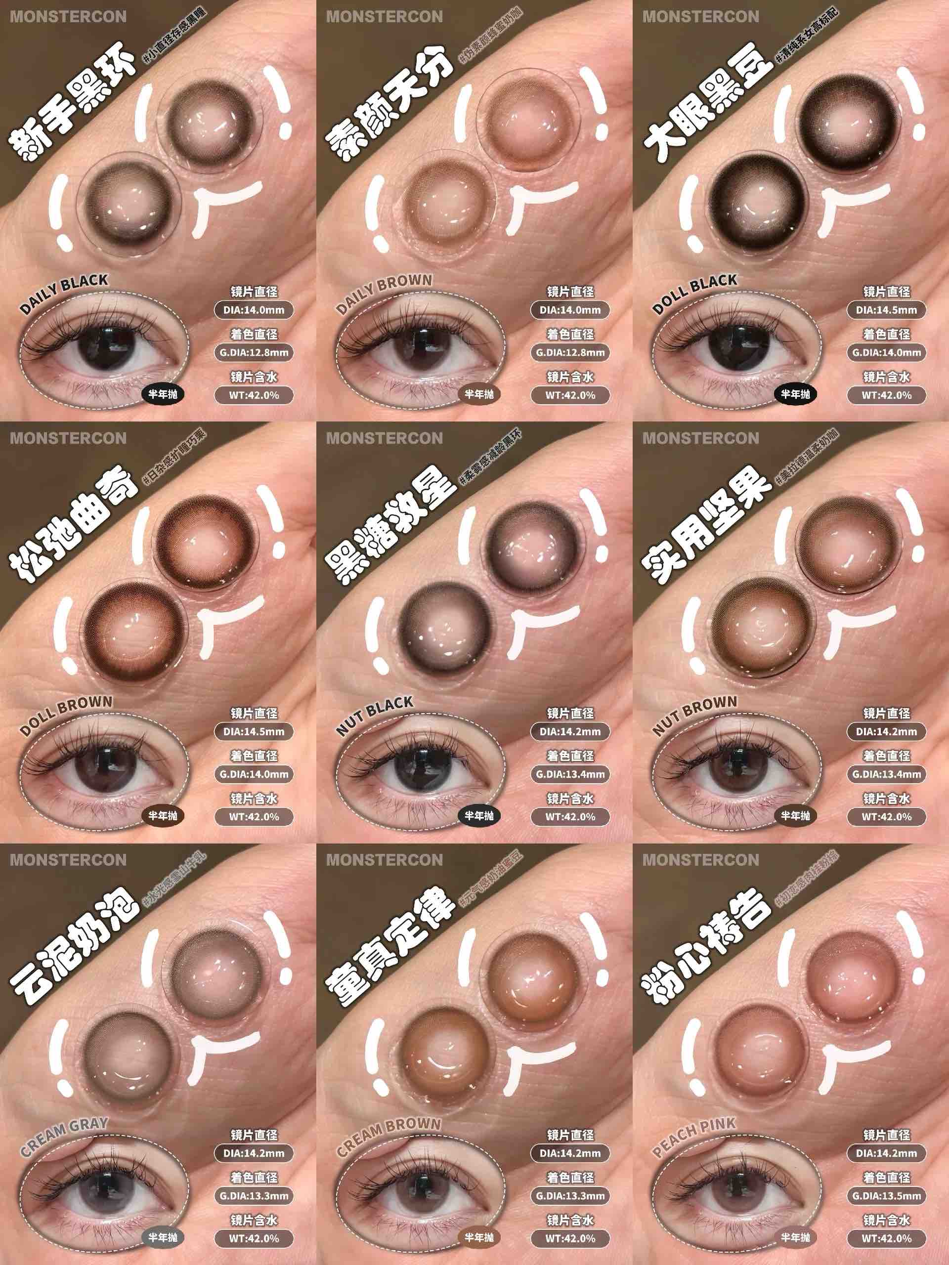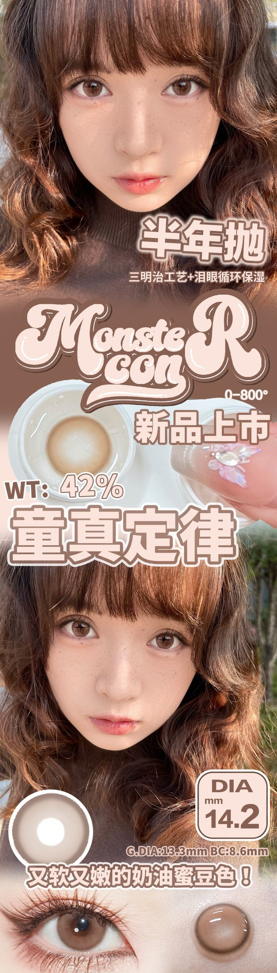 MONSTERCON怪兽新手黑环/素颜天分/黑糖救星/云泥奶泡/实用坚果/童真定律/粉心祷告半年抛 14.2自然小直径 中等直径 伪素颜心机淡妆美瞳
