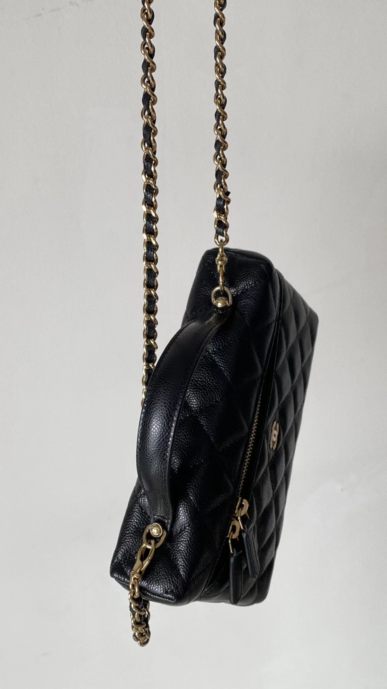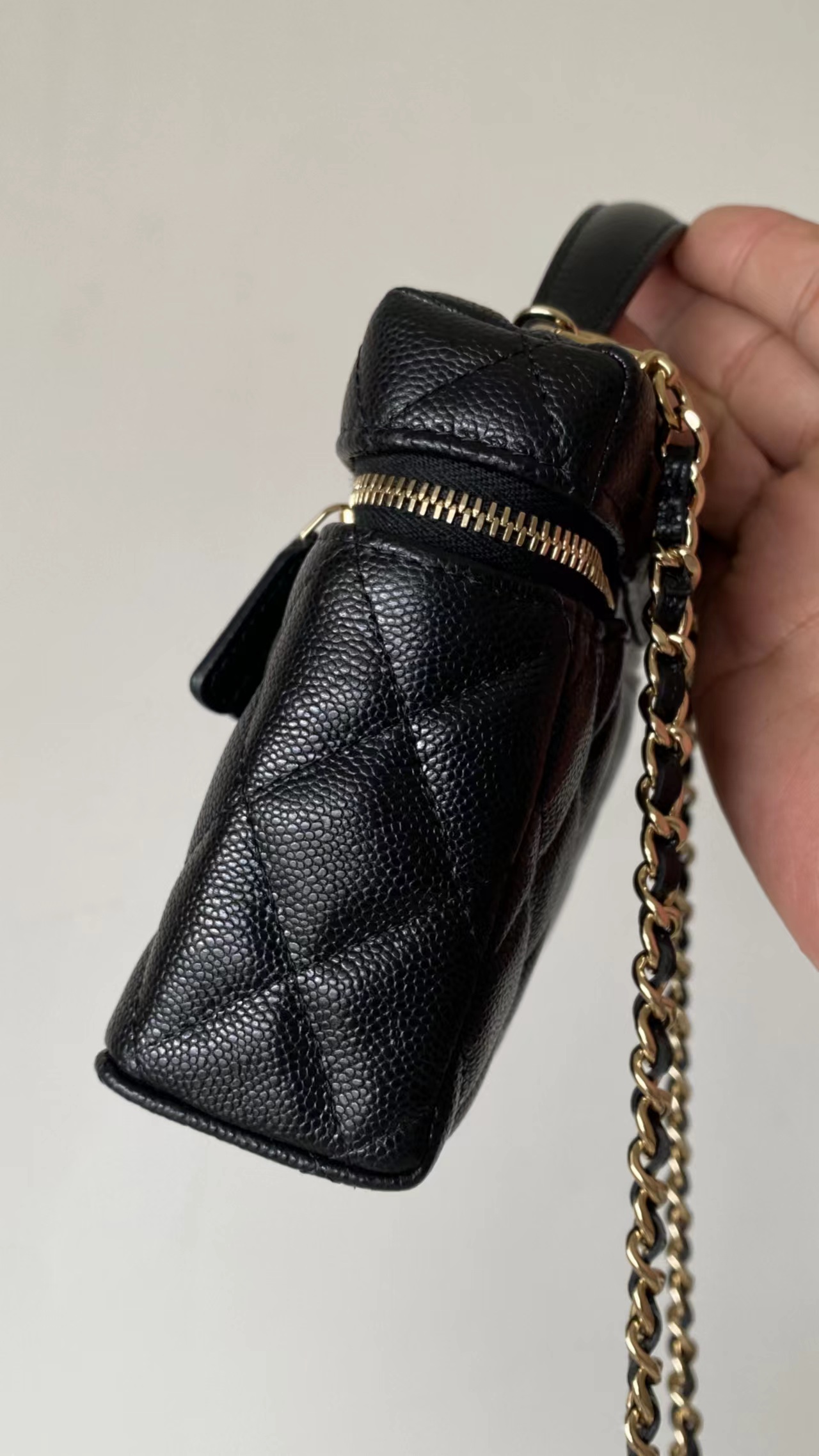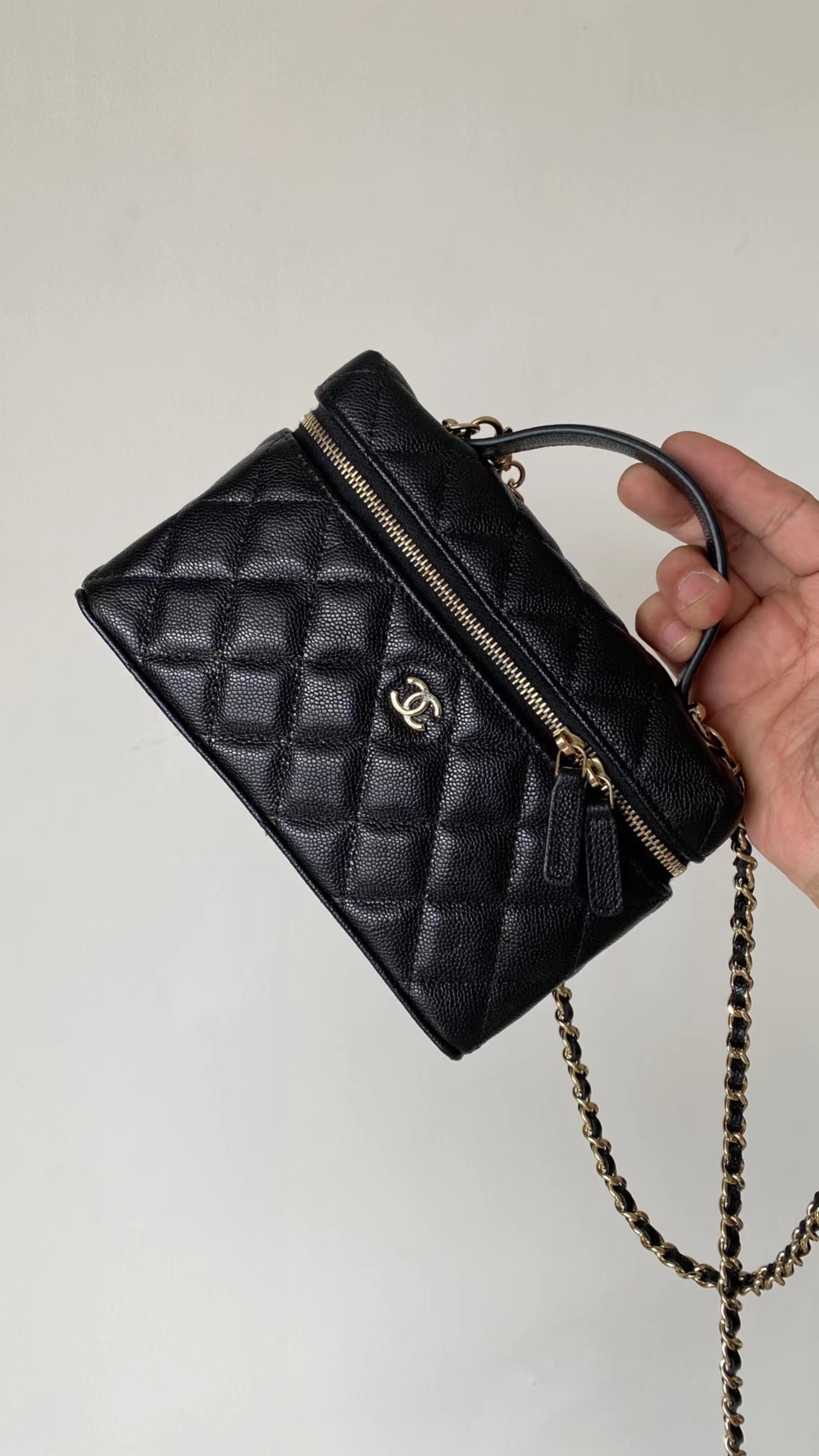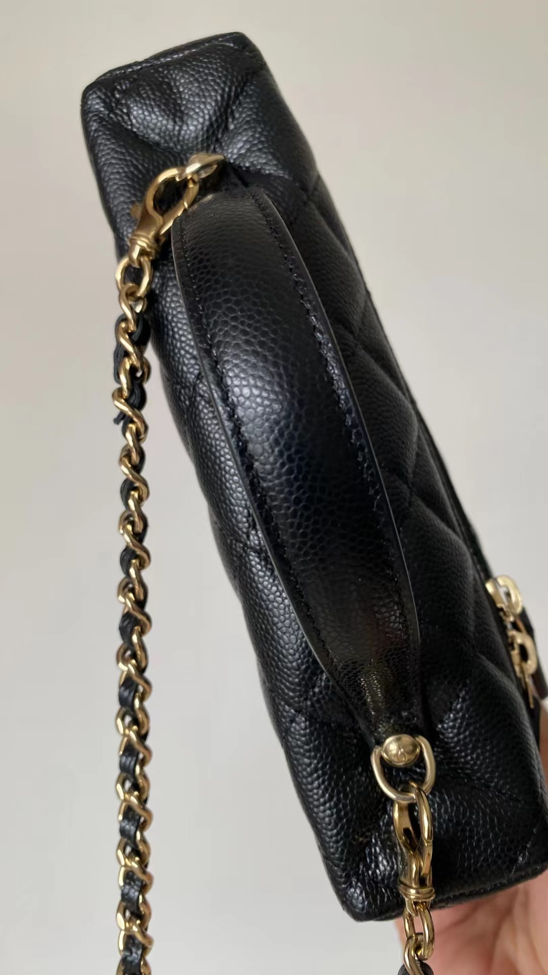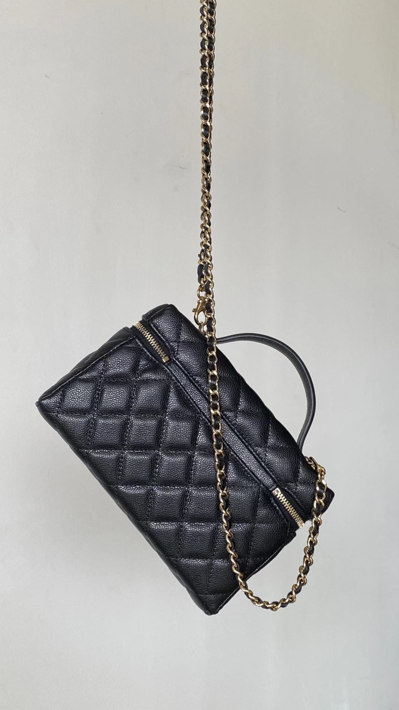 链条手拎盒子包, 黑色,香槟金扣!打开瞬间依旧是熟悉且精典的酒红;斜纹丝绸混纺面料内里~ 一提一斜挎方寸间都是满屏的法式松弛与优雅~