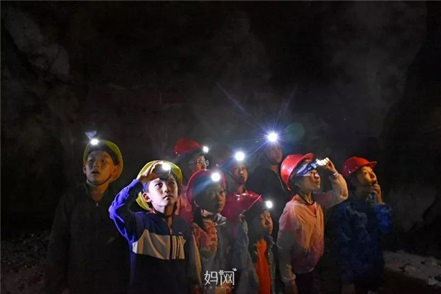 在照明灯的照射下,才可窥得一角。孩子们好奇又兴奋的往里钻,这个名不经传的山上地洞不像景区里的人工雕琢过的洞穴,充满神秘感和自然体验,不得不感叹大自然的鬼斧神工~