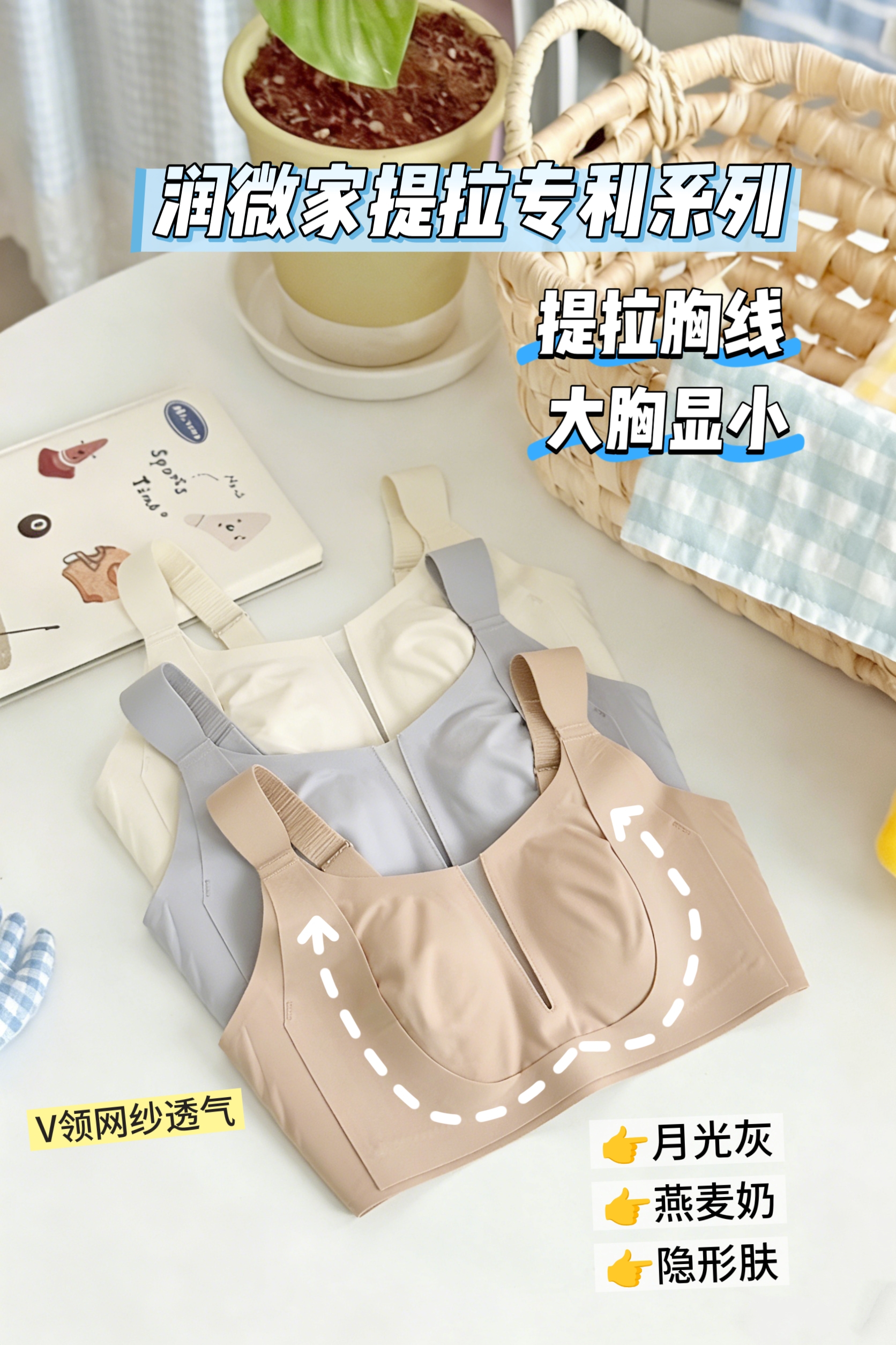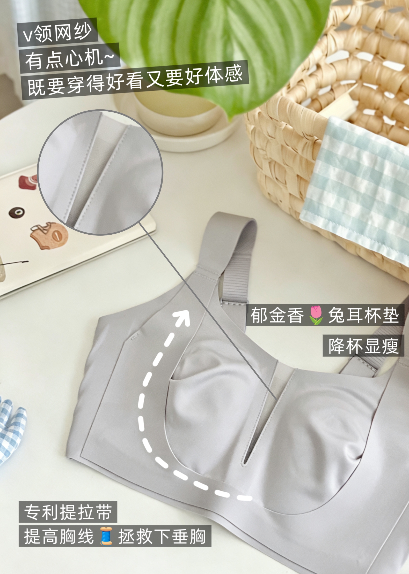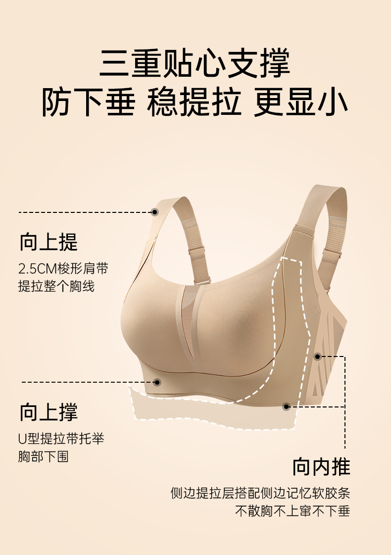💗【提拉女王网纱版B-F杯】【高级御姐风】【专利U型提拉显小】【V领性感 记忆软胶条防滑防窜防下垂】润微内衣女大胸显小显瘦提拉防下垂舒适无痕减压肩带收副乳 提拉云感【提拉系列】