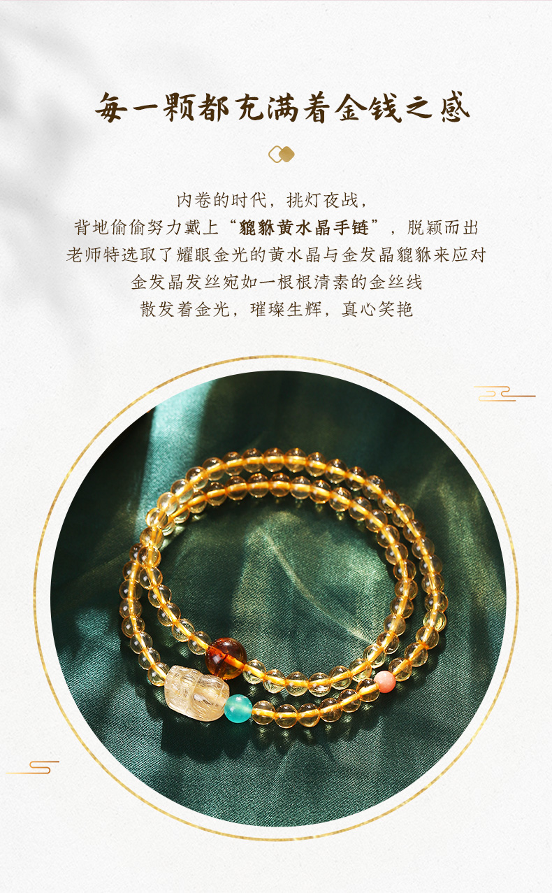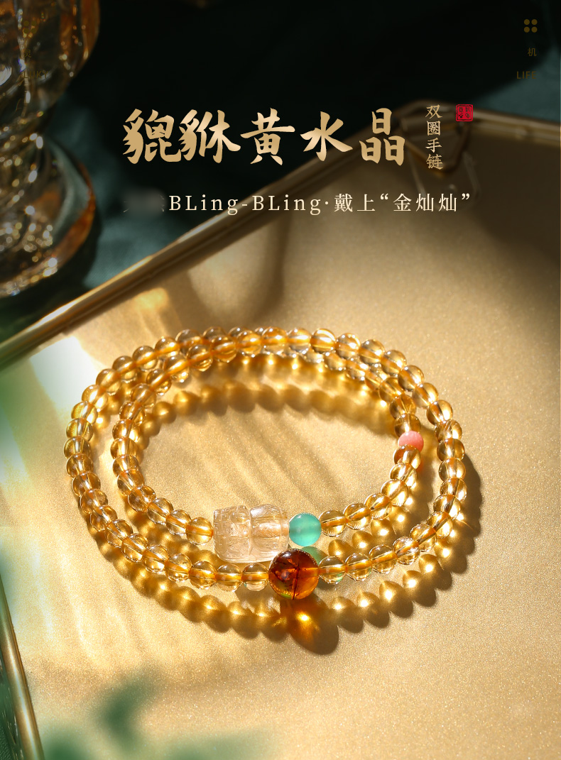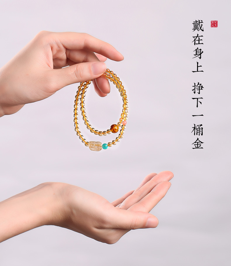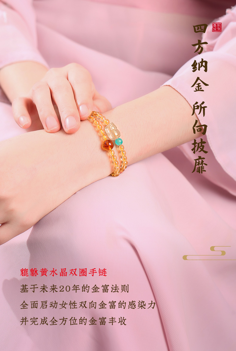 【事业】灵机吉品 貔貅黄水晶双圈手链 多圈手串黄色水晶手串