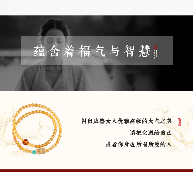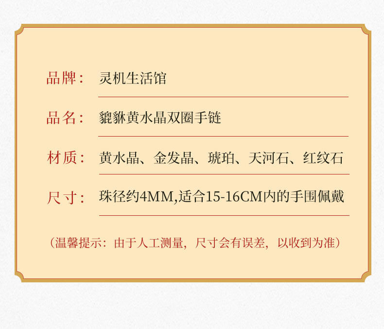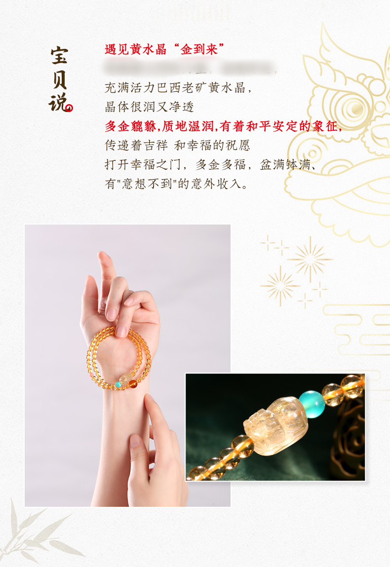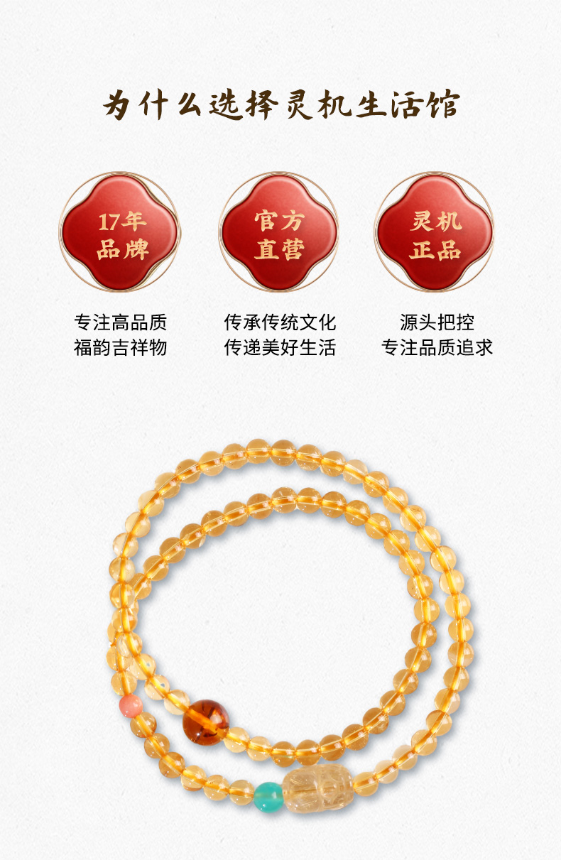 【事业】灵机吉品 貔貅黄水晶双圈手链 多圈手串黄色水晶手串