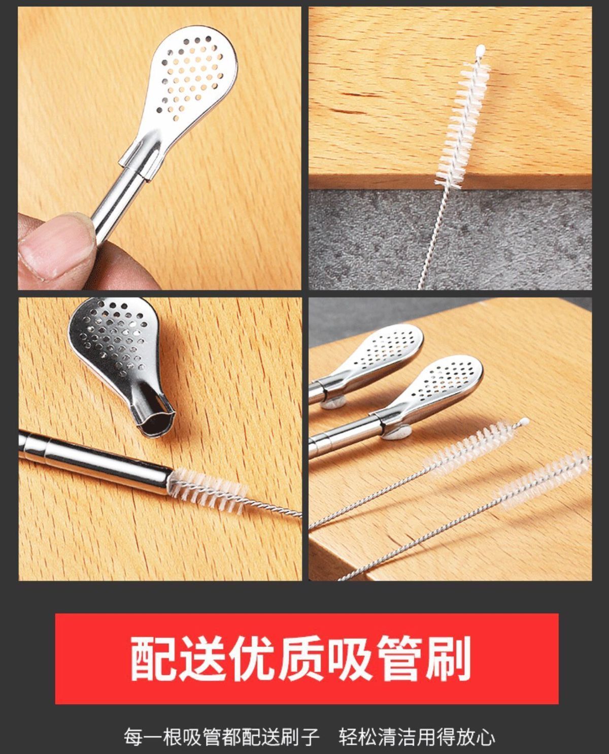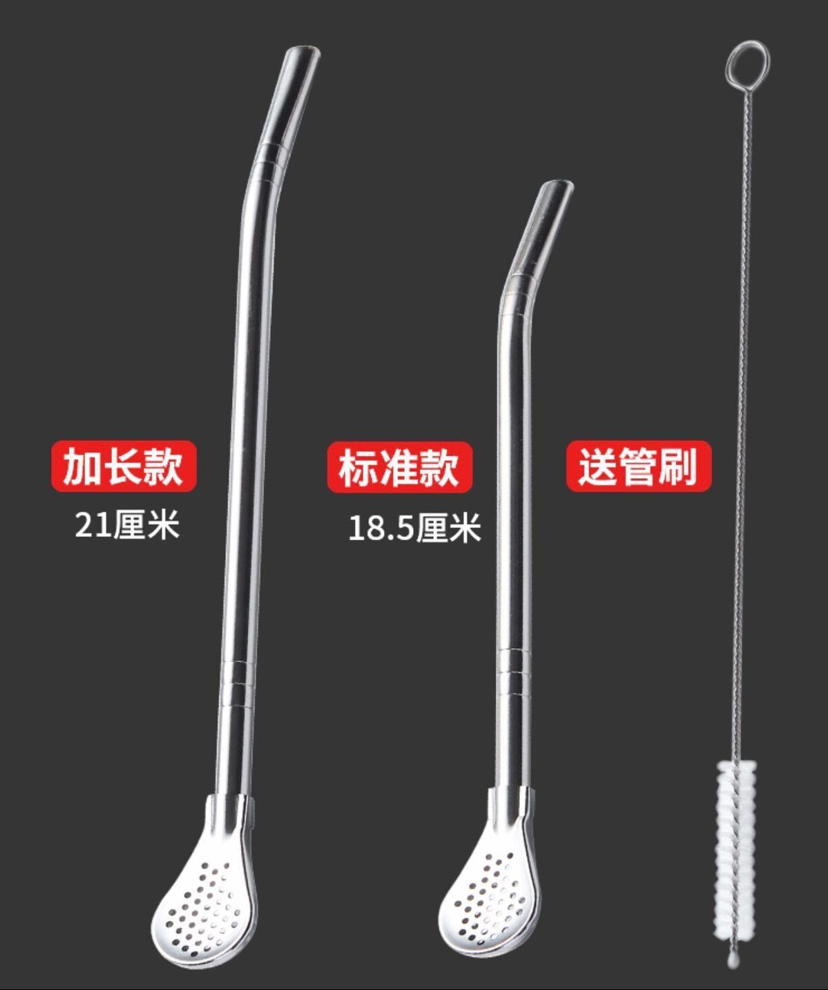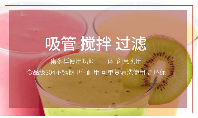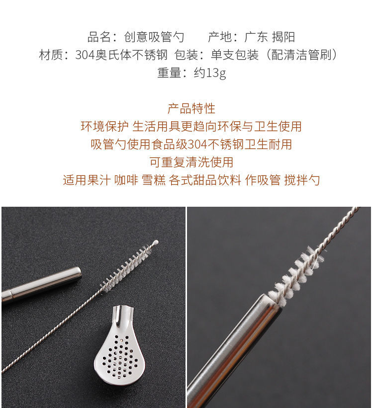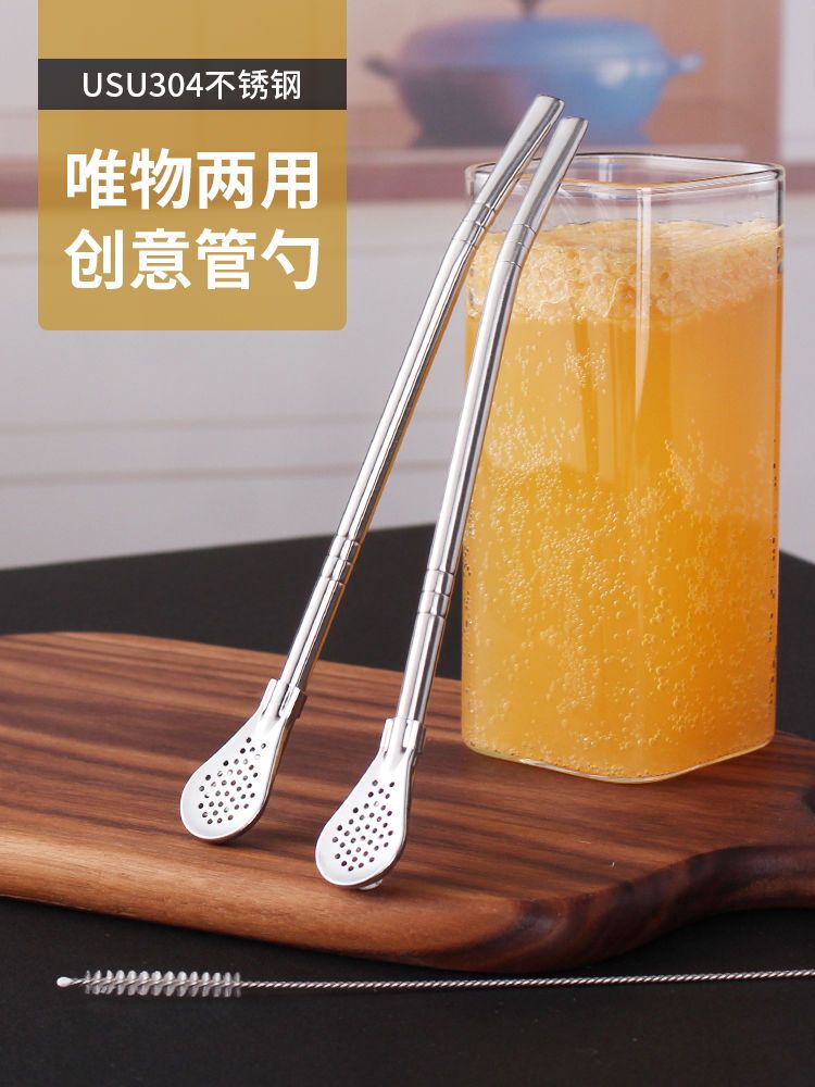 304不锈钢吸管勺子两用创意咖啡搅拌勺环保饮管果汁奶茶过滤吸管