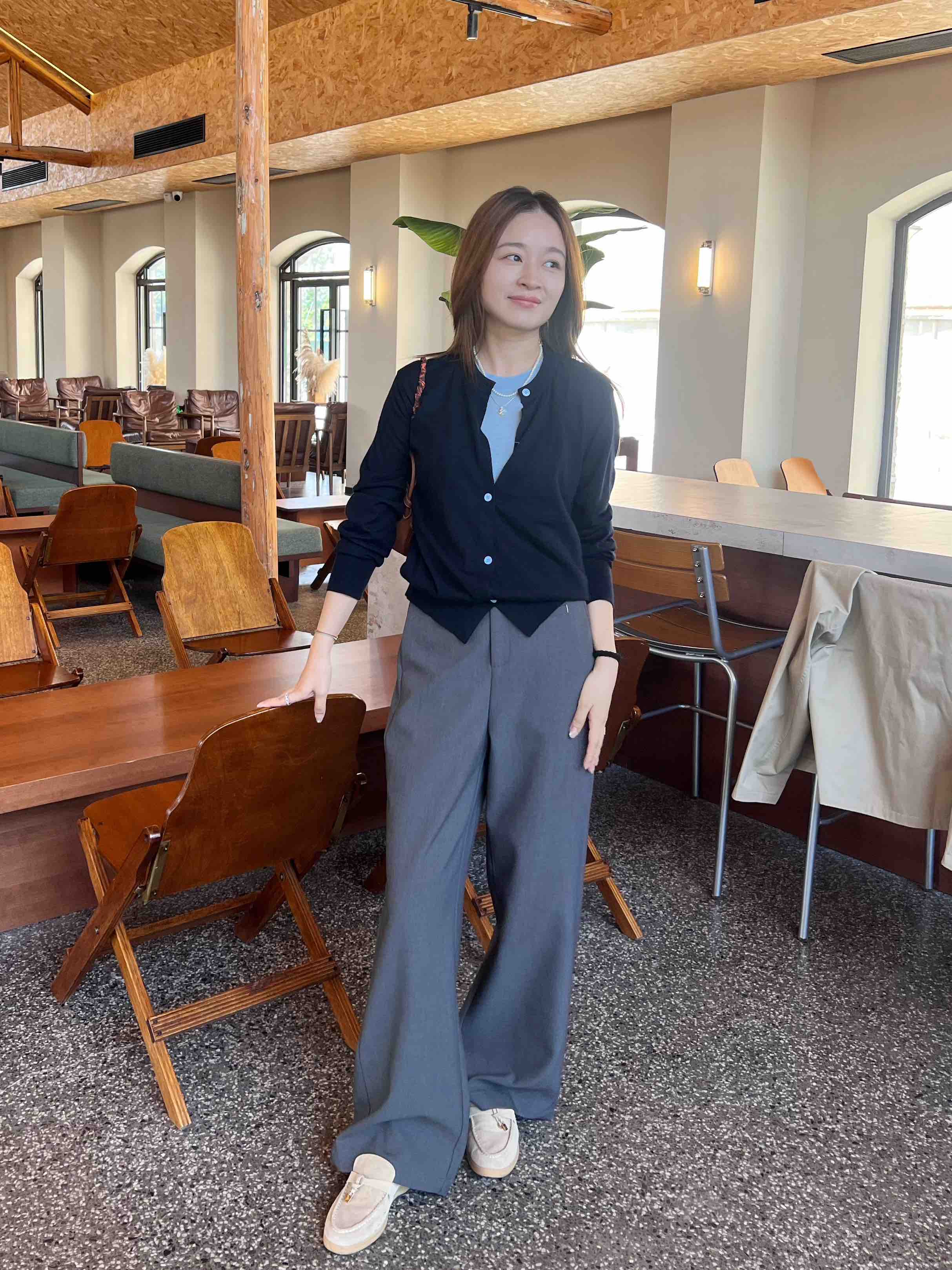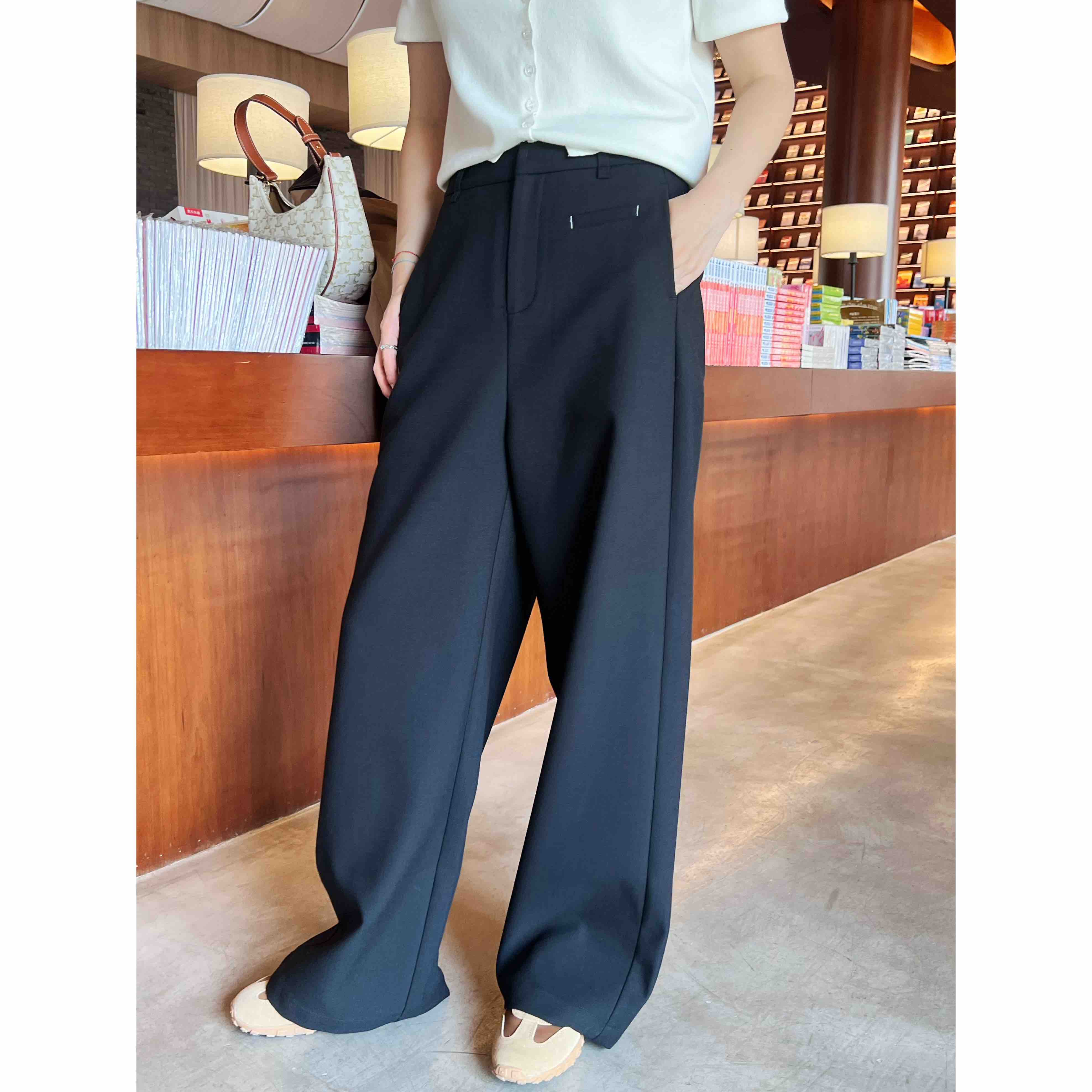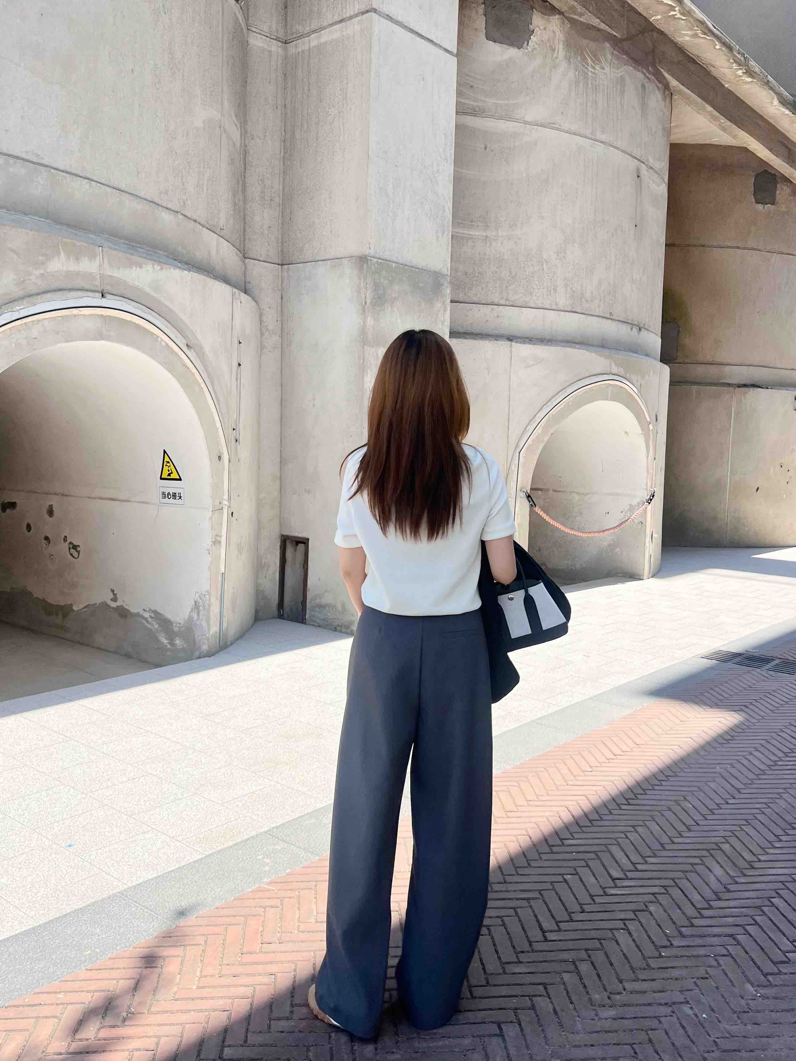 看一下背后裤型,直筒挺阔哟