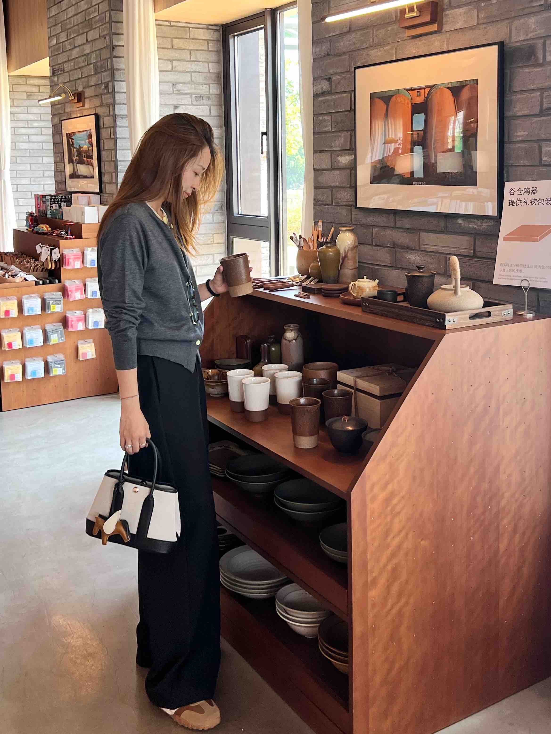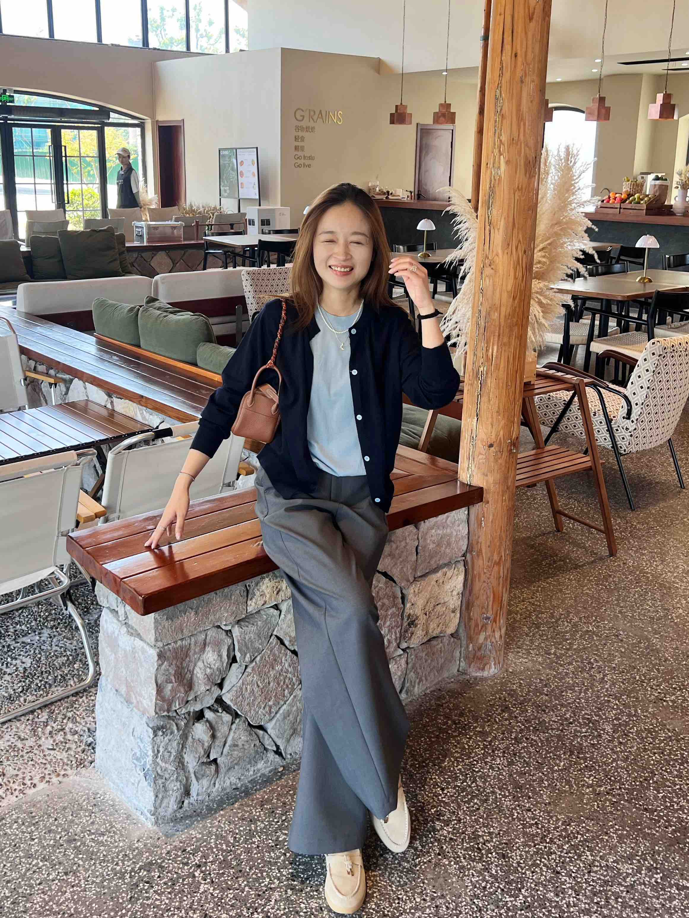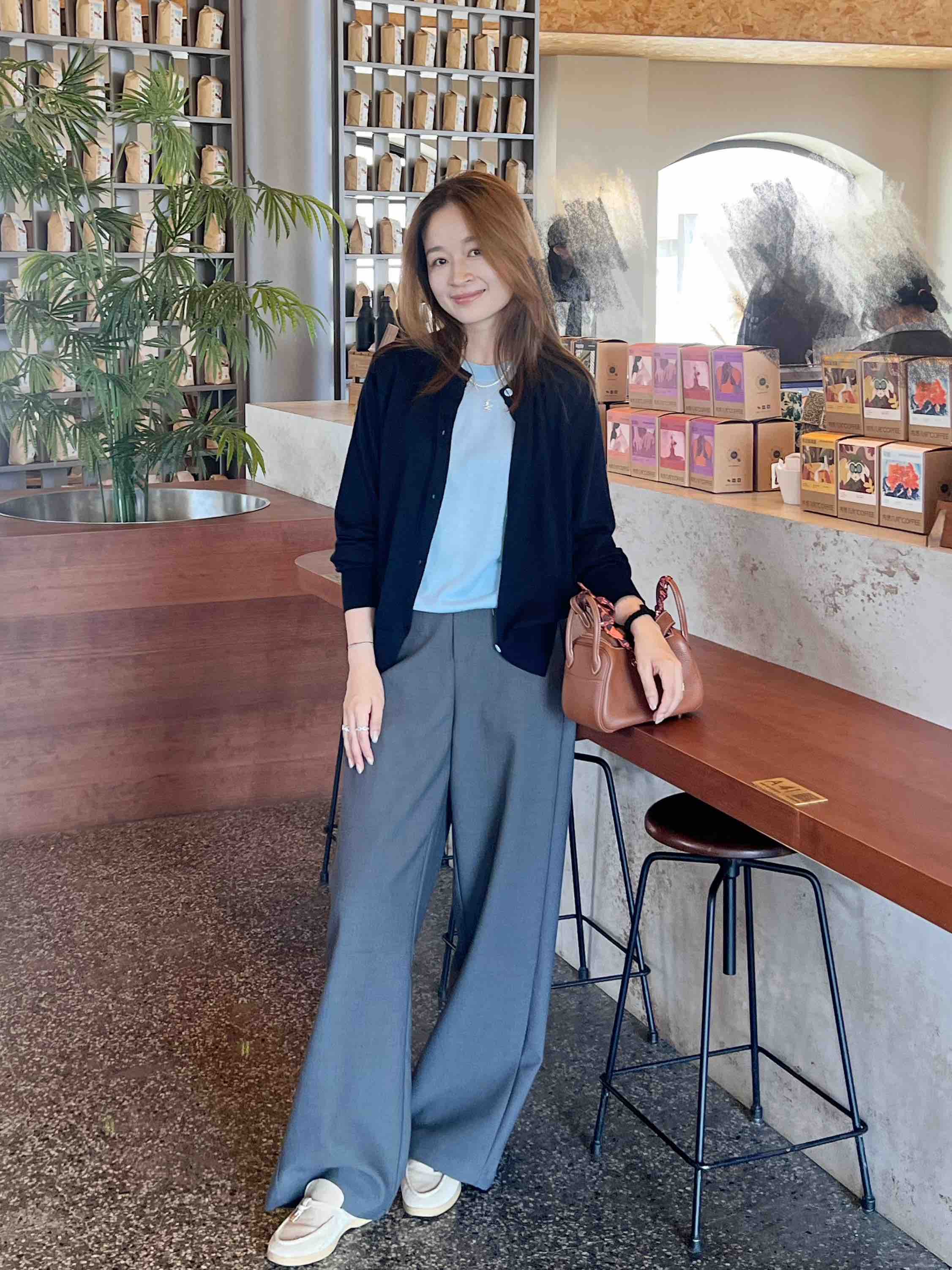 看一下背后裤型,直筒挺阔哟