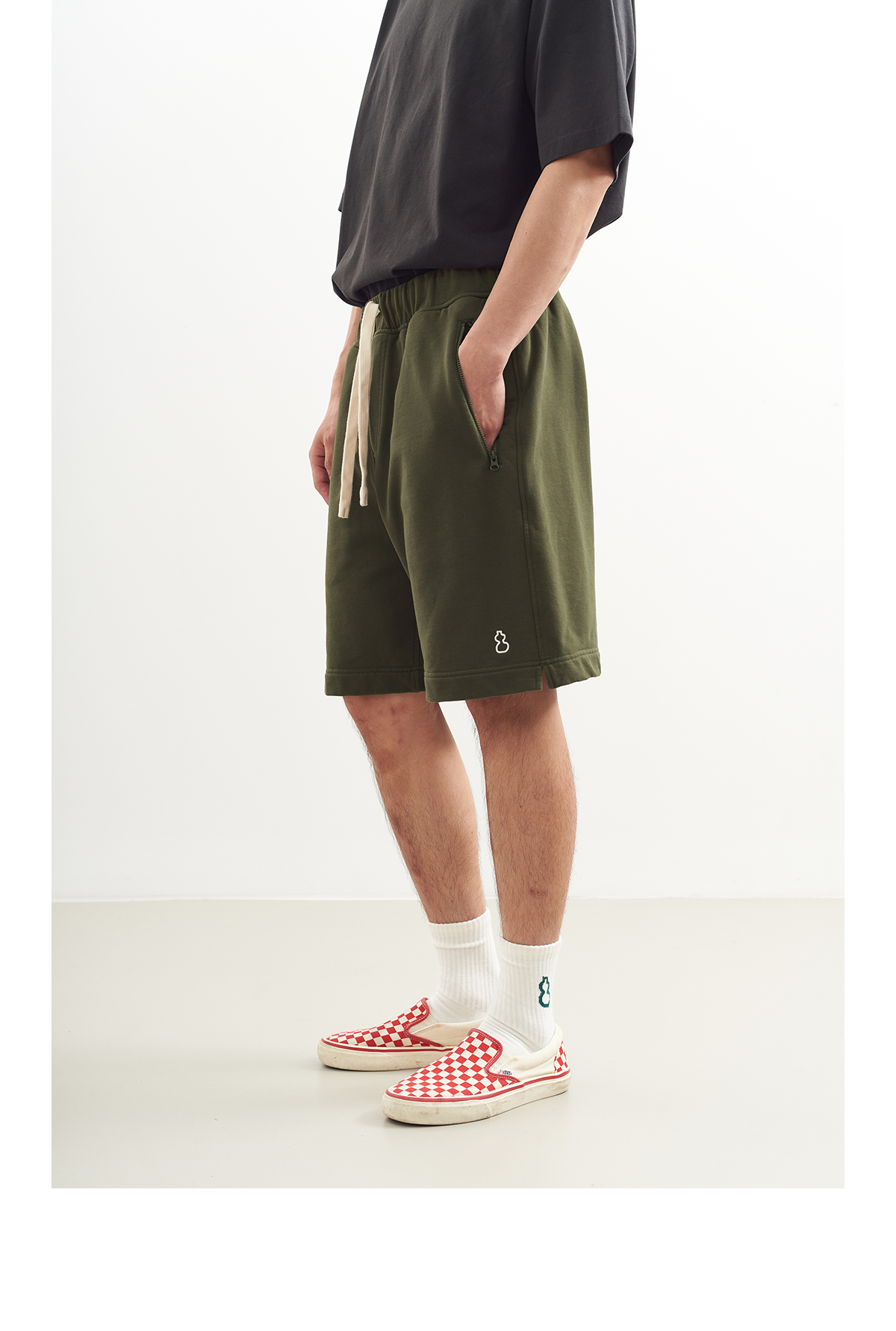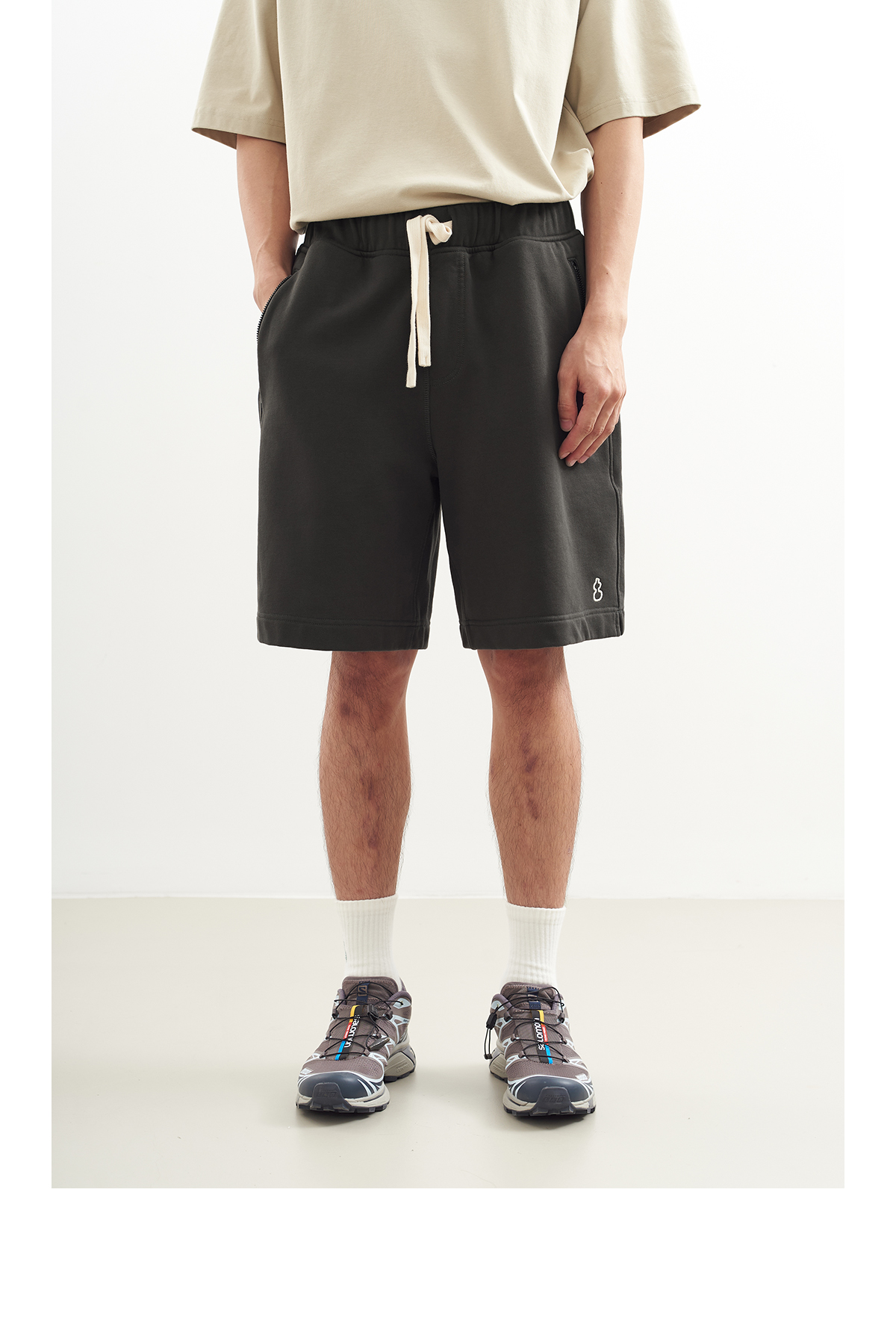 吃茶去chichaqu2024运动休闲全棉拉链口袋短卫裤山系户外百搭