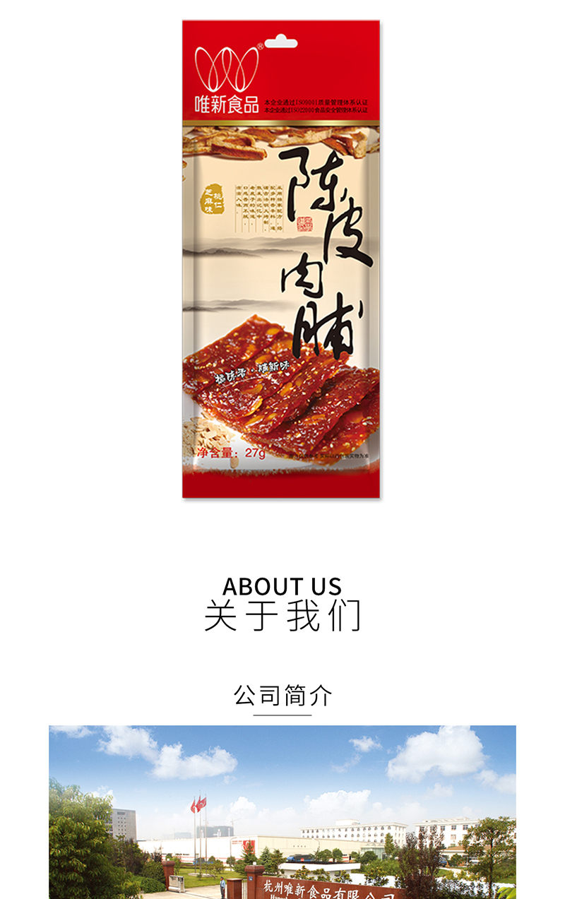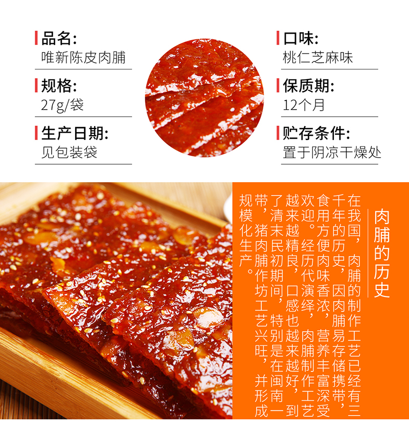 【休闲食品】唯新 27g陈皮肉脯(桃仁芝麻味)(1袋装/6袋装)