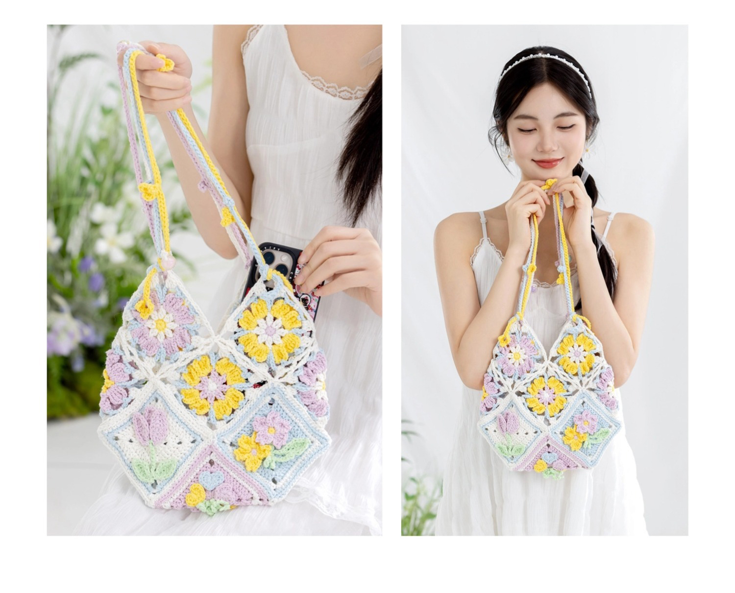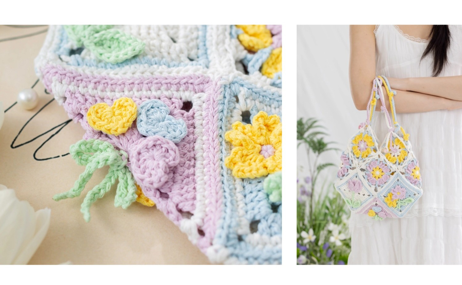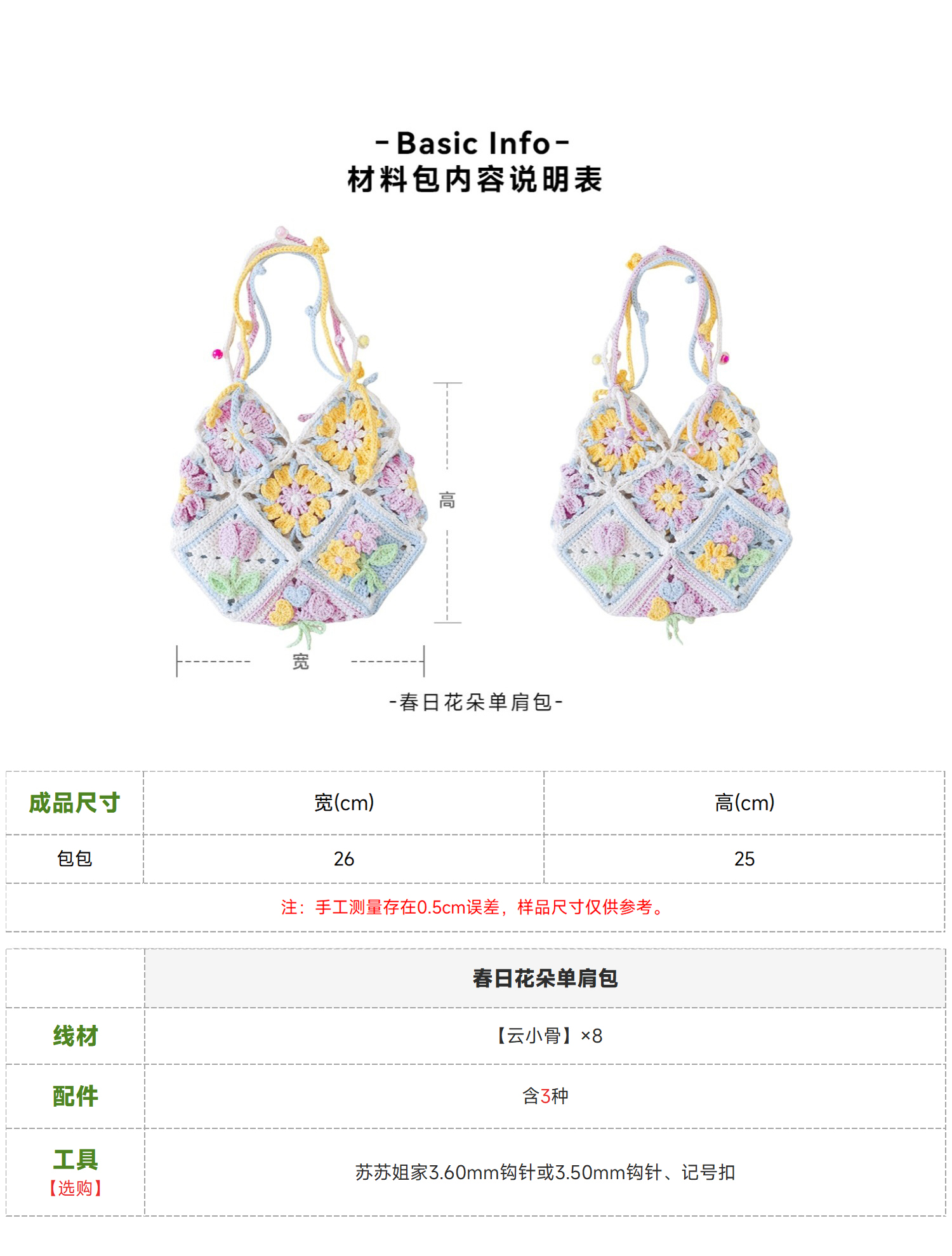 苏苏姐家春日花朵单肩包手工diy编织钩针毛线团自制包包材料包