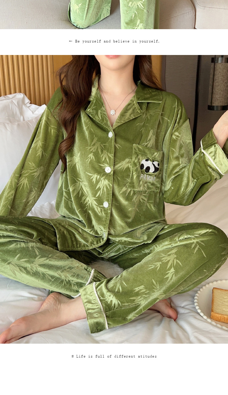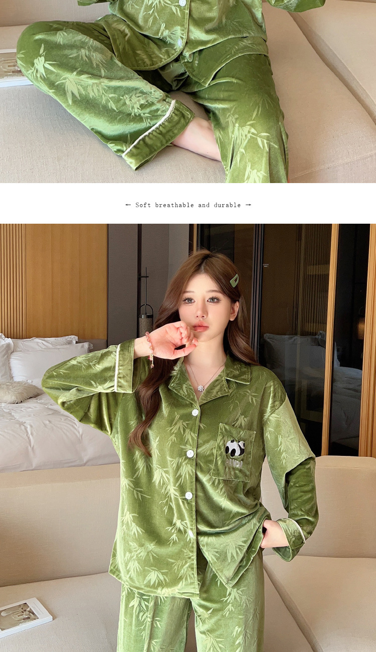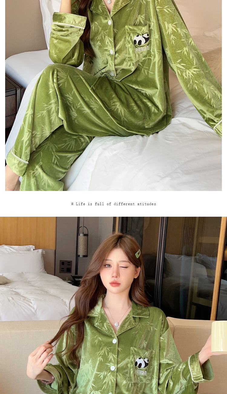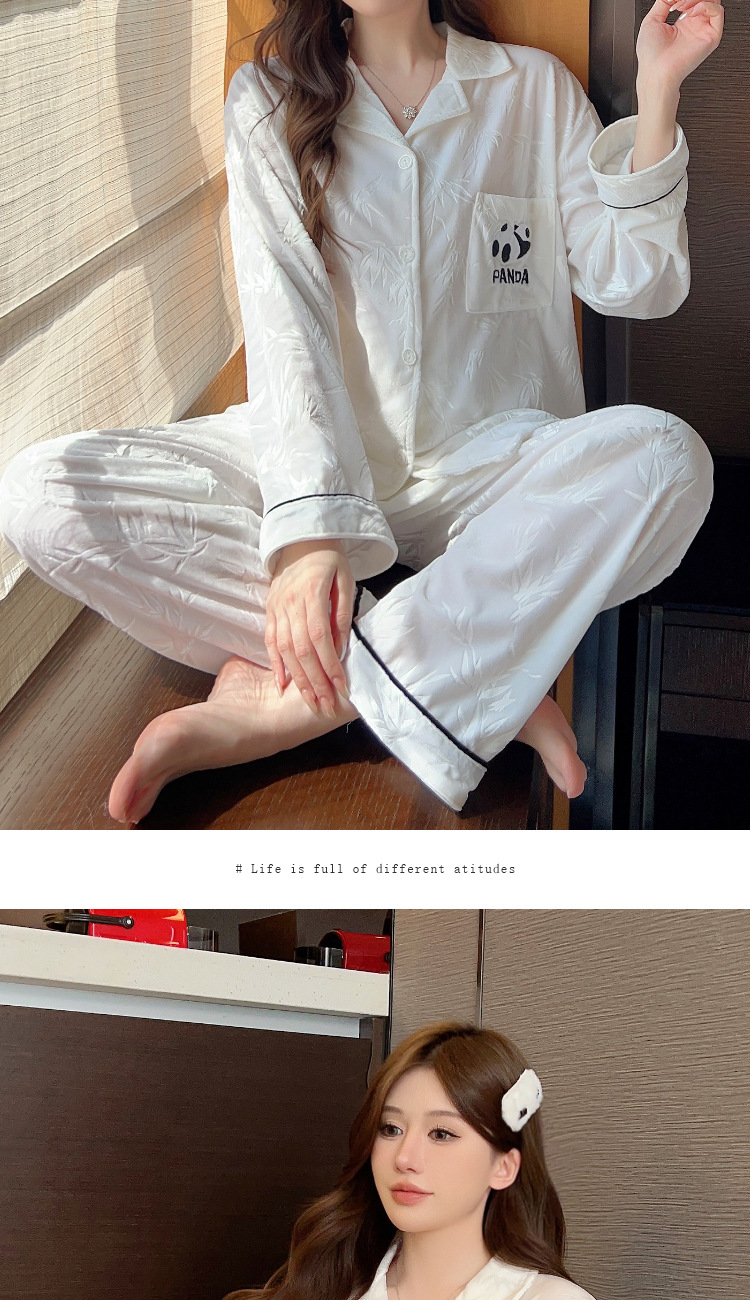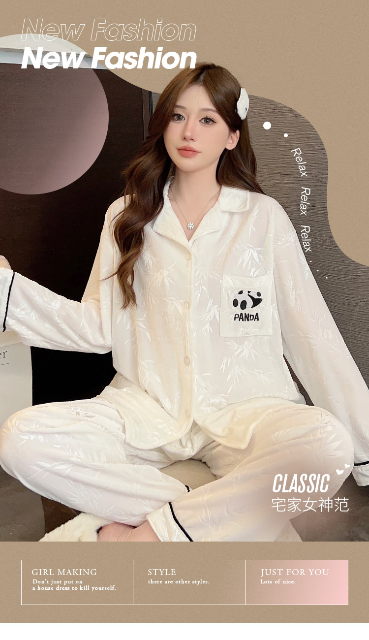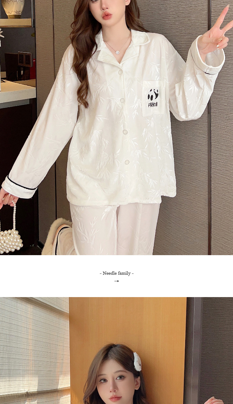 【新中式❗️高级感熊猫印花家居服】介于舒适与优雅之间,气质慵懒风,女秋冬新款网红长袖开衫睡衣两件套长裤套装