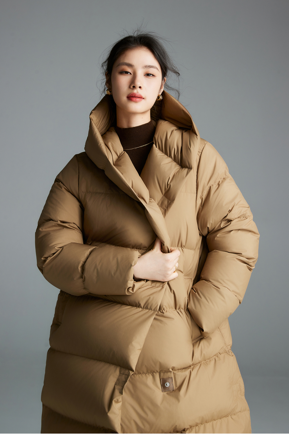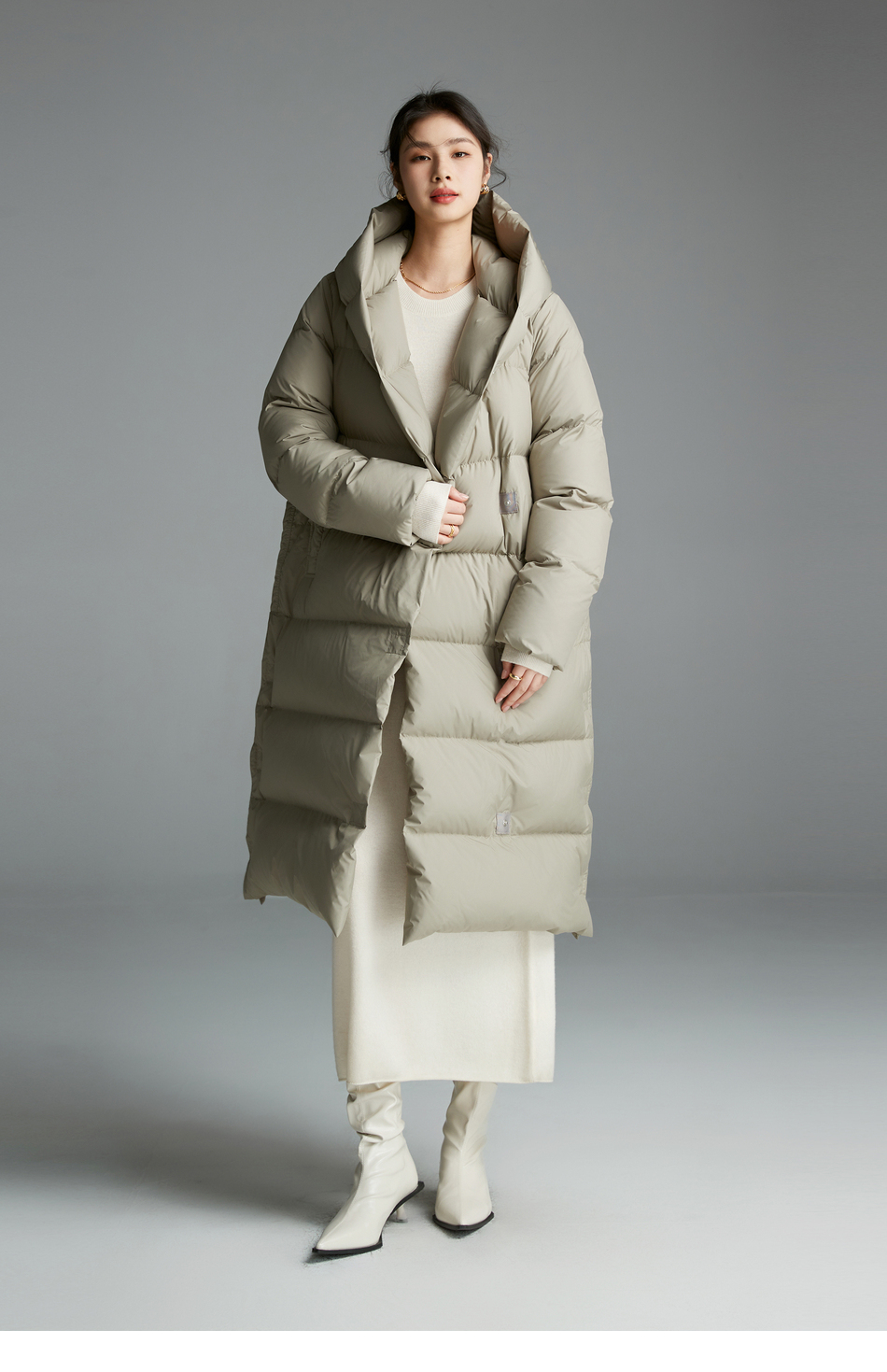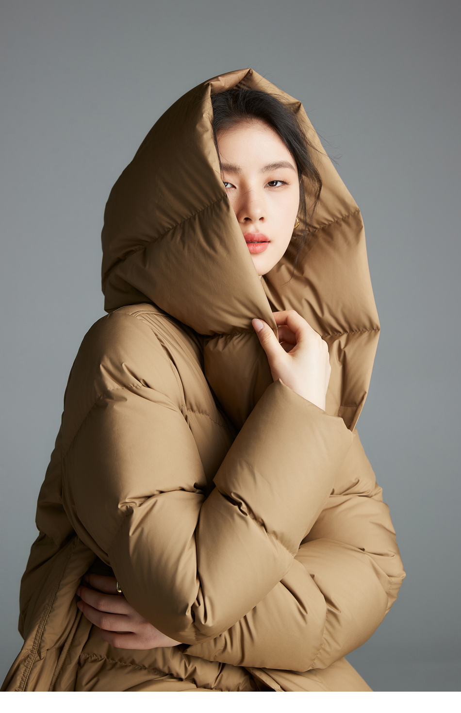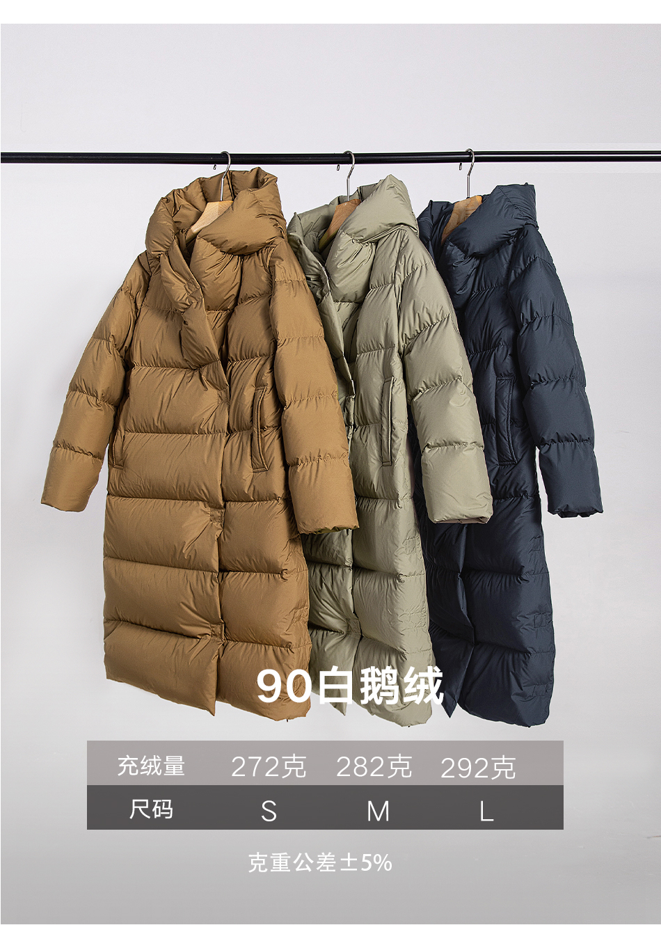 棉仓346615023-轻量感连帽羽绒服女长款过膝 秋冬宽松90白鹅绒保暖外套