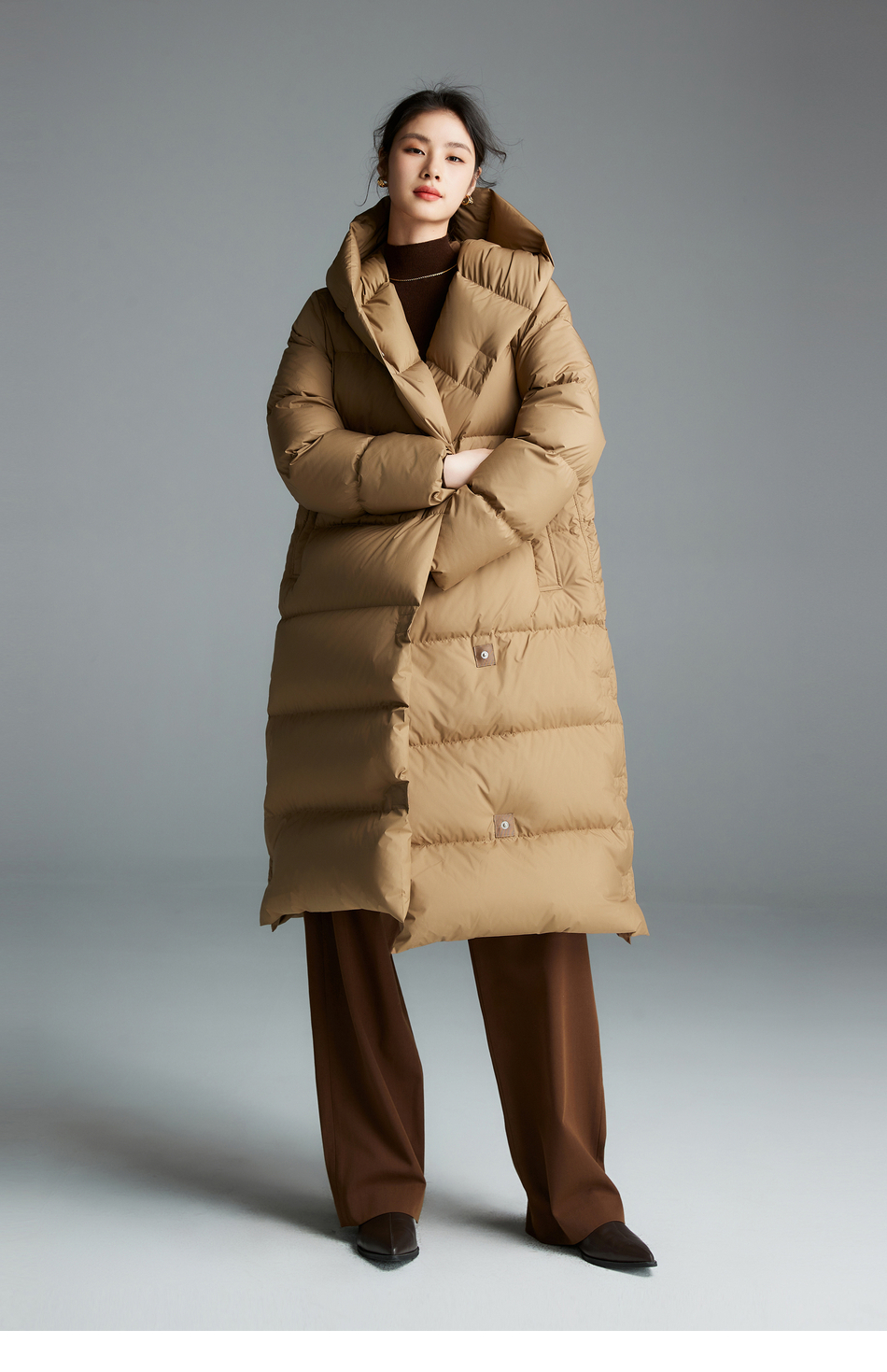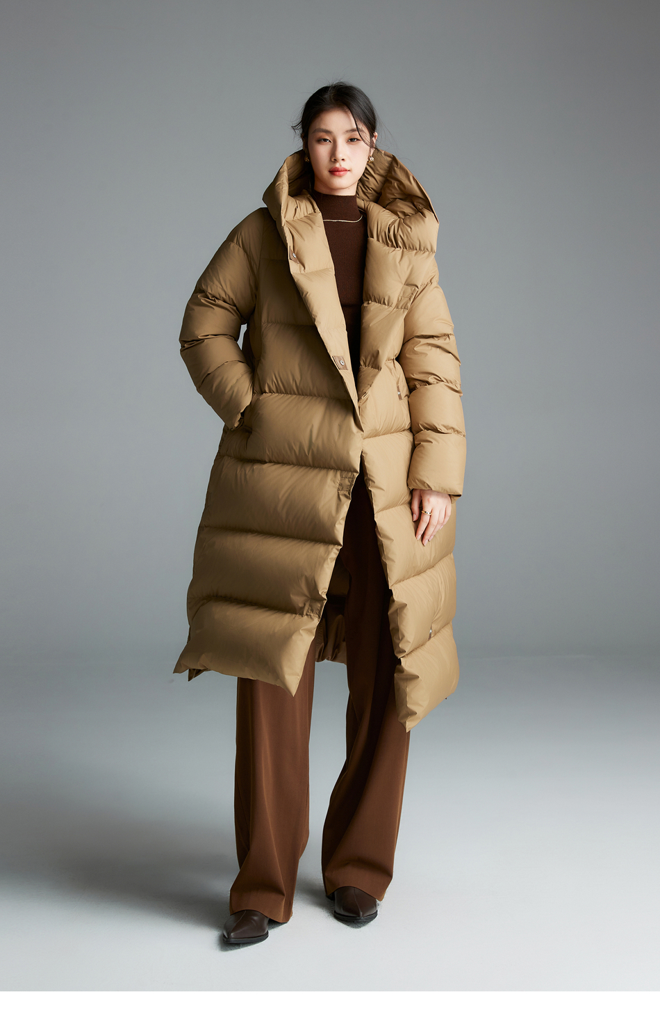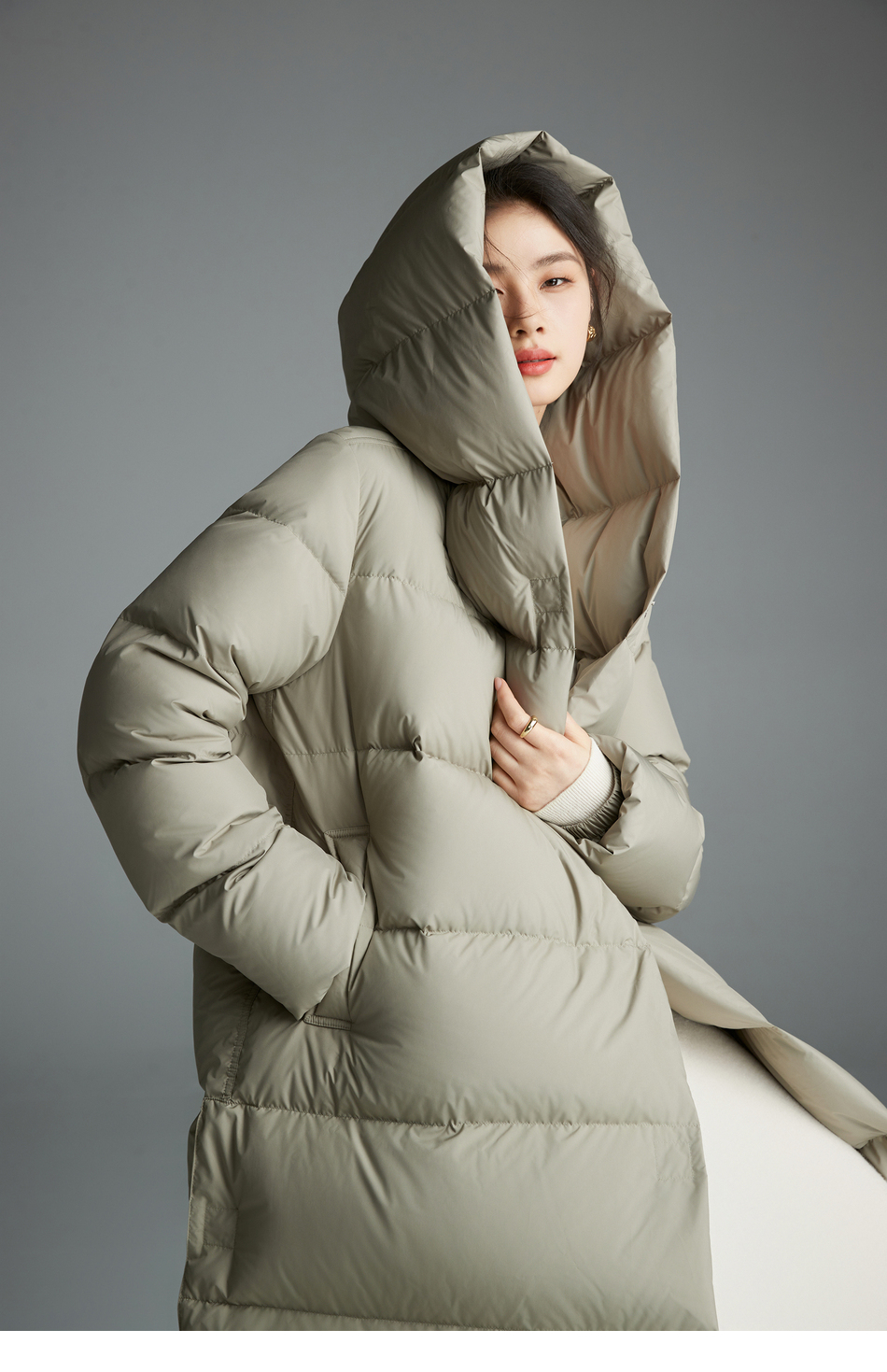 棉仓346615023-轻量感连帽羽绒服女长款过膝 秋冬宽松90白鹅绒保暖外套