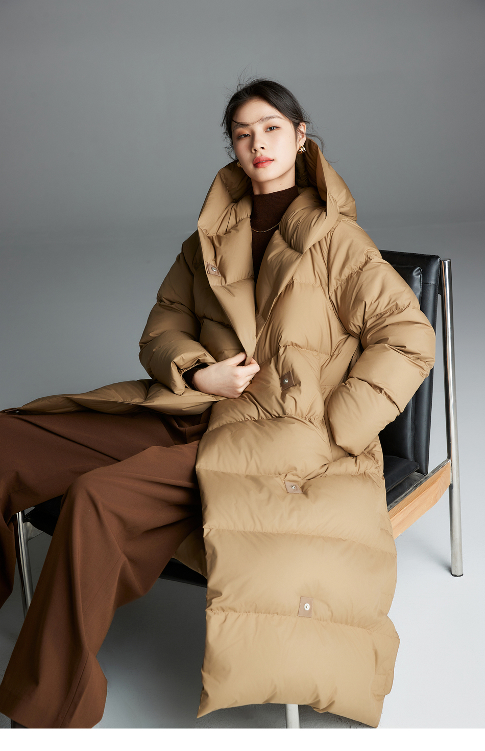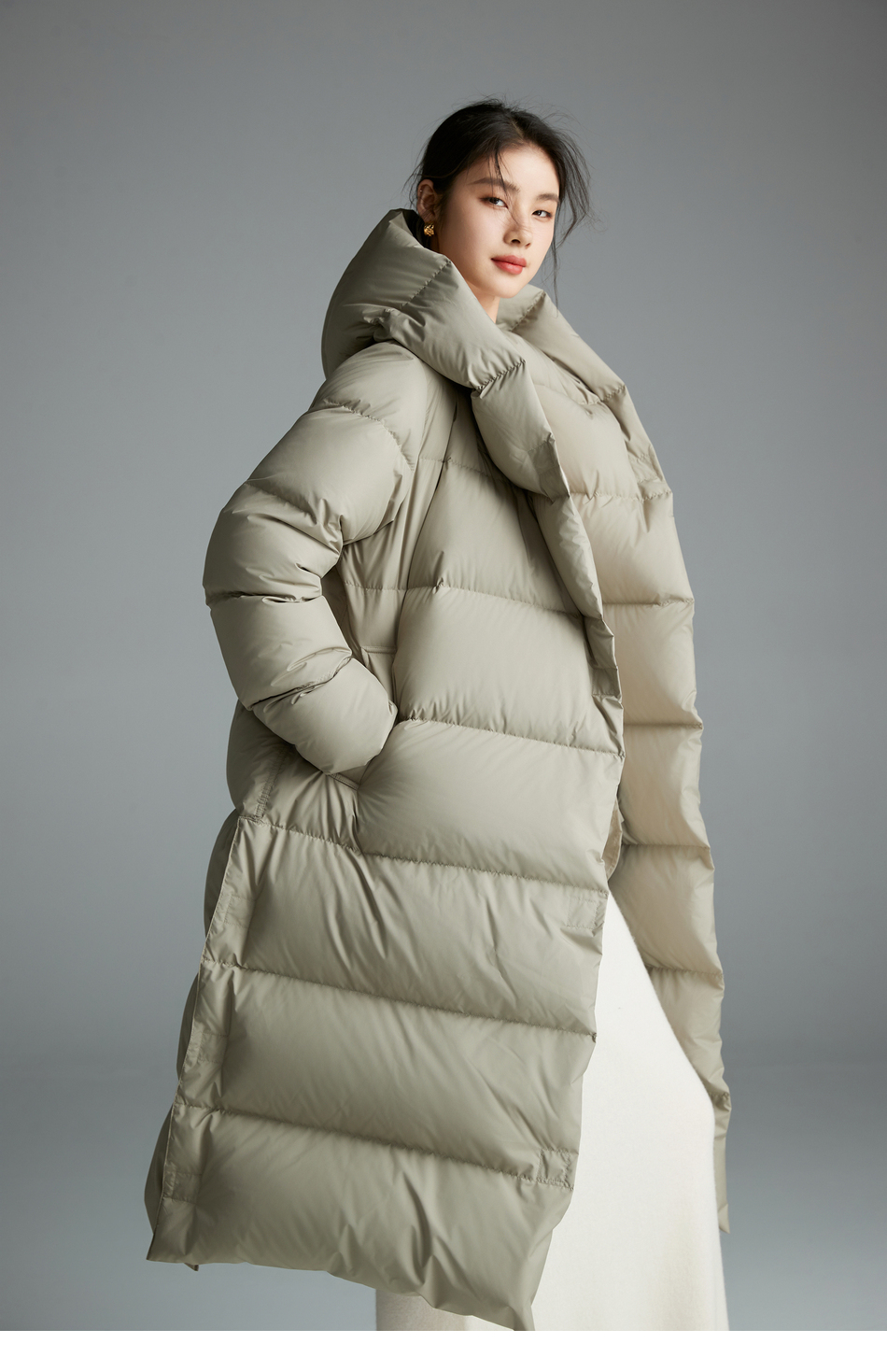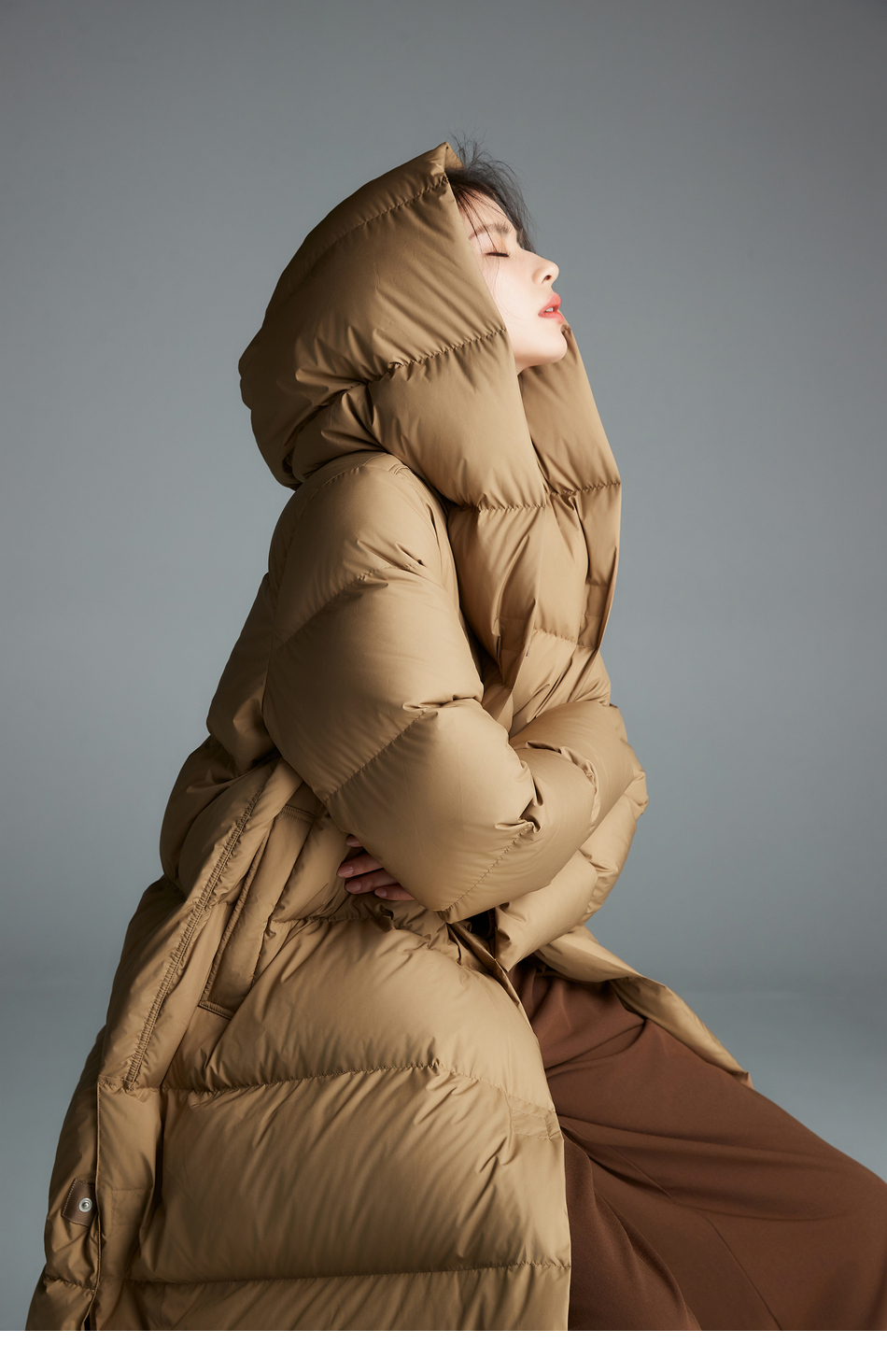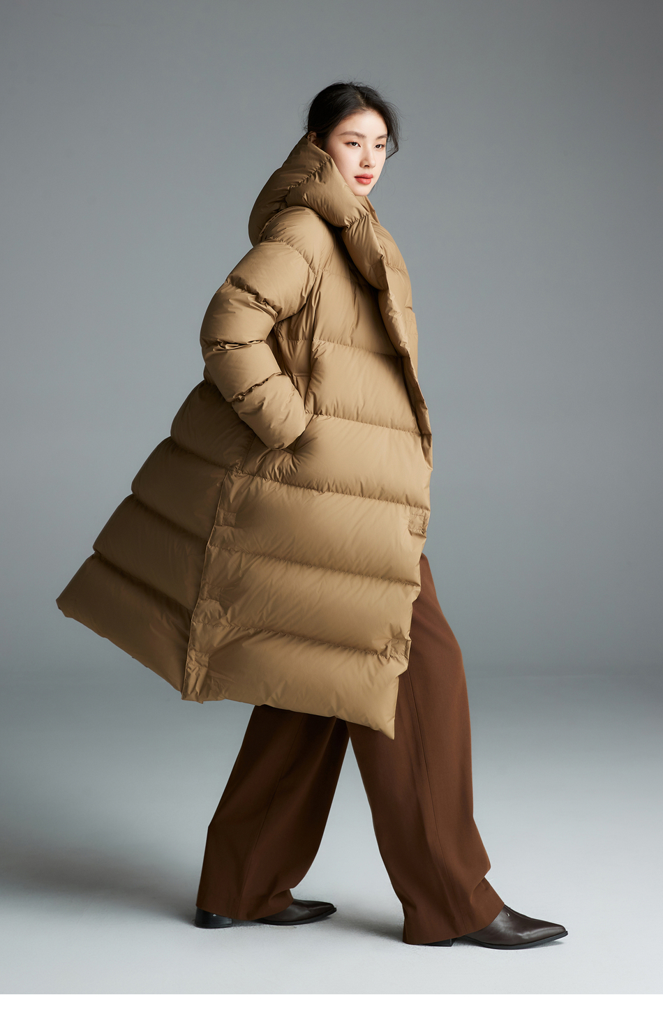 棉仓346615023-轻量感连帽羽绒服女长款过膝 秋冬宽松90白鹅绒保暖外套