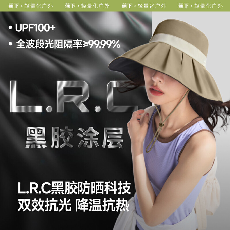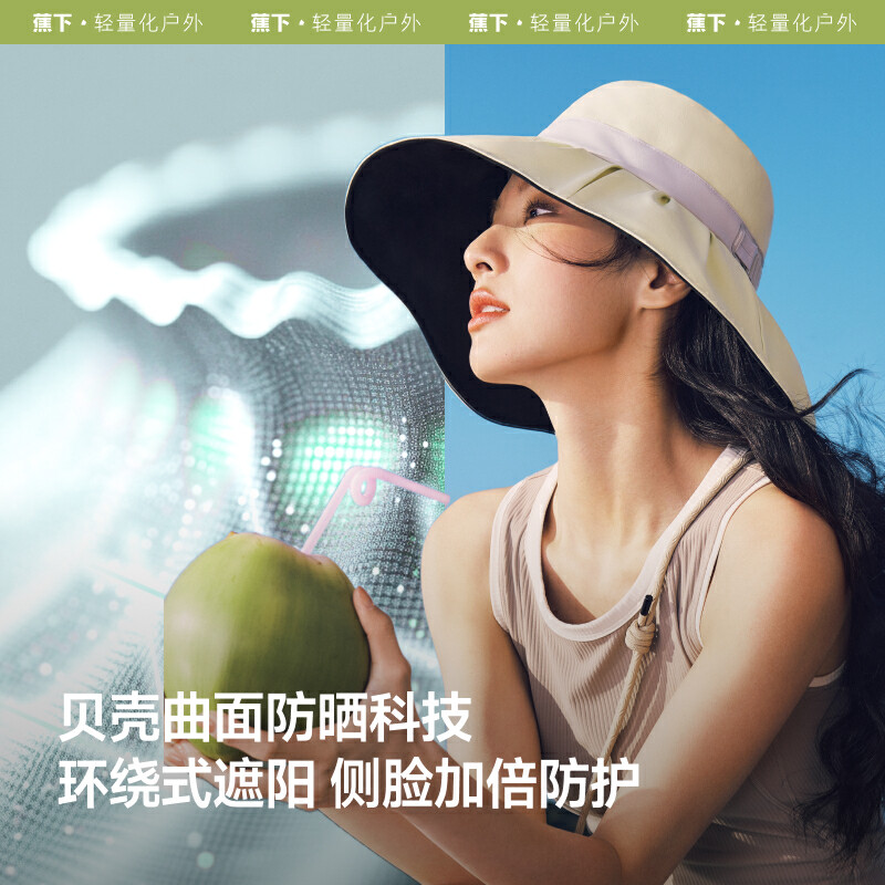 【云粉节】【2件8.5折】6楼蕉下女士贝壳渔夫黑胶防晒帽BM50725吊牌价269