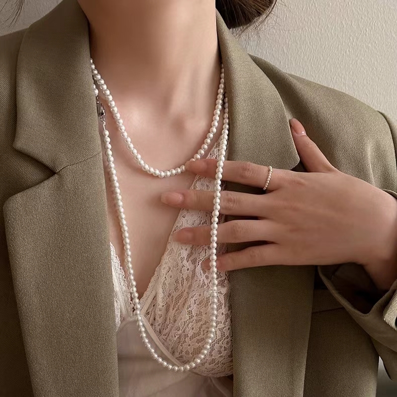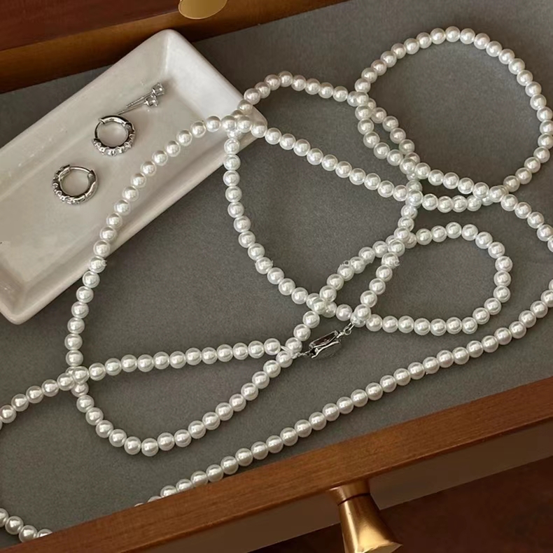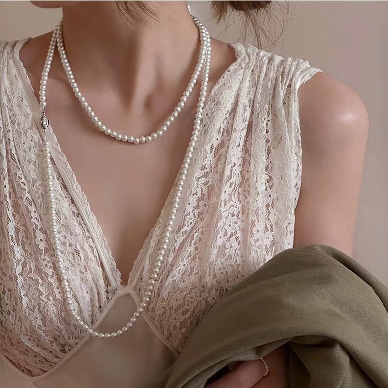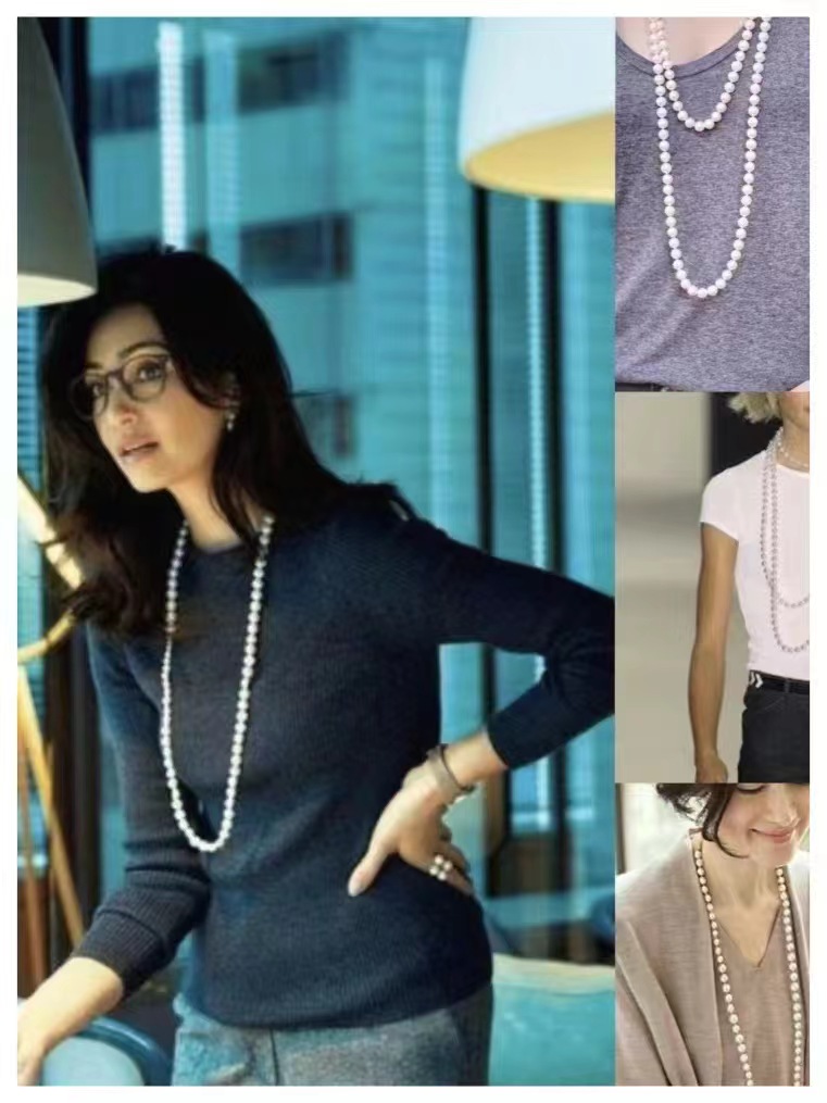 人手一条法式长款珍珠项链,shi髦人的首饰盒必备~ 搭配任意风格都适合,无论是搭配裙子还是衬衫毛衣,珍珠都hold住!
